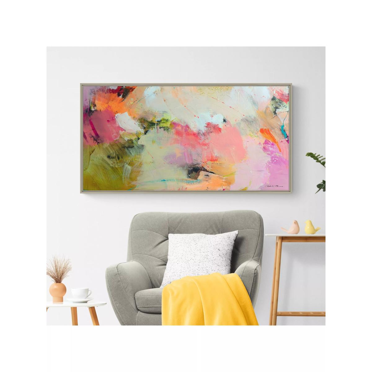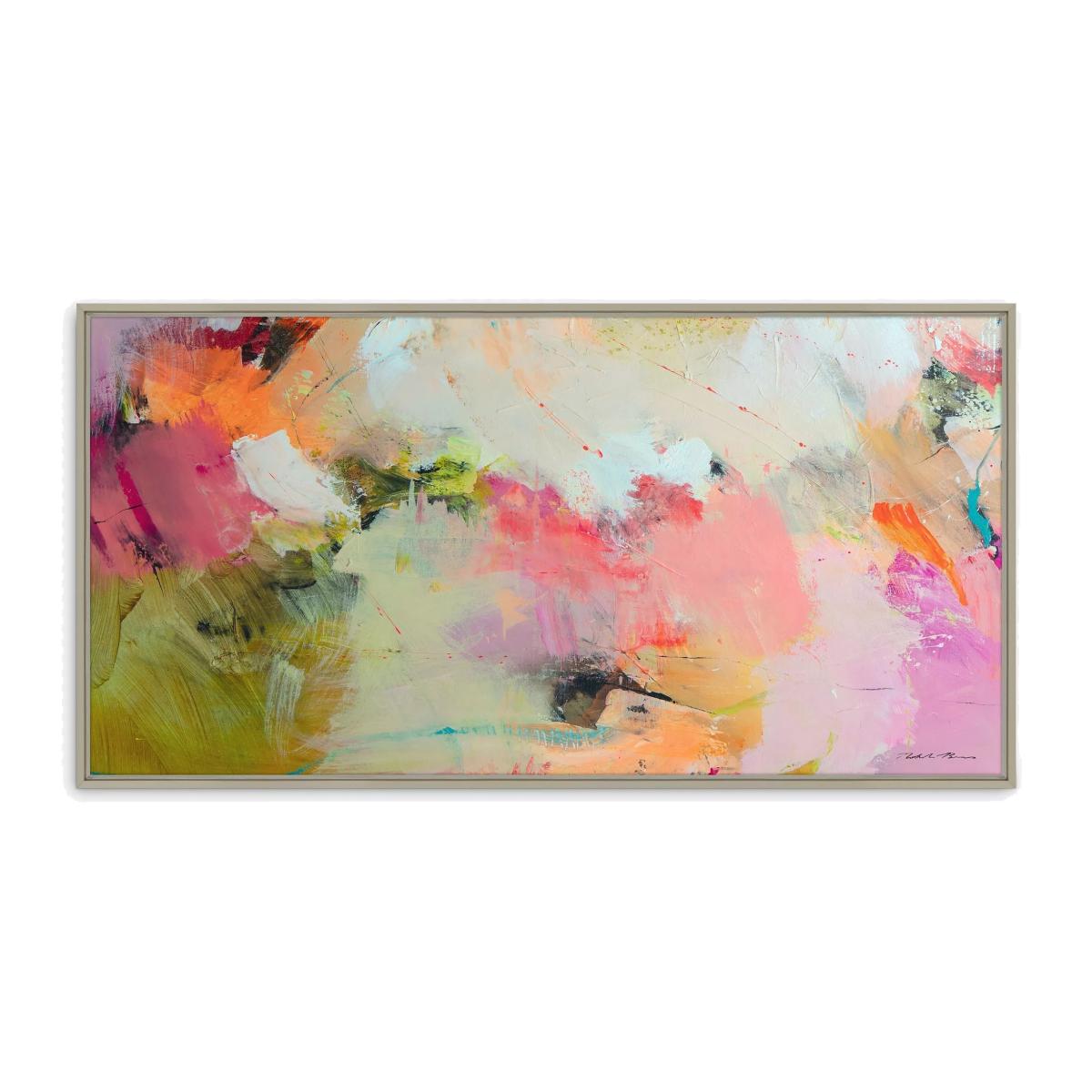 An abstract print, 'Cherry Pop Blossom' by artist Natasha Barnes. Made in the UK, this colourful canvas wrap print is mounted in a champagne-coloured frame, a deep frame that creates an elegant shadow gap around the picture. Arrives ready to hang on your wall. Natasha Barnes is a self-taught fine artist from South Africa. Her natural talent and pure passion for painting have led Natasha to develop a profound style reflective of expressionism. The artist’s dynamic marriage of colour and texture, created via sophisticated mark making, evokes a sense of fluidity, movement and a sense of a ‘journey’ in every piece. Natasha paints in water-based mediums and her inspirations often stem from her travels. Earthy tones reflect her South African roots and application is thick and sometimes textured. Her subject dictates the flow of the paint and forms take on an element of the unreal, moving into the world of abstraction. Have you thought about wall hooks and fittings?