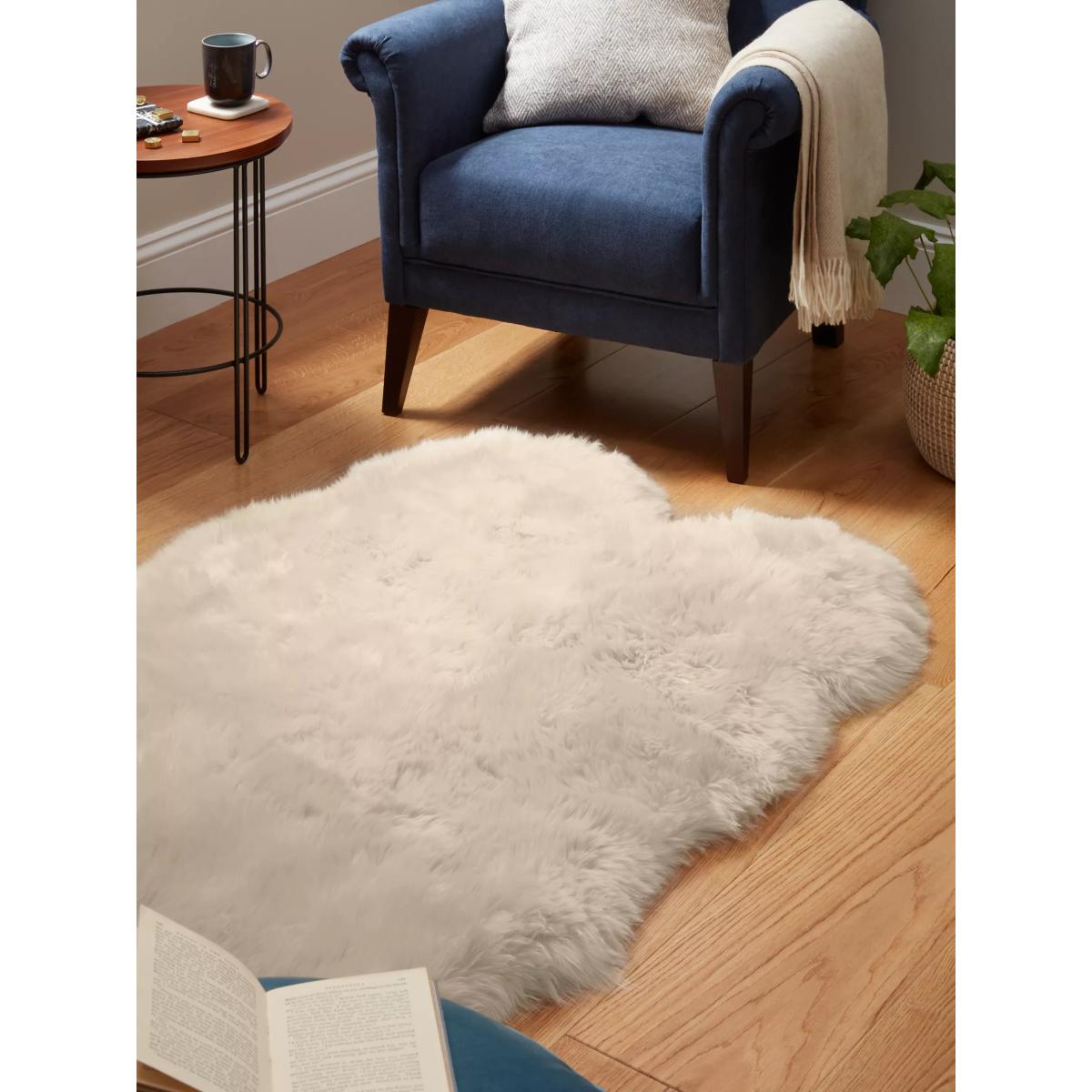Made using New Zealand wool, this versatile sheepskin rug will bring a retro-cool vibe to your home. This is a natural product therefore sight variations in sizing, colour and texture should be expected, making each piece unique. About your new rug We recommend John Lewis & Partners Rug Hold Underlay. It prevents your rug from moving underfoot and protects against colour transfer to the floor Regular light brushing or shaking will assist in keeping the skin's natural characteristics. This product can be machine washed. Pre soak in 40-degree water and wash in a wool cycle. Rinse until water is clear and then spin dry to remove any excess water. Gently comb wool whilst still damp. Slow drying will give best results, line dry away from direct sunlight. Once dry, stretch by hand in all directions. When almost dry stretch by hand in all directions. This product can be professionally dry cleaned. Reshape whilst damp, Flat Dry, Tumble dry at low temperature Owing to the handmade nature of this rug, each piece is unique in size and may differ slightly to the dimensions provided, however this does not impact the design. To avoid colour transfer, we suggest using on floors and hard seating like chairs and benches. Avoid using on cloth surfaces such as sofas and armchairs