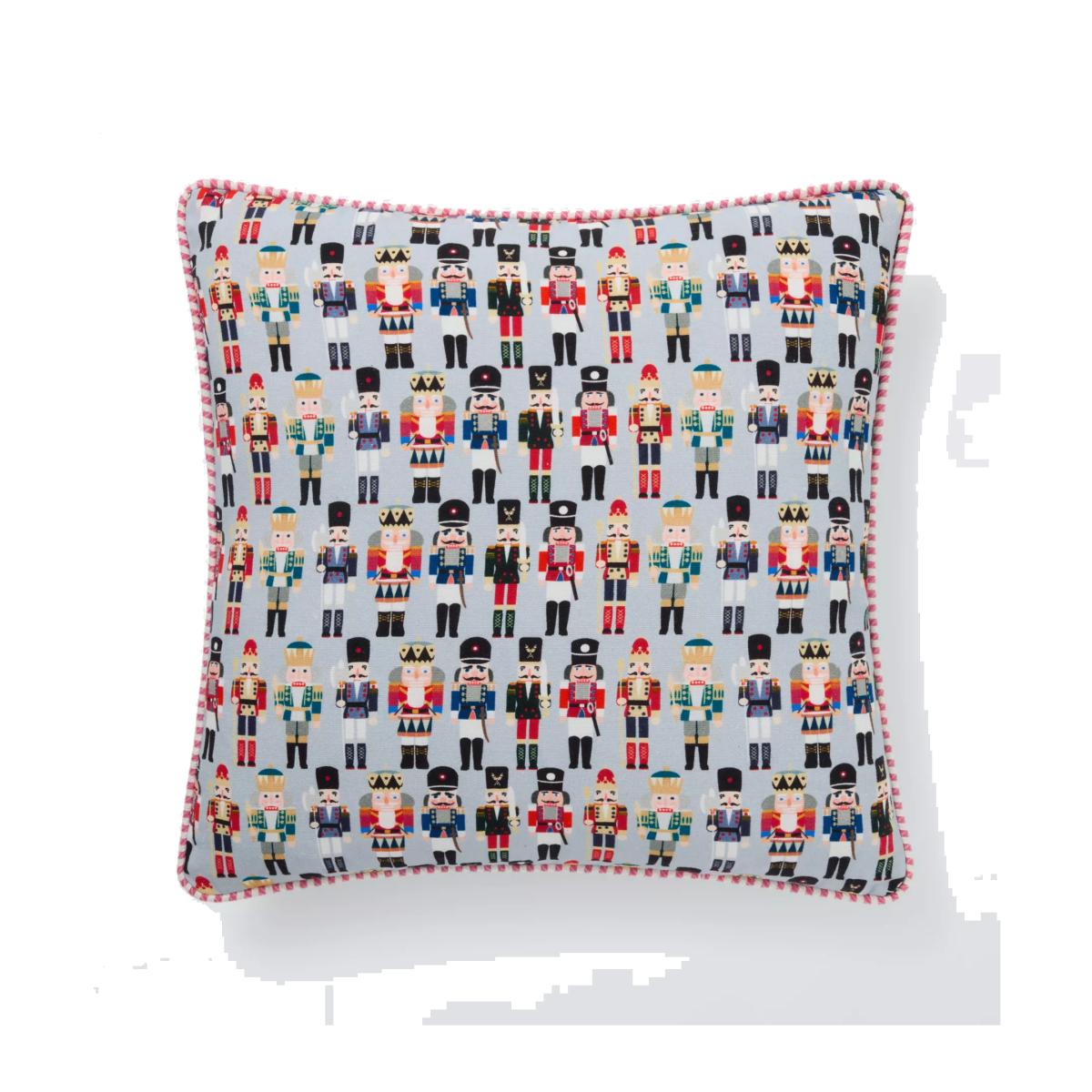 This cushion is covered with an array of colourful Nutcracker dolls. A fun and festive addition to your living room or a child's bedroom.