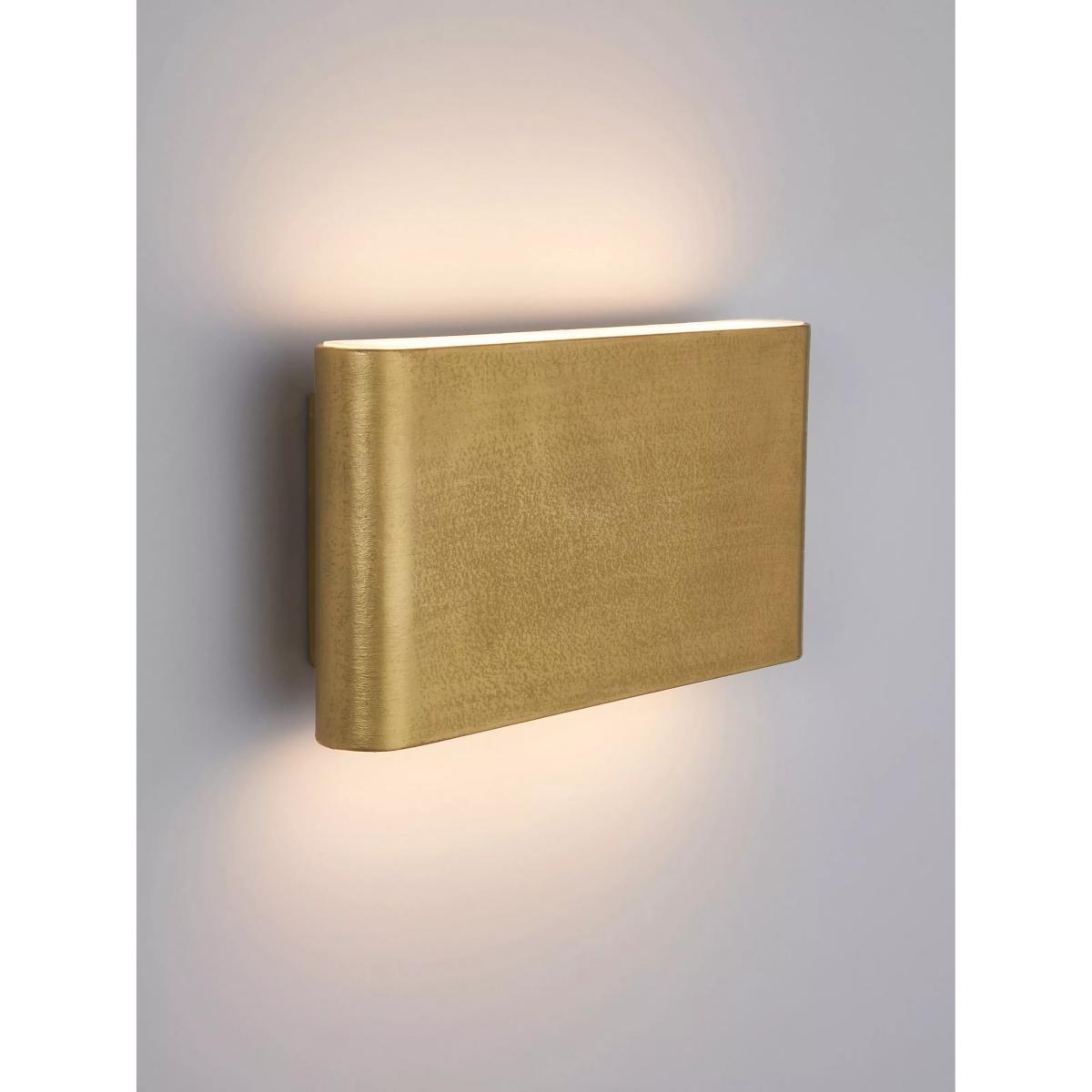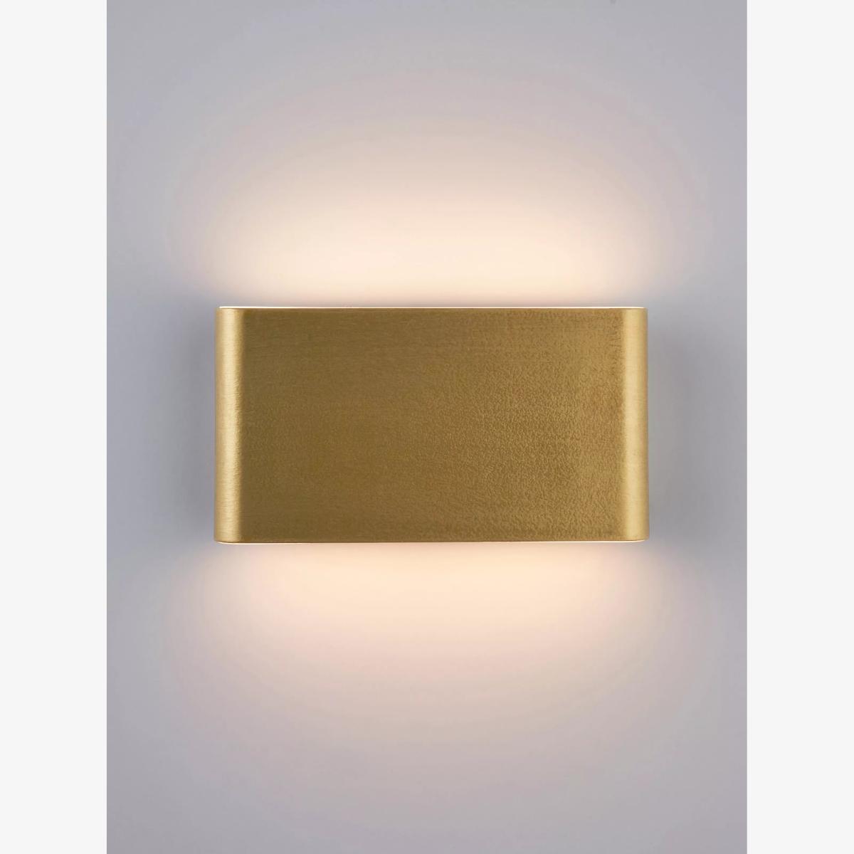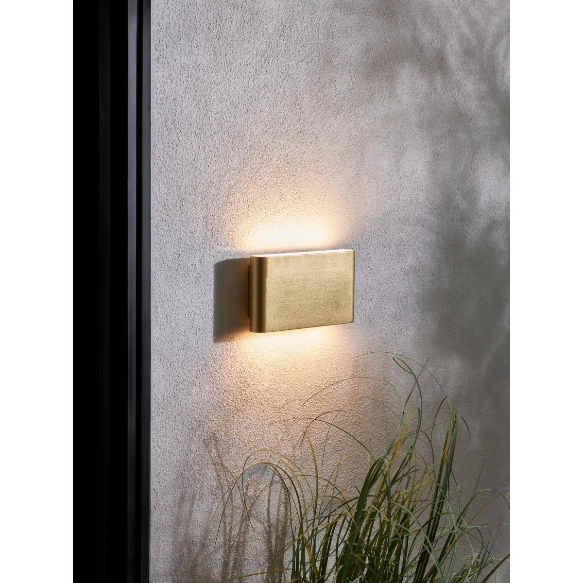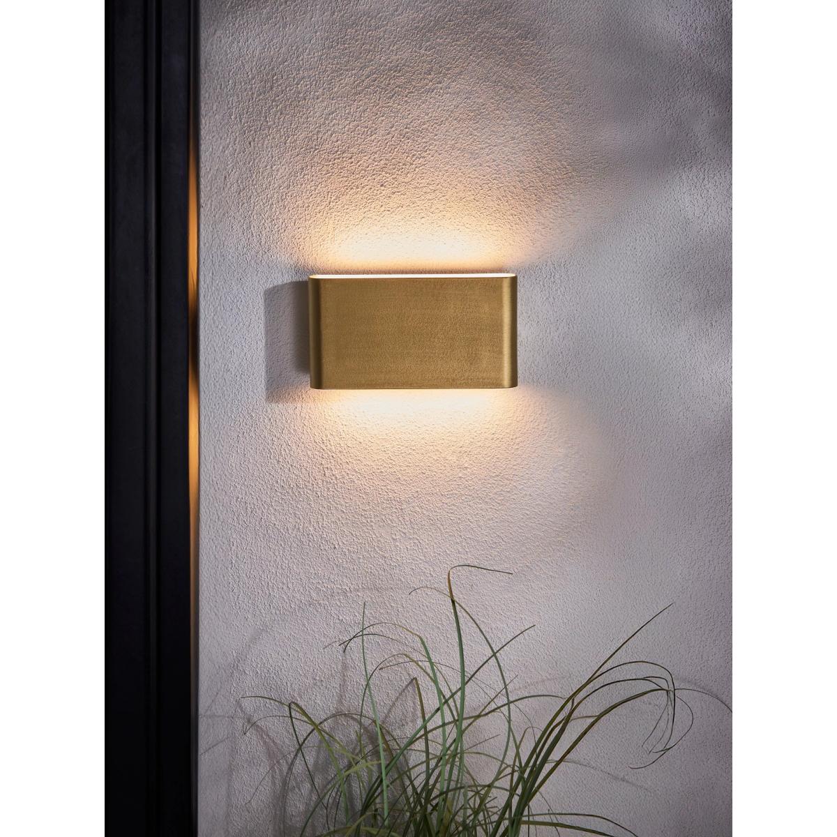 The Olbia is a unique, slimline LED wall light finished with an attractive brushed brass effect. Made from aluminium and polycarbonate, and fitted with two 3.1W integrated LEDs, this sleek exterior wall light projects a wash of warm white light both upwards and downwards. The light is IP44-rated for outdoor use.