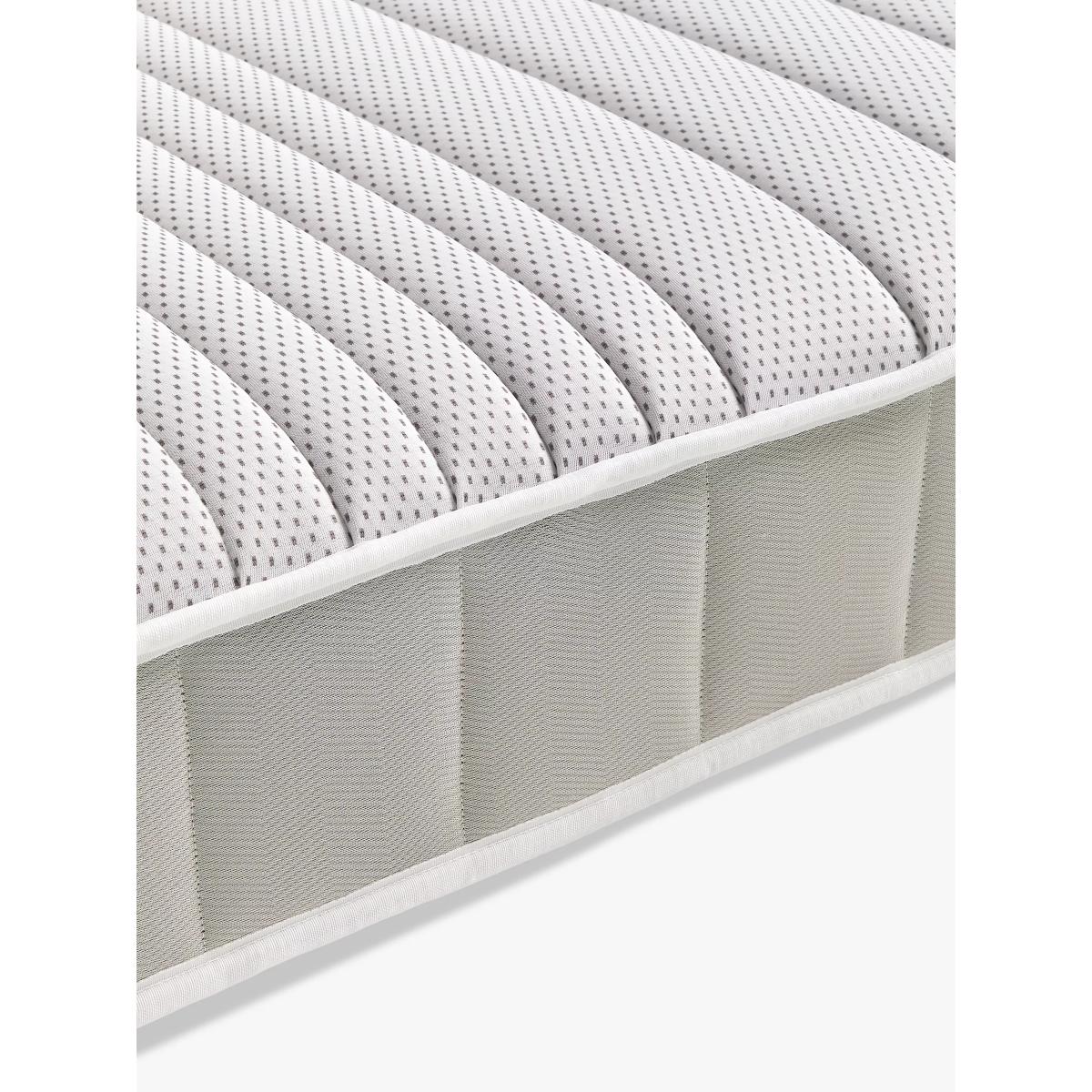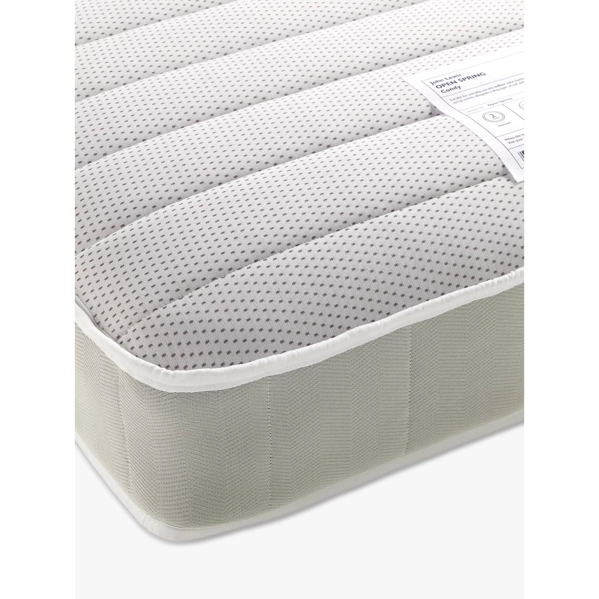 This excellent-value mattress contains an open coil spring system with a deep layer of polyester for softness. Recycled cotton, wool and polyester provide added cushioning and support, this mattress offers a medium level of support. The cover features zoned quilting in a soft stretch knit fabric which helps to keep you supported while sleeping. Finished with light grey border. No need to turn, rotate regularly. Try before you buy This is an important purchase and it’s worthwhile to try your choice of mattress in store to make sure it's right for you. Our store Partners will be able to tell you more about its benefits, and recommend options based on your needs.