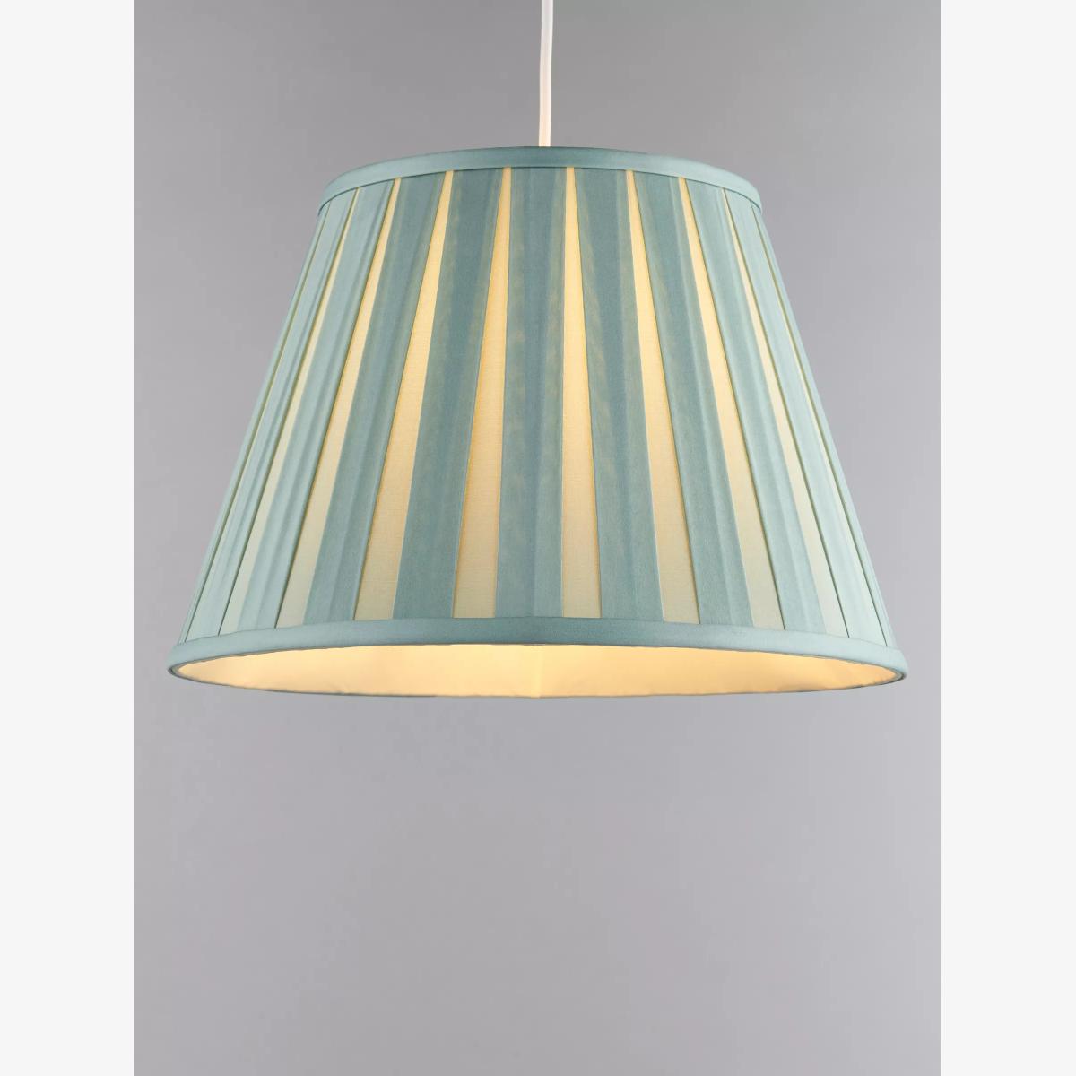 Made from a high-quality, medium-weight Dupiono silk, our Oratorio lampshade is suitable for both ceiling lights and lamp bases. Its tapered shape features wide pleat detailing with a crepe trim at the top and bottom, and it's lined in the same colour to enhance a warm and concentrated glow of light. The silk has been formed from a plain weave, where two cocoons naturally adjoined. Thanks to this natural design, any textural irregularities are characteristic of its closely weaved construction. Dimension breakdown: Dia.20cm = H13 x bottom dia.20 x top dia.12cm Dia.25cm = H18 x bottom dia.25 x top dia.16cm Dia.30cm = H20 x bottom dia.30 x top dia.18cm Dia.35cm = H23.5 x bottom dia.35 x top dia.21cm Dia.41cm = H27 x bottom dia.41 x top dia.25cm Dia.45cm = H30 x bottom dia.45 x top dia.27cm Dia.50cm = H33 x bottom dia.50 x top dia.27cm Worth knowing Small lampshade sizes are made with a reversible gimble. The Dia.45cm and Dia.50cm lampshades have fixed arms and require a lampshade spider or carrier ring to ensure a stable fit. Both are available to purchase separately, explore our options. Good to know Our straight-sided, or drum lampshades are well-paired with modern lamp bases, while tapered lampshades work well with classic style bases. You can shop our range of lamp bases here