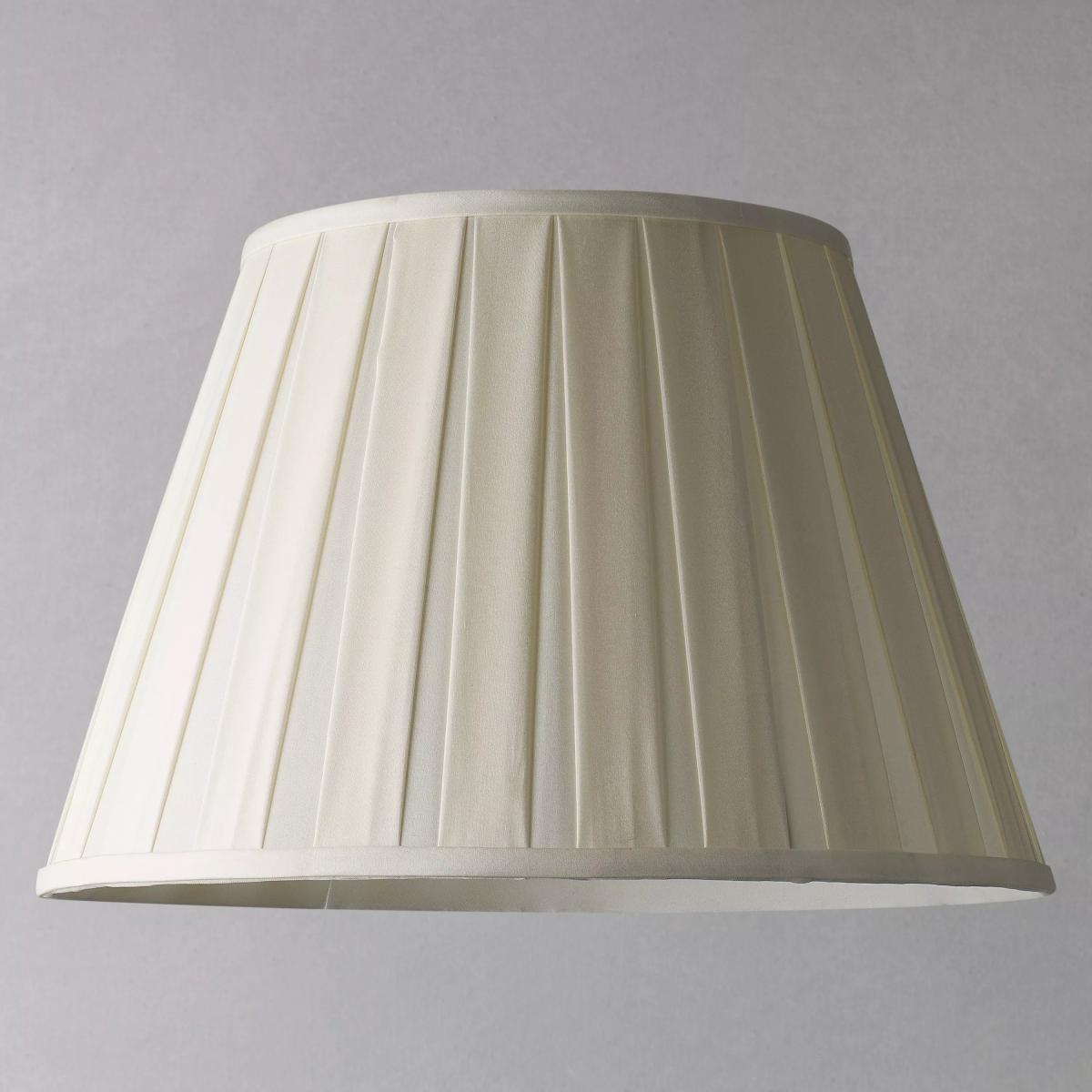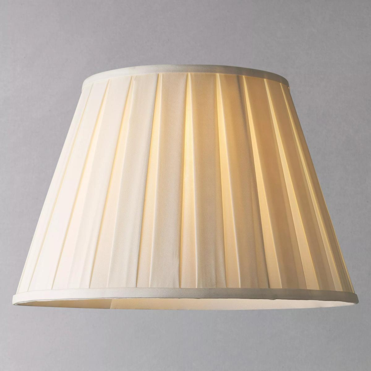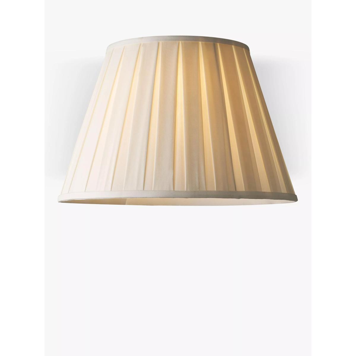 Made from a high-quality, medium-weight Dupiono silk, our Oratorio lampshade is suitable for both ceiling lights and lamp bases. Its tapered shape features wide pleat detailing with a crepe trim at the top and bottom, and it's lined in the same colour to enhance a warm and concentrated glow of light. The silk has been formed from a plain weave, where two cocoons naturally adjoined. Thanks to this natural design, any textural irregularities are characteristic of its closely weaved construction. Dimension breakdown: Dia.20cm = H13 x bottom dia.20 x top dia.12cm Dia.25cm = H18 x bottom dia.25 x top dia.16cm Dia.30cm = H20 x bottom dia.30 x top dia.18cm Dia.35cm = H23.5 x bottom dia.35 x top dia.21cm Dia.41cm = H27 x bottom dia.41 x top dia.25cm Dia.45cm = H30 x bottom dia.45 x top dia.27cm Dia.50cm = H33 x bottom dia.50 x top dia.27cm Worth knowing Small lampshade sizes are made with a reversible gimble. The Dia.45cm and Dia.50cm lampshades have fixed arms and require a lampshade spider or carrier ring to ensure a stable fit. Both are available to purchase separately, explore our options. Good to know Our straight-sided, or drum lampshades are well-paired with modern lamp bases, while tapered lampshades work well with classic style bases. You can shop our range of lamp bases here