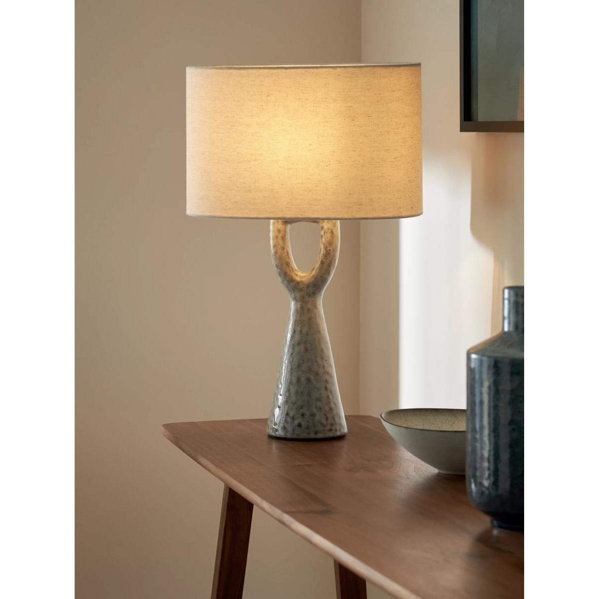 Inspired by natural organic textures, this beautiful ceramic table lamp makes a lovely addition to any home. Combining a wonderful transparent glaze with a warm tone, oval linen shade creates a simple yet stylish finish. It’s the ideal size for side tables or desks and will brighten up any space.
