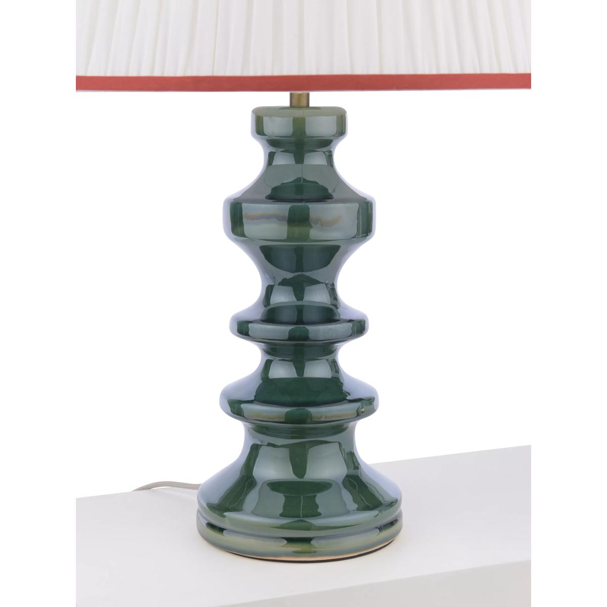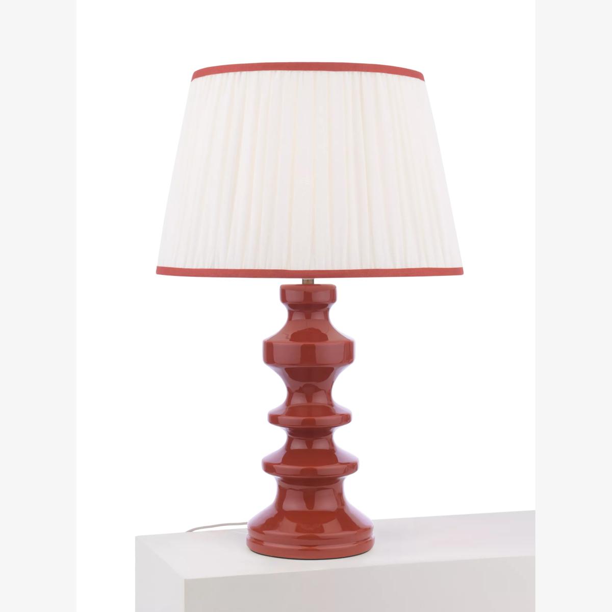 Create a warm ambience with our tiered rib ceramic table lamp in a rich glossy crackle finish which highlights the detailing. Complete with a pleated woven fabric lampshade and contrasting trim.