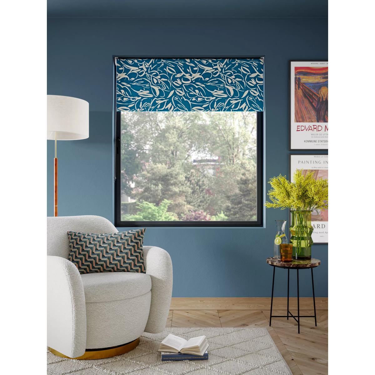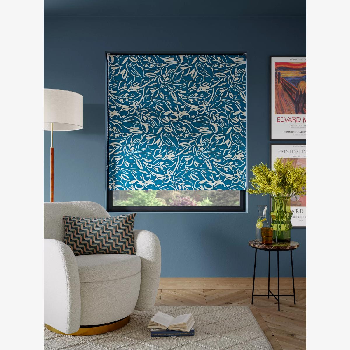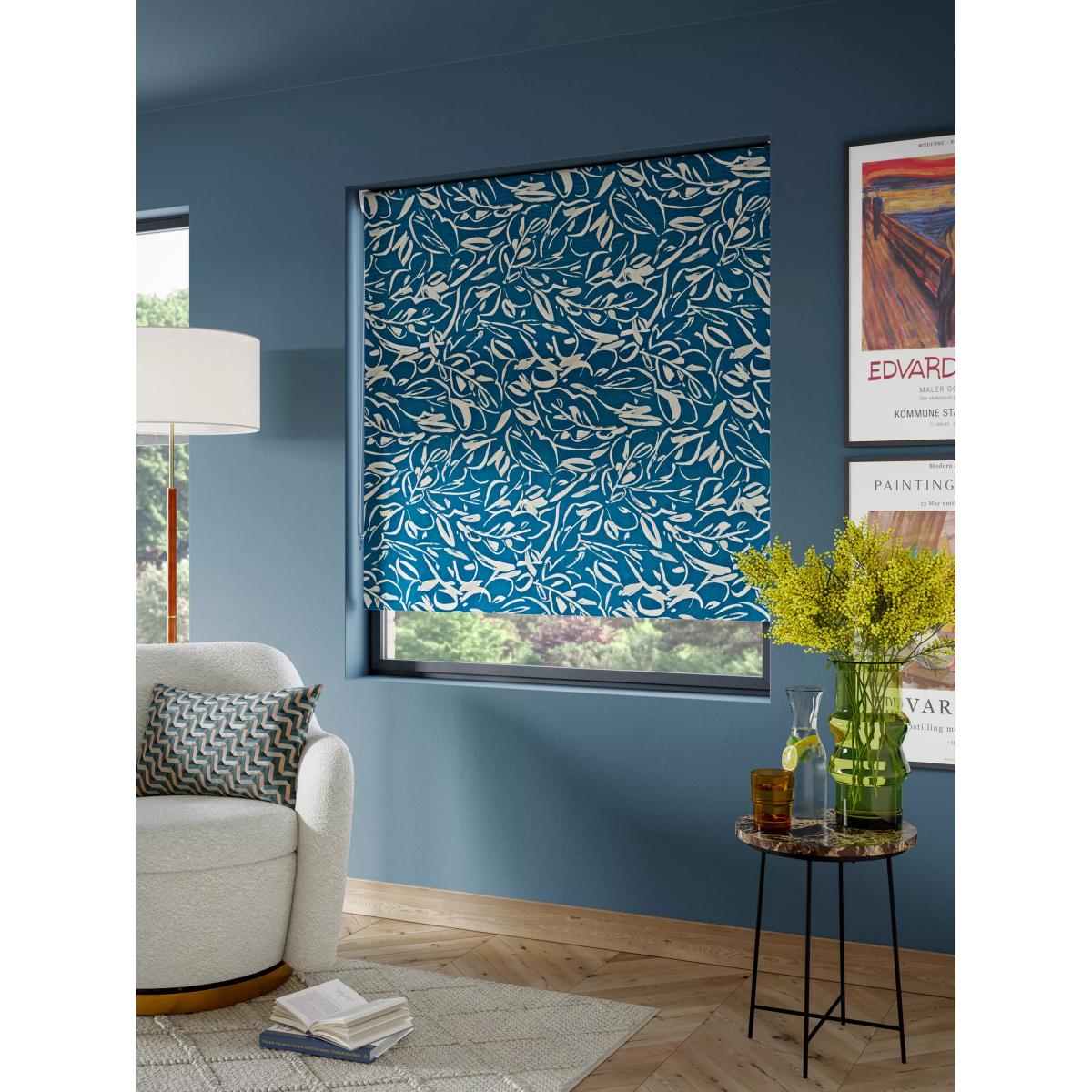 Our painted leaves blind has a stylised two-colour design featuring, you guessed it, painted leaves. It's a design that was developed in our in-house studio using expressive studies of leaves. Key features: Can be installed either inside or outside the window recess, to the wall or ceiling Can be standard or reverse rolled. Standard gives a close fit to the window, helping eliminate light. Reverse brings the material forward over the roll which conceals it and creates space between the blind and window Chain mechanism can be attached on the left or right-hand side, without affecting the way the blind is rolled Width can be cut to size Supplied with easy fit universal brackets Includes safety devices to keep children safe Warm in winter, cool in summer As the blackout lining on this blind blocks out sunlight it helps keep your room cool as well as dark. This 3 layer blackout coating also adds an extra layer of insulation, giving the blind thermal properties which aren’t found on non-blackout blinds. It protects against both heat loss and heat gain, regulating the temperature of your room so you’re kept warm in winter and cool in summer. Worth knowing... The width stated in our product specifications is the total width of the blind including mechanisms and brackets. The width of the fabric alone will be a few centimetres less than this. Safety warning Young children can be strangled by loops in pull cords, chains, tapes and inner cords that operate the product. To avoid strangulation and entanglement, keep cords out of the reach of young children - cords may become wrapped around a child's neck Move beds, cots and furniture away from window covering cords Do not tie cords together. Make sure cords do not twist and create a loop More information on child safety can be found on our Child Safety Hub