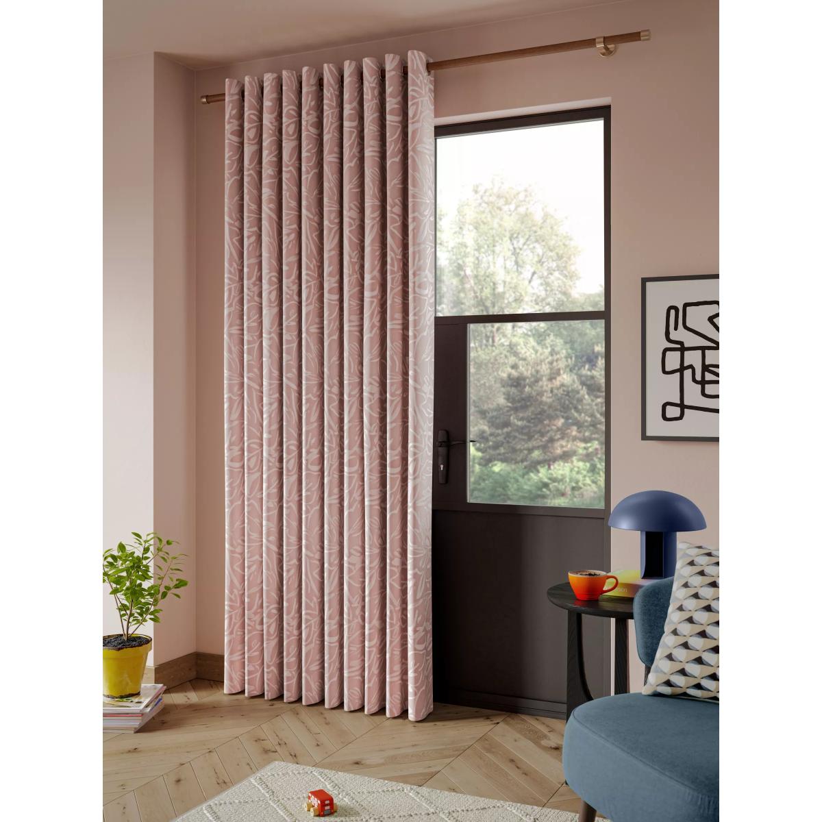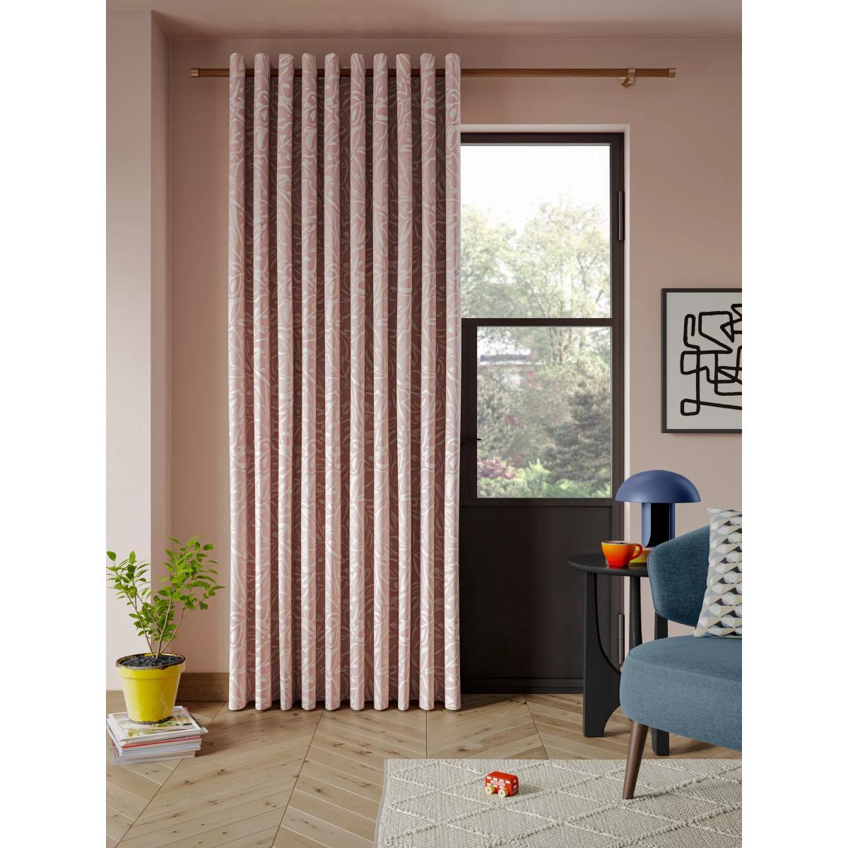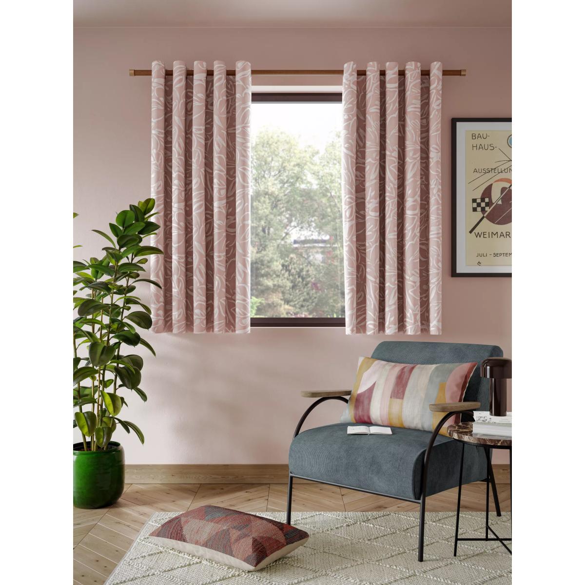 A semi-abstract swirl of leaf shapes, with an eyelet heading to give them a contemporary look with large, even folds. The 3 pass blackout lining eliminates light and lends a full look to the curtains, improving the drape and enhancing the vibrancy of the pattern. Better Cotton By choosing our cotton products, you’re supporting our investment in Better Cotton’s mission to help cotton communities survive and thrive while protecting and restoring the environment. Better Cotton Farmers are farmers who care for the environment and respect workers’ rights and wellbeing. This product is sourced via a system of mass balance and therefore may not contain Better Cotton. bettercotton.org/massbalance Warm in winter, cool in summer As the blackout lining on these curtains blocks out sunlight they help keep your room cool as well as dark. This lining also adds an extra layer of insulation to the curtains, giving them the added benefit of being thermal. They protect against both heat loss and heat gain, regulating the temperature of your room so you’re kept warm in winter and cool in summer. The width stated indicates the size of one curtain panel when laid completely flat. This pack contains two panels and the track/pole length we've recommended allows for the two panels to be gathered when the curtains are drawn. For a fuller look, increase the curtain width. One pair of 117cm width curtains will fit a curtain track/pole size 117-167cm One pair of 167cm width curtains will fit a curtain track/pole size 133-167cm One pair of 228cm width curtains will fit a curtain track/pole size 182-228cm Worth knowing... We package our curtains in recycled materials to keep them protected whilst they make their way to you. This means that when they arrive there could be some creases in them. We recommend you hang them for a few days to allow them to flatten and for the creases to fall out. If after this period your curtains still show signs of being folded then follow the ironing instructions on the back of the packaging. Be aware that each style of curtain has different ironing instructions, including heat limitations according to the fabric, so do make sure you follow the guidance provided to get the best results. Do you need a curtain pole and accessories? Shop them here.