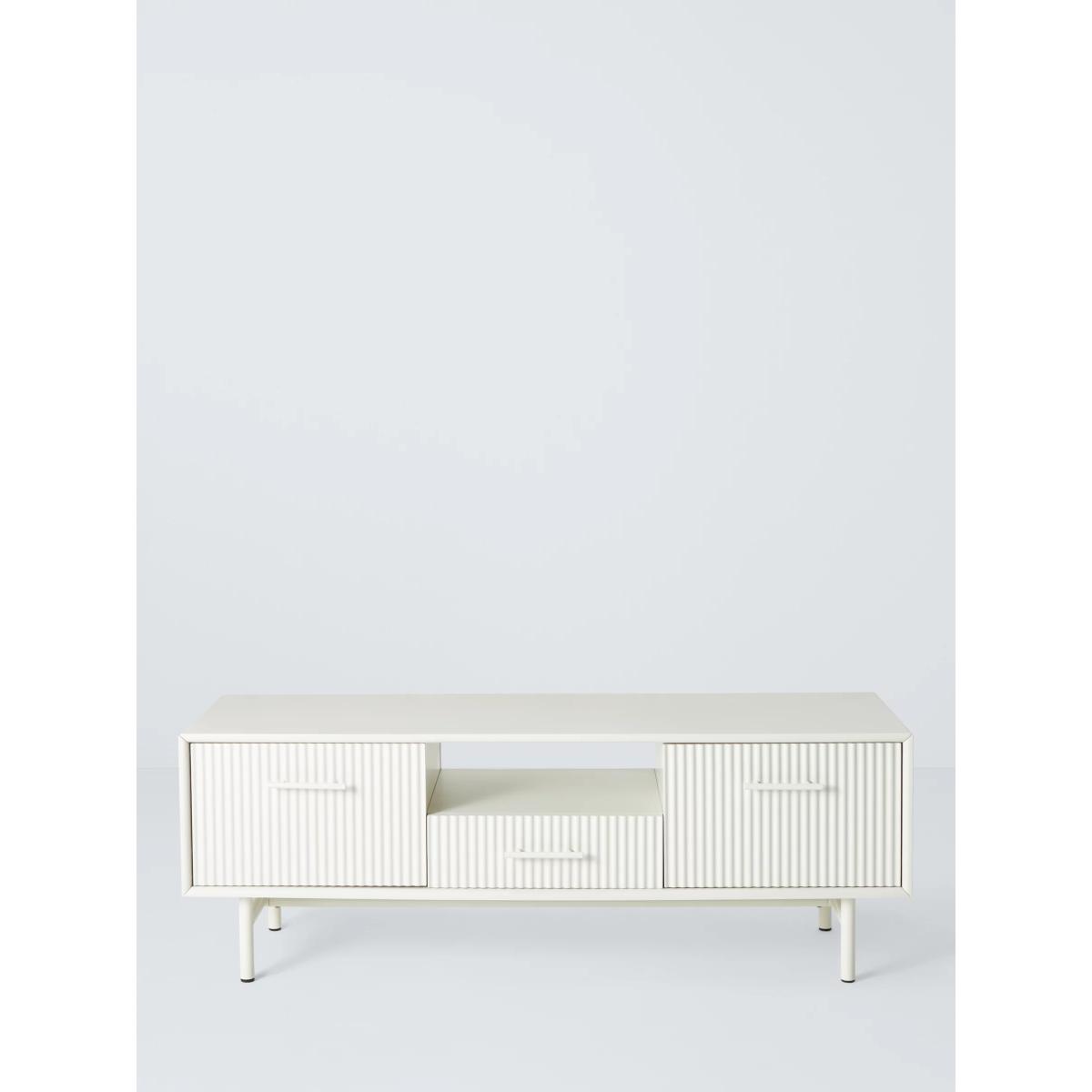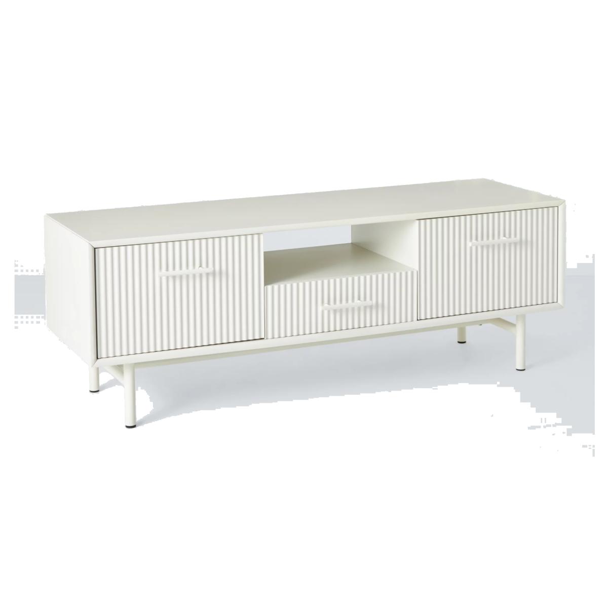 Palma is a contemporary cabinetry range with fluted detail. It's made from painted MDF with colour matched hardware. This media unit has a central drawer for storage, with fluted cupboard fronts that conceal DVD players, gaming consoles and other media devices. It also has two large cable holes at the back. Want to see it first? You may want to see and get a feel for the furniture in one of our shops before ordering. We'll be able to tell you where the range you'd like to view is on display.