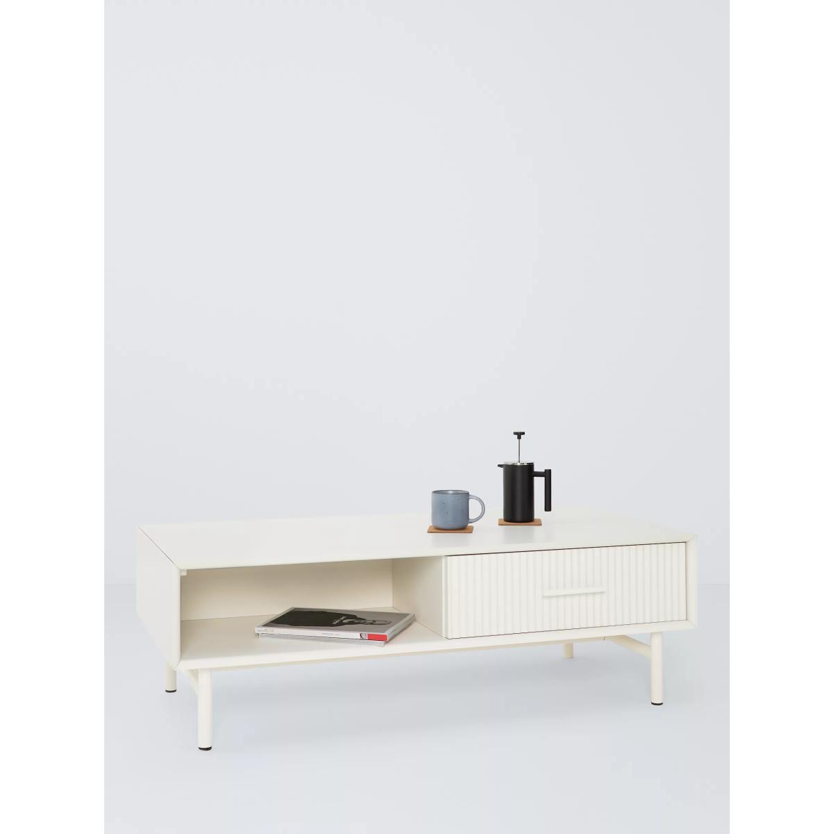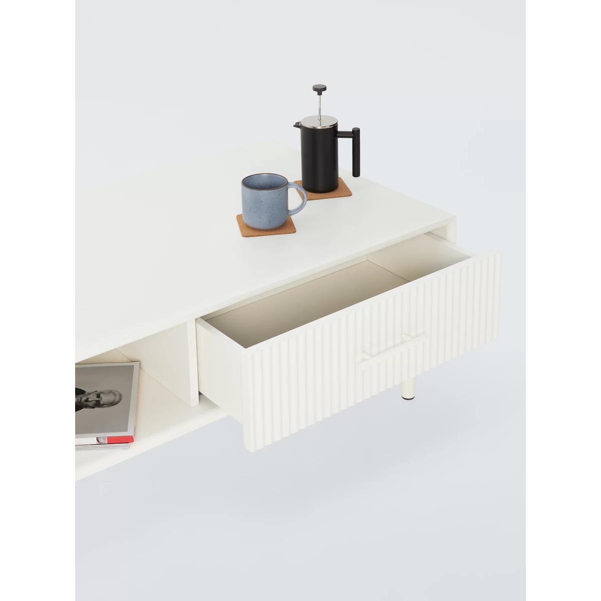 Palma is a contemporary cabinetry range with fluted detail. It's made from painted MDF with colour matched hardware. This coffee table has a drawer for storage and a separate recess for all your TV and other media remote controls. Want to see it first? You may want to see and get a feel for the furniture in one of our shops before ordering. We'll be able to tell you where the range you'd like to view is on display.