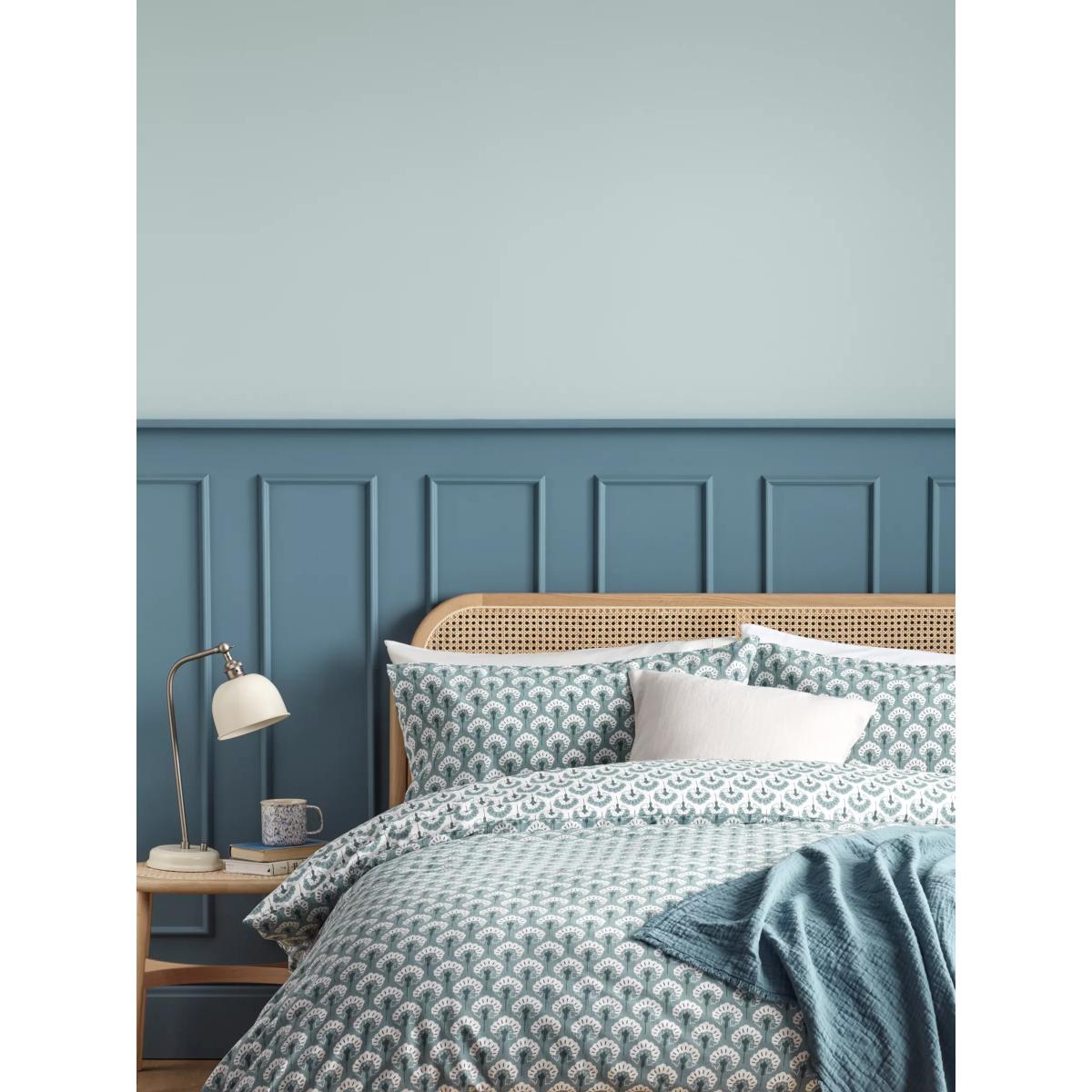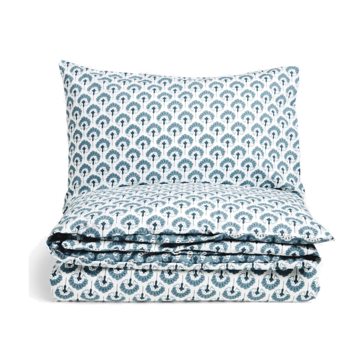Stylised fan flowers are printed in two contrasting blue shades for a choice of bedroom looks. This bedding is made from cotton fabric which is naturally breathable, helping keep you cool and comfortable throughout the night. The single set comes with one standard pillowcase, while the double, king and super king sets come with two standard pillowcases. Bedding sizes To fit duvet/pillow size (cm) Standard pillowcase, L75 x W50cm Single duvet cover, L200 x W135cm Double duvet cover, L200 x W200cm King duvet cover, L220 x W225cm Super king duvet cover, L220 x W260cm Better Cotton By choosing our cotton products, you’re supporting our investment in Better Cotton’s mission to help cotton communities survive and thrive while protecting and restoring the environment. Better Cotton Farmers are farmers who care for the environment and respect workers’ rights and wellbeing. This product is sourced via a system of mass balance and therefore may not contain Better Cotton. bettercotton.org/massbalance