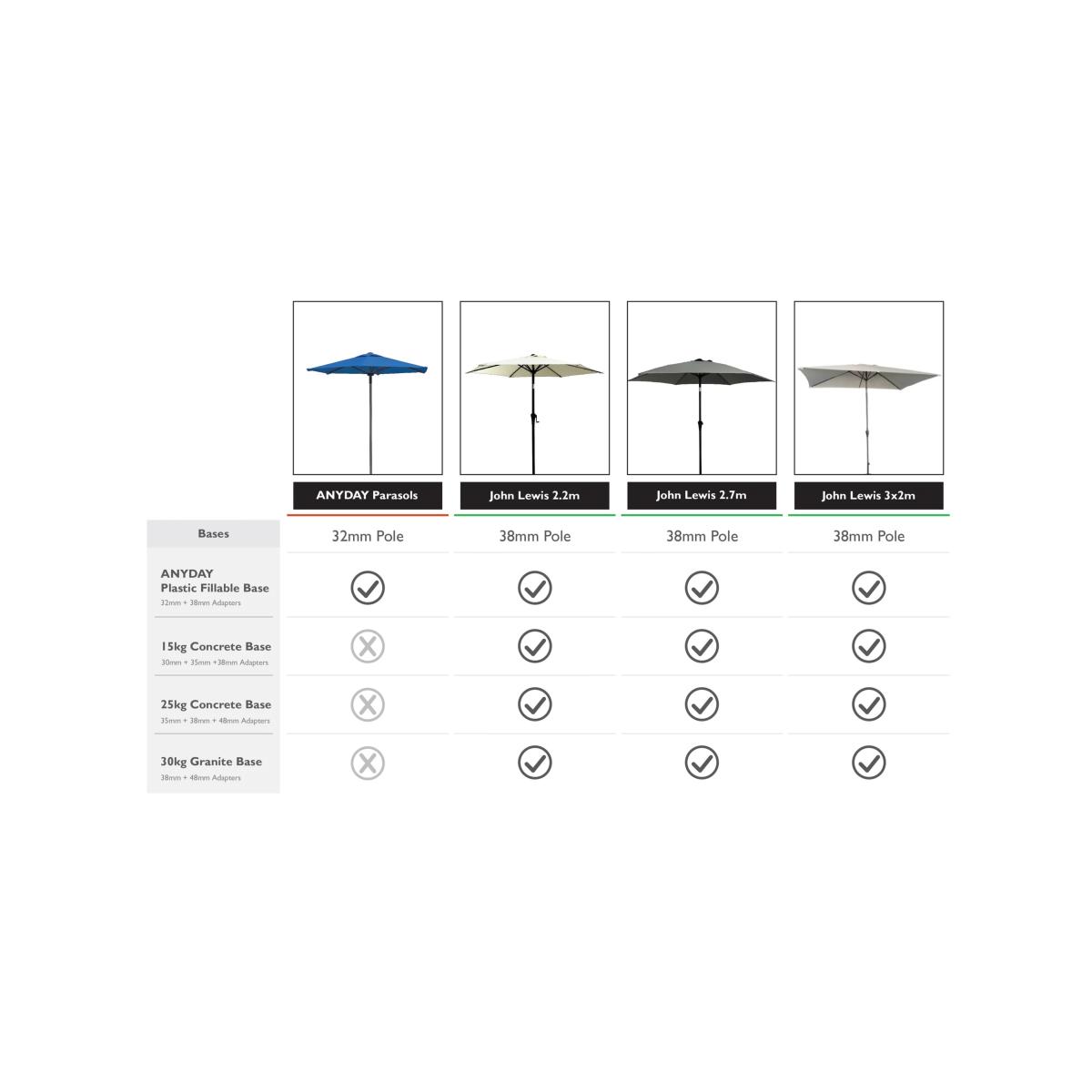 This concrete and steel base is suitable for freestanding parasols up to 48mm in diameter, keeping them in position on your patio or in the garden. It comes with a screw-in size adaptor to adapt to either 35mm, 38mm or 48mm in pole diameter.