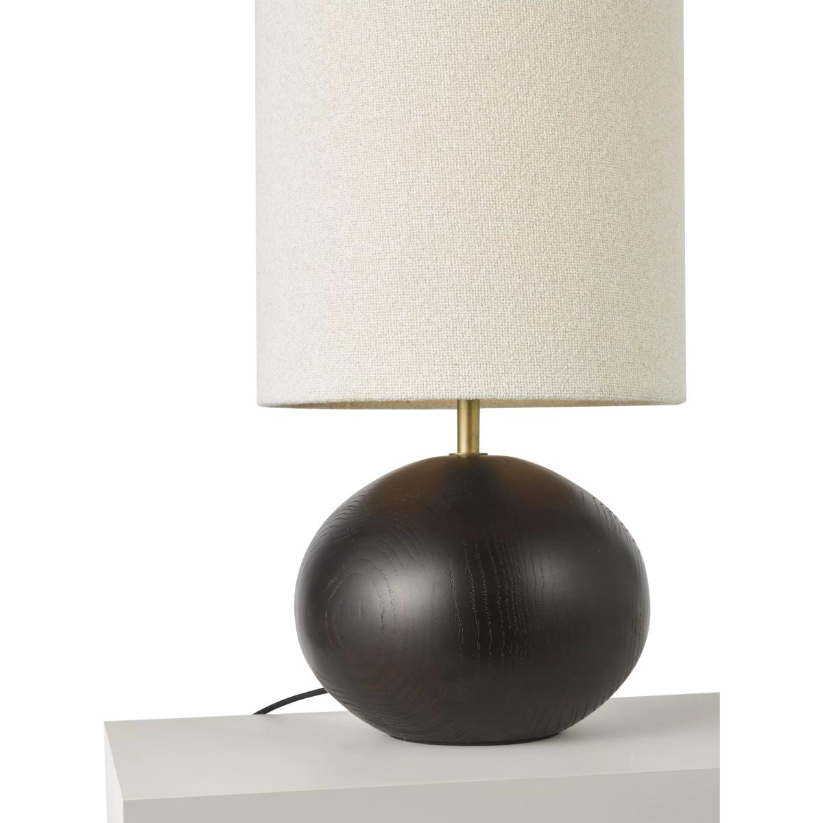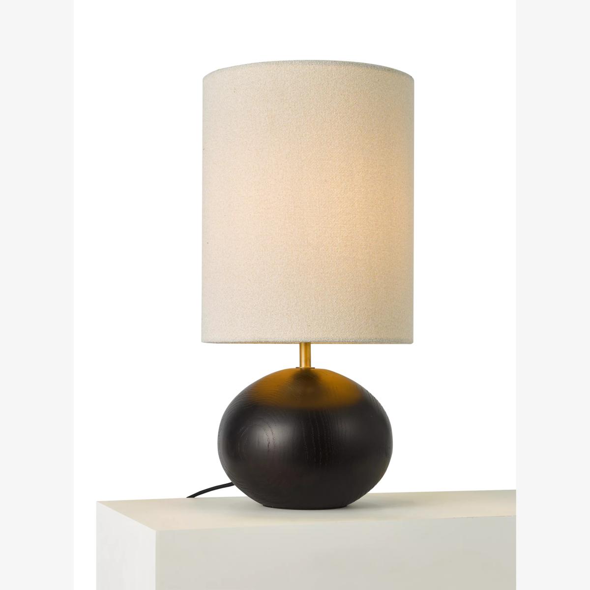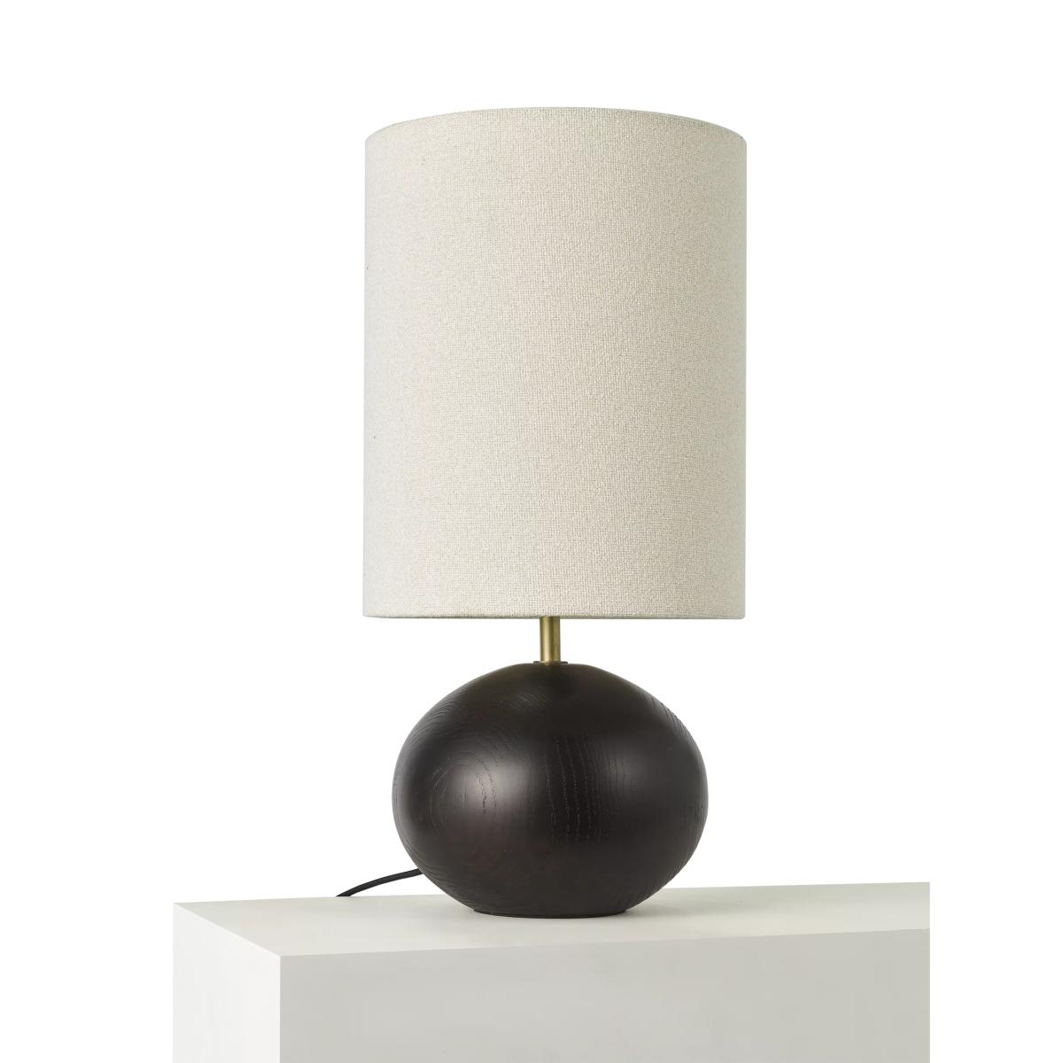 This table lamp is made with a smooth pebble like base, teamed with a natural linen lampshade that diffuses the light.