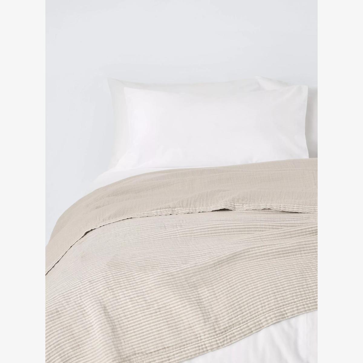 A breathable and lightweight cotton throw with a pencil stripe. It's ideal for summer nights or to add an extra interest to a plain bedding set. This size allows generous draping on double beds and can comfortably fit up to super king size beds.