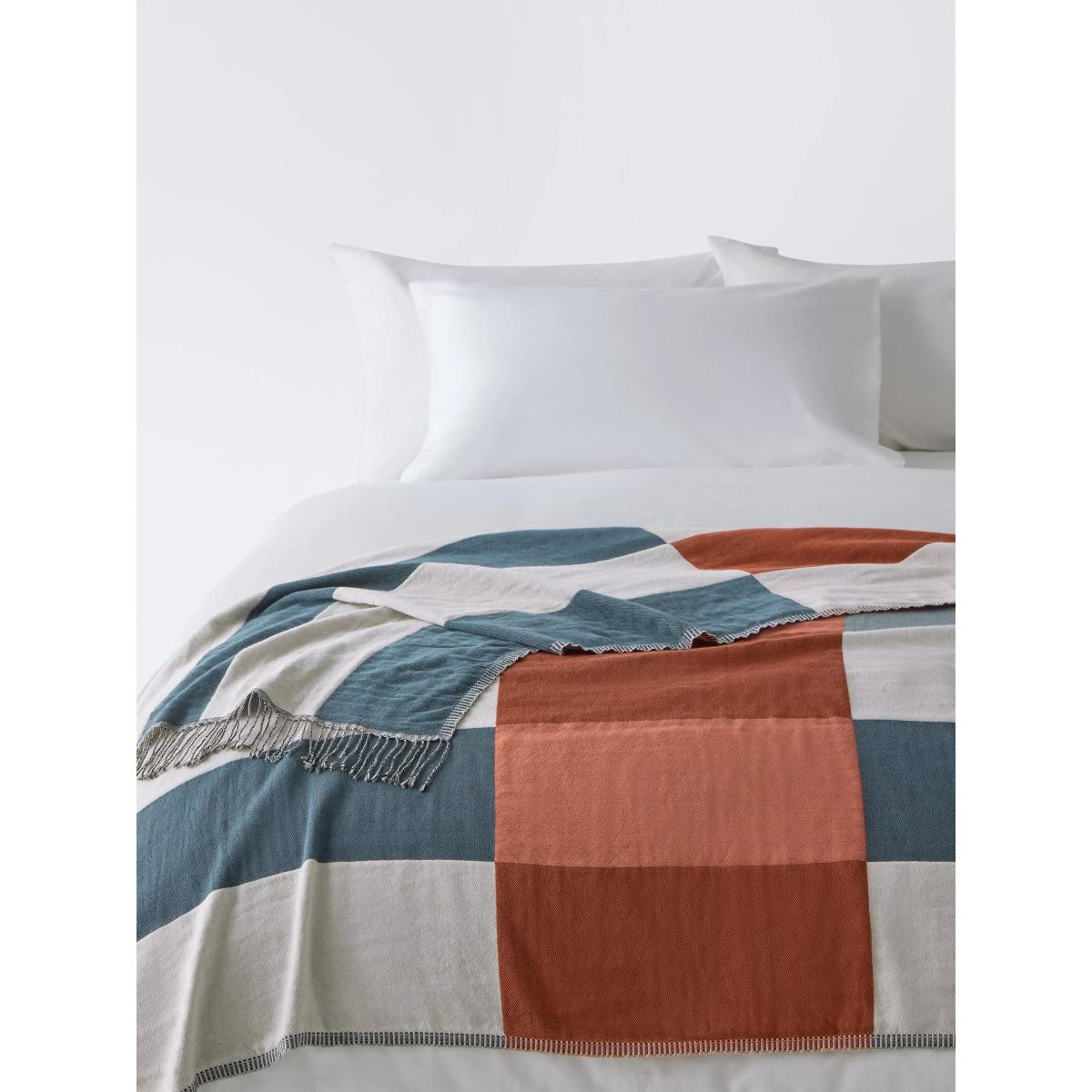 This colour block throw is made from a cotton-rich wool blend. Our generously sized throws are perfect for an extra cosy, decorative layer on your bed or keeping you cosy anywhere at home or on the move.