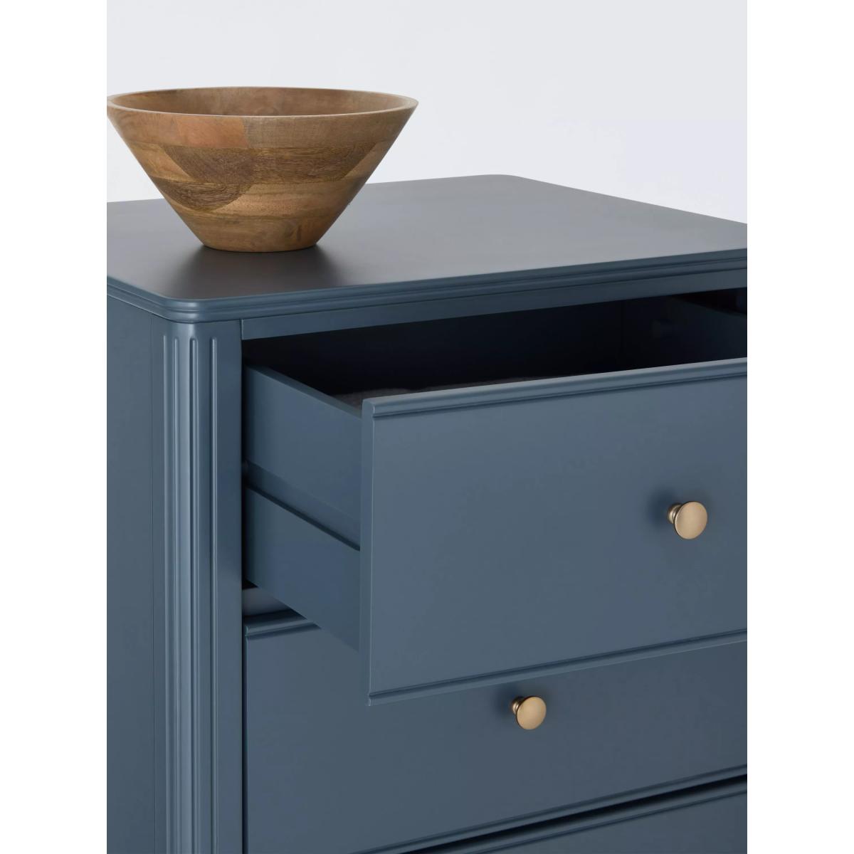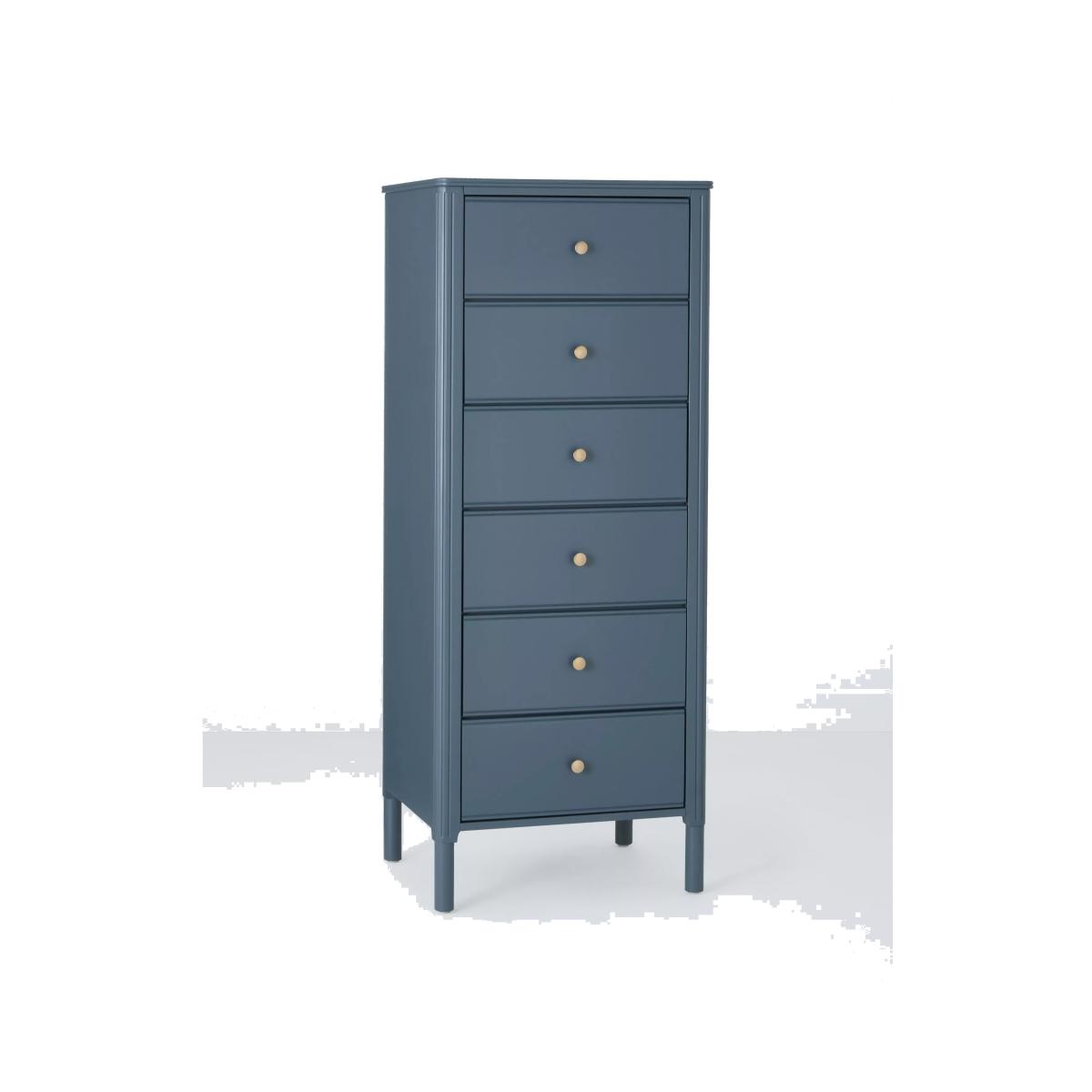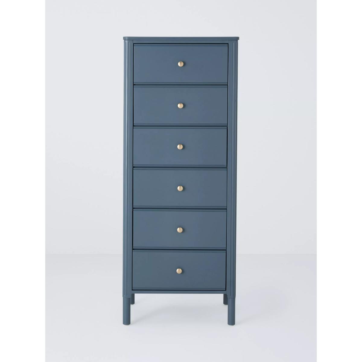Our Pillar range of bedroom furniture is timeless and practical. This tallboy chest is an ideal option if floor space is limited in your bedroom, as its tall height and narrow profile mean it won't take up too much room. It's built from a combination of robust timbers and there's plenty of storage available in its six deep drawers. We've embellished the edges of the frame and added a decorative rolled top which softens its profile and adds visual interest, and the gold hardware offers a luxe contrast. The painted finish will add an injection of colour to your bedroom, too. See me in-store It's a good idea to get a feel for new furniture before you make a purchase.