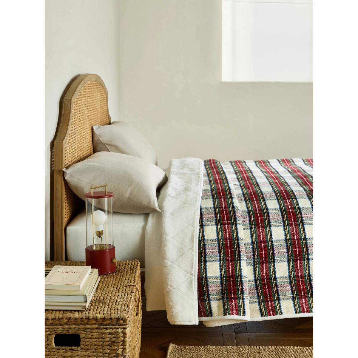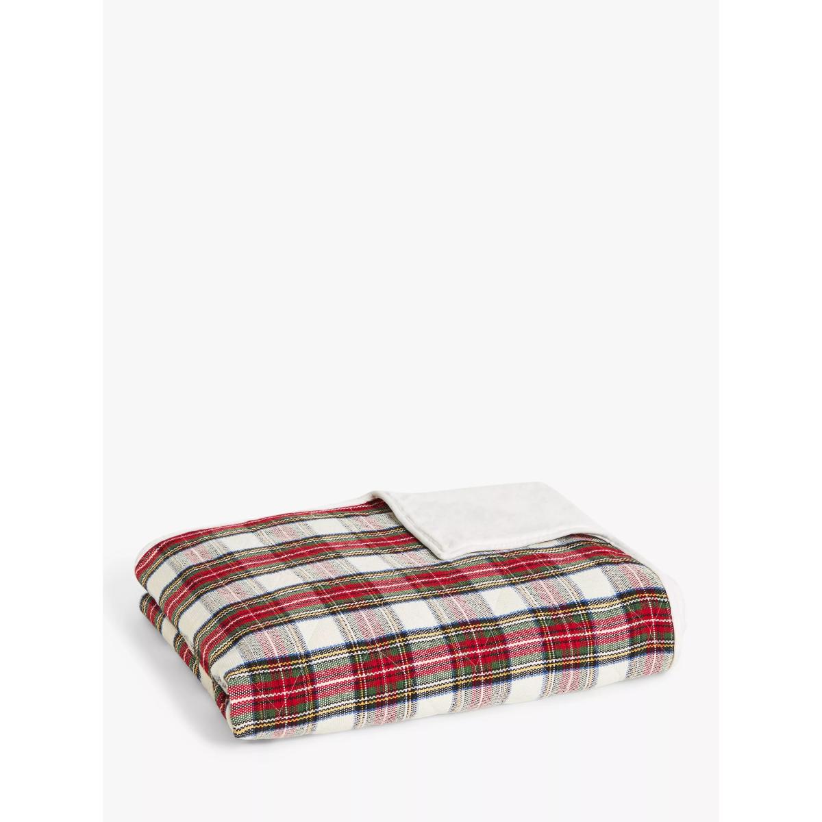 John Lewis Plaid Check Faux Fur Bedspread, Multi