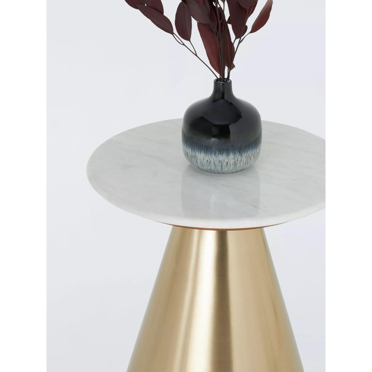 Elevate your space with this stunning marble side table. Featuring a sleek round white marble top and a striking textured brass effect cone-shaped base, it combines modern elegance with timeless design. Perfect for adding a luxurious touch to any living room or contemporary setting. Want to see it first? You may want to see and get a feel for the furniture in one of our shops before ordering. We'll be able to tell you where the range you'd like to view is on display.