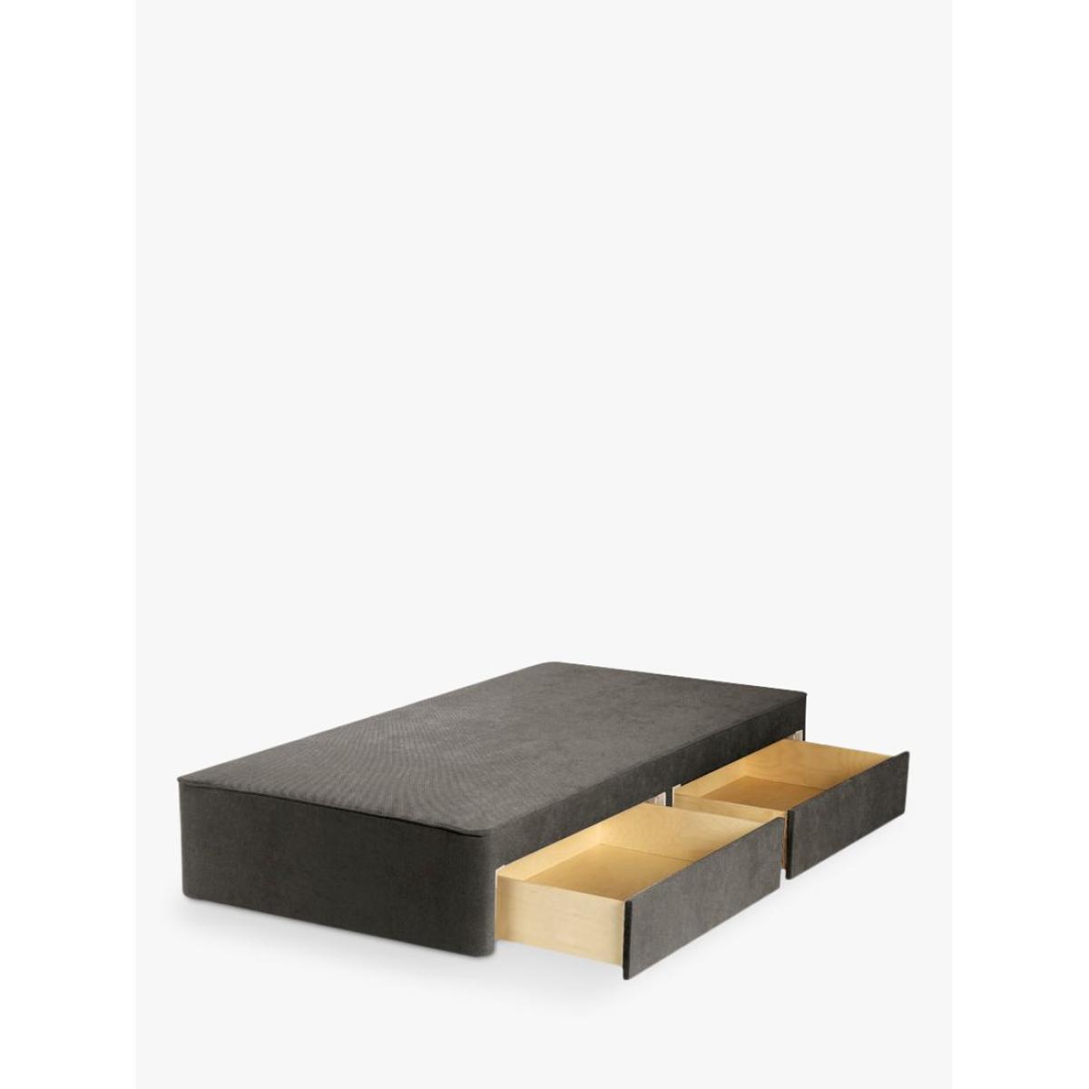 Great if you're short on storage space, this divan base features two drawers on one side of the frame, so there's extra room for your clothes or spare bed linens. A sturdy and supportive divan base, made from high-quality pine wood and designed with layers of posturfil pocket springs that provide a responsive and cushioned base for your mattress. Team it with a pocket spring mattress for enhanced support as the springs pivot in response to your movements for a deeper level of comfort while you sleep. Choose from one of our fabrics: Our Band A fabric, Cotton Effect has a laid-back and fine-textured look that looks like cotton, but it's made from durable polyester fibres Our Band A fabric, Brushed Tweed is made with a brushed herringbone weave that has a cosy wool look and soft 'peach skin' feel. It's really hard-wearing and a brilliant all-rounder Our Band B fabric, Soft Touch Chenille is made from a blend of fibres that give it a super-soft feel and added durability Our Band B fabric, Deep Velvet is soft and luxurious like velvet and available in a rich colour palette Our Band B fabric, Relaxed Linen gives you the fine texture of cotton, the durability of synthetic fibres and the laid-back look of linen Want to see it first? You may want to see and get a feel for the furniture in one of our shops before ordering. We'll be able to tell you where the range you'd like to view is on display.
