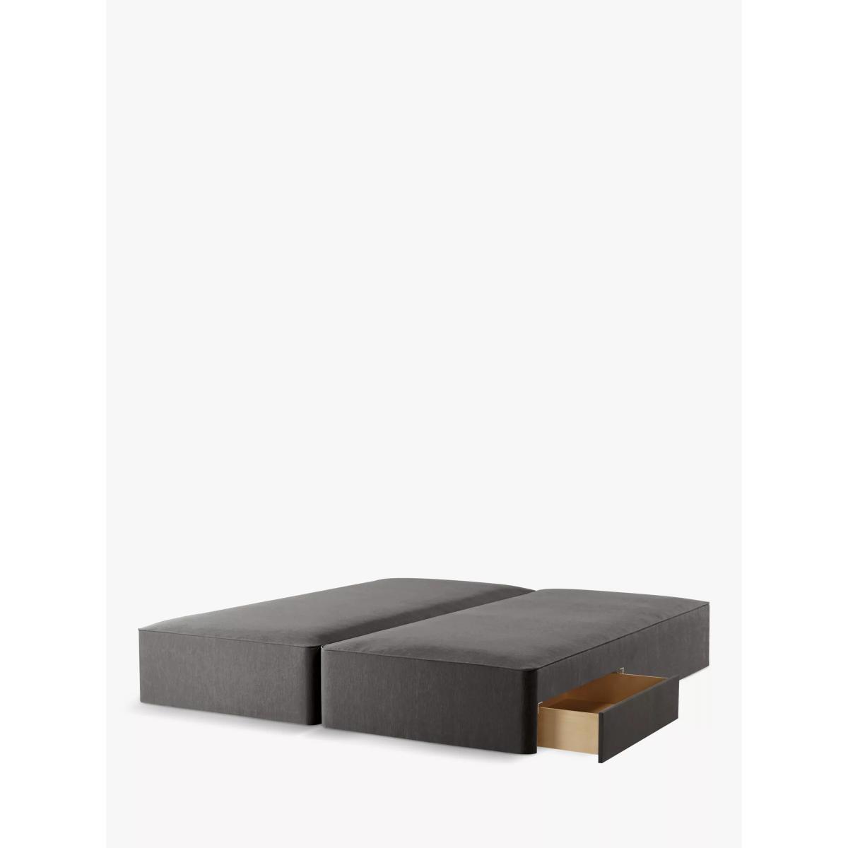 Great if you're short on storage space. This divan base features two drawers, one on either side of the frame, so there's extra room for your clothes or spare bed linens. A sturdy and supportive divan base, made from high-quality pine wood and designed with layers of posturfil pocket springs that provide a responsive and cushioned base for your mattress. Team it with a pocket spring mattress for enhanced support as the springs pivot in response to your movements for a deeper level of comfort while you sleep. Choose from one of our fabrics: Our Band A fabric, Cotton Effect has a laid-back and fine-textured look that looks like cotton, but it's made from durable polyester fibres Our Band A fabric, Brushed Tweed is made with a brushed herringbone weave that has a cosy wool look and soft 'peach skin' feel. It's really hard-wearing and a brilliant all-rounder Our Band B fabric, Deep Velvet will bring warmth and luxury to your bedroom. It's a short pile velvet with a soft, plush feel Our Band B fabric, Soft Touch Chenille is made from a blend of fibres that give it a super-soft feel and added durability Our Band B fabric, Relaxed Linen gives you the fine texture of cotton, the durability of synthetic fibres and the laid-back look of linen Want to see it first? You may want to see and get a feel for the furniture in one of our shops before ordering. We'll be able to tell you where the range you'd like to view is on display.