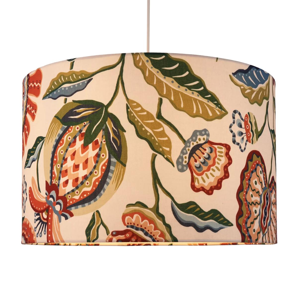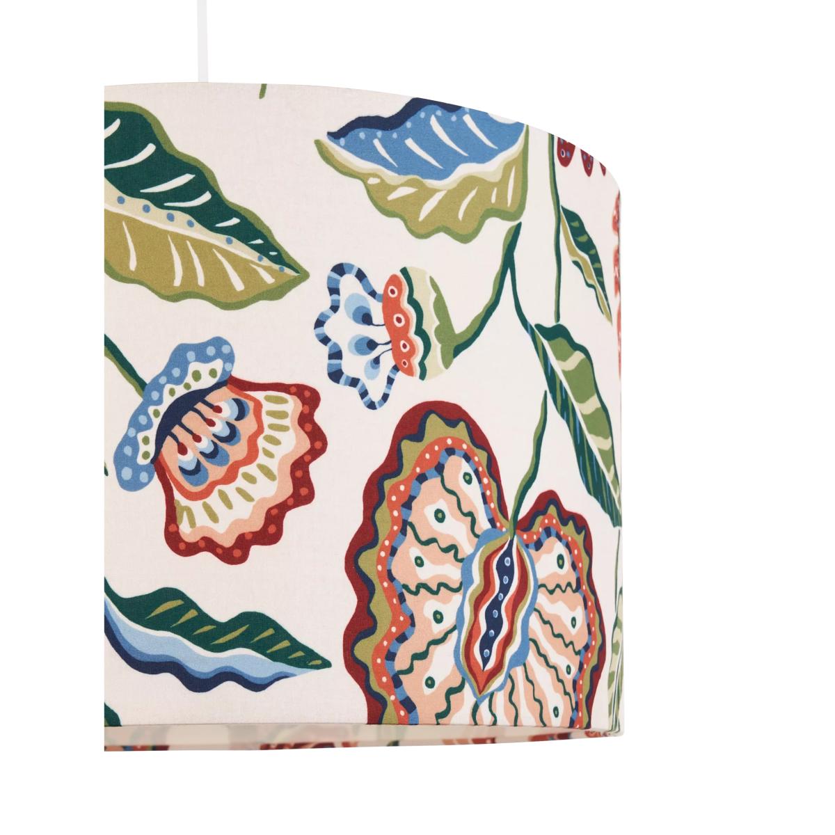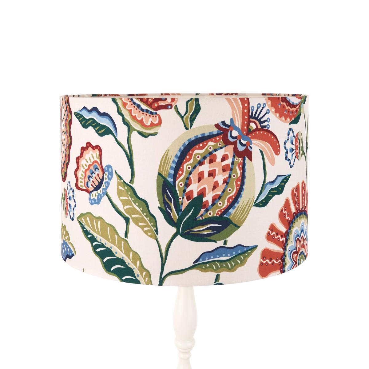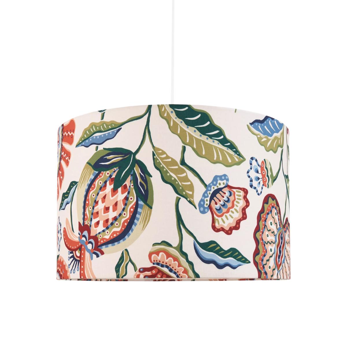 This drum lampshade complements the classic interior trend with its digitally printed floral pattern on faux-linen fabric. The heritage pattern is from an archive print, updated by our in-house Design Studio. Equipped with a reversible gimbal fitting, this lampshade adapts for use as either a ceiling shade or a table lamp, making it perfect for adding a creative, statement-making edge to your decor. Suitable for use on our pendant cord flex sets. Good to know Our straight-sided or drum lampshades are well-paired with modern lamp bases, while tapered lampshades work well with classic-style bases. You can shop our range of lamp bases here.