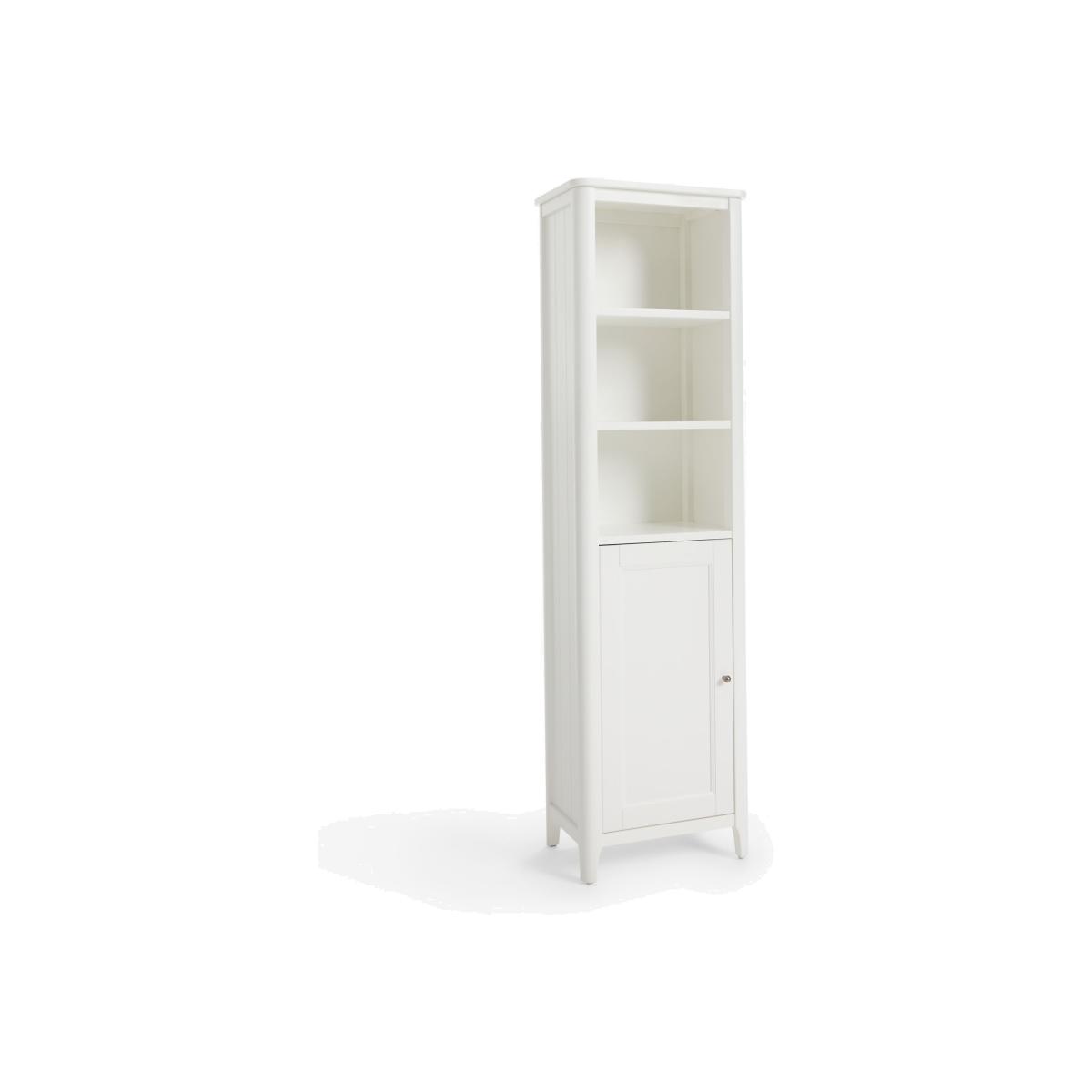 This practical bathroom tallboy secures to the wall and provides an organised storage space for your bathroom essentials. Made from a poplar wood and MDF blend in a painted finish, it has open shelving as well as a cupboard section that opens to reveal two adjustable shelves. Grooved detailing on the doors and softer, curved edges around the frame give this bathroom cabinet a more modern edge. Good to know This storage cupboard is supplied with wall fixings but screws are required. Want to see it first? You may want to see and get a feel for the furniture in one of our shops before ordering. We'll be able to tell you where the range you'd like to view is on display.
