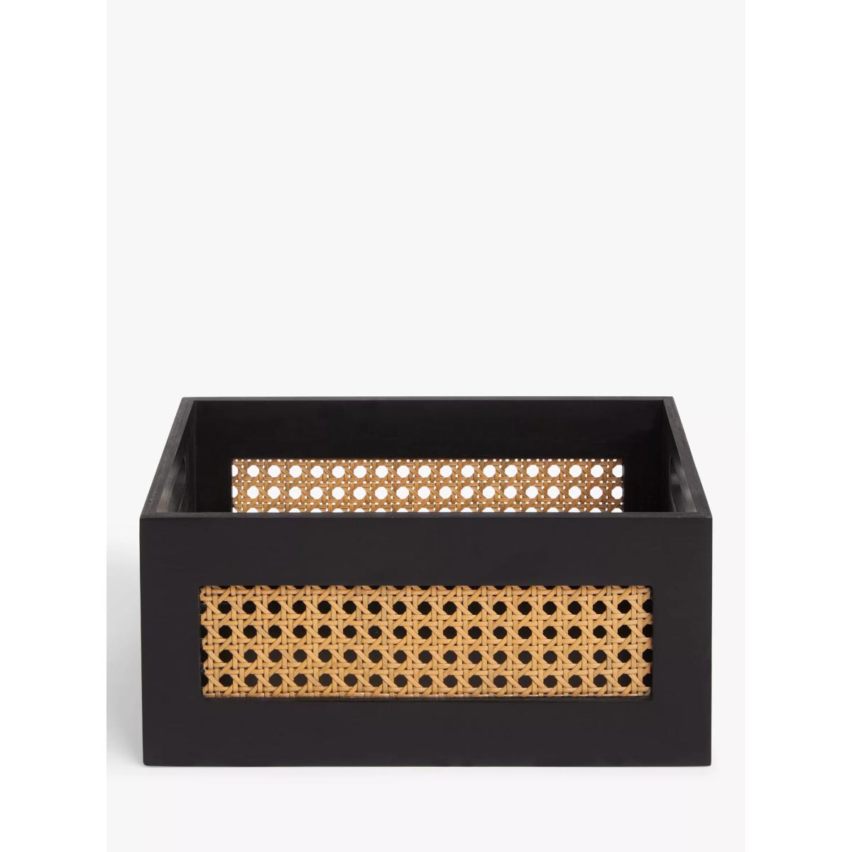 An attractive open storage box that's great to display in a bathroom or bedroom. Alternatively, use as breathable in-wardrobe storage for clothing and accessories. It's made with a black painted bamboo frame with natural rattan panels.