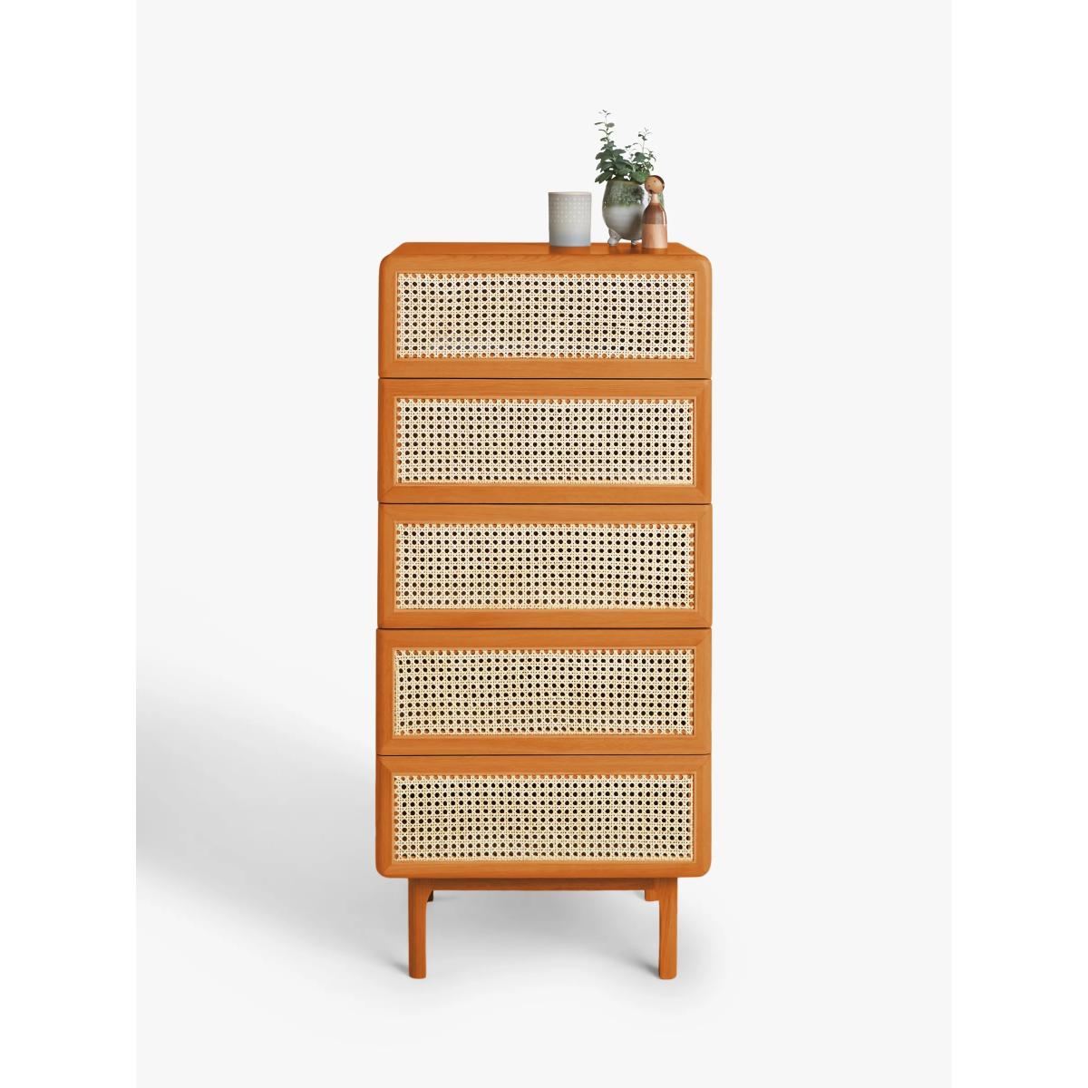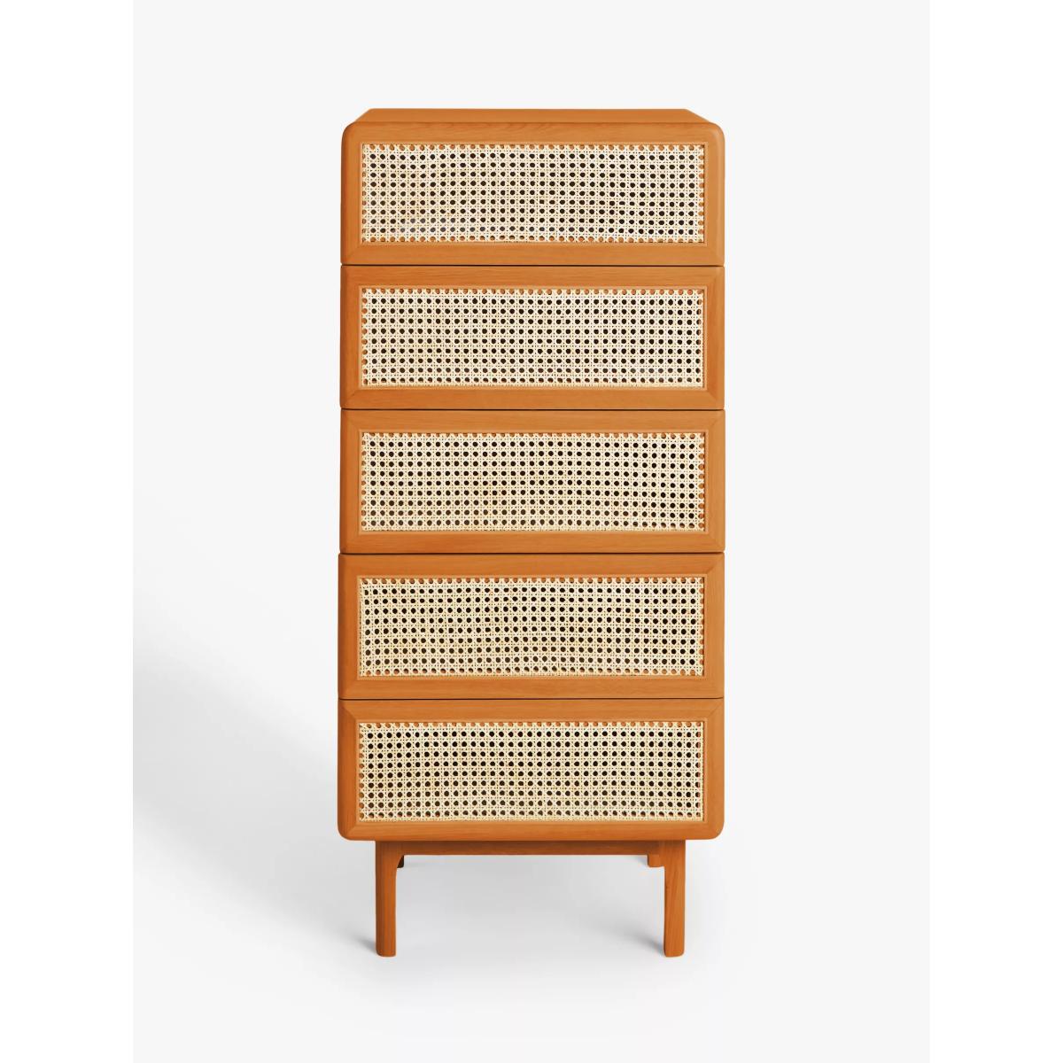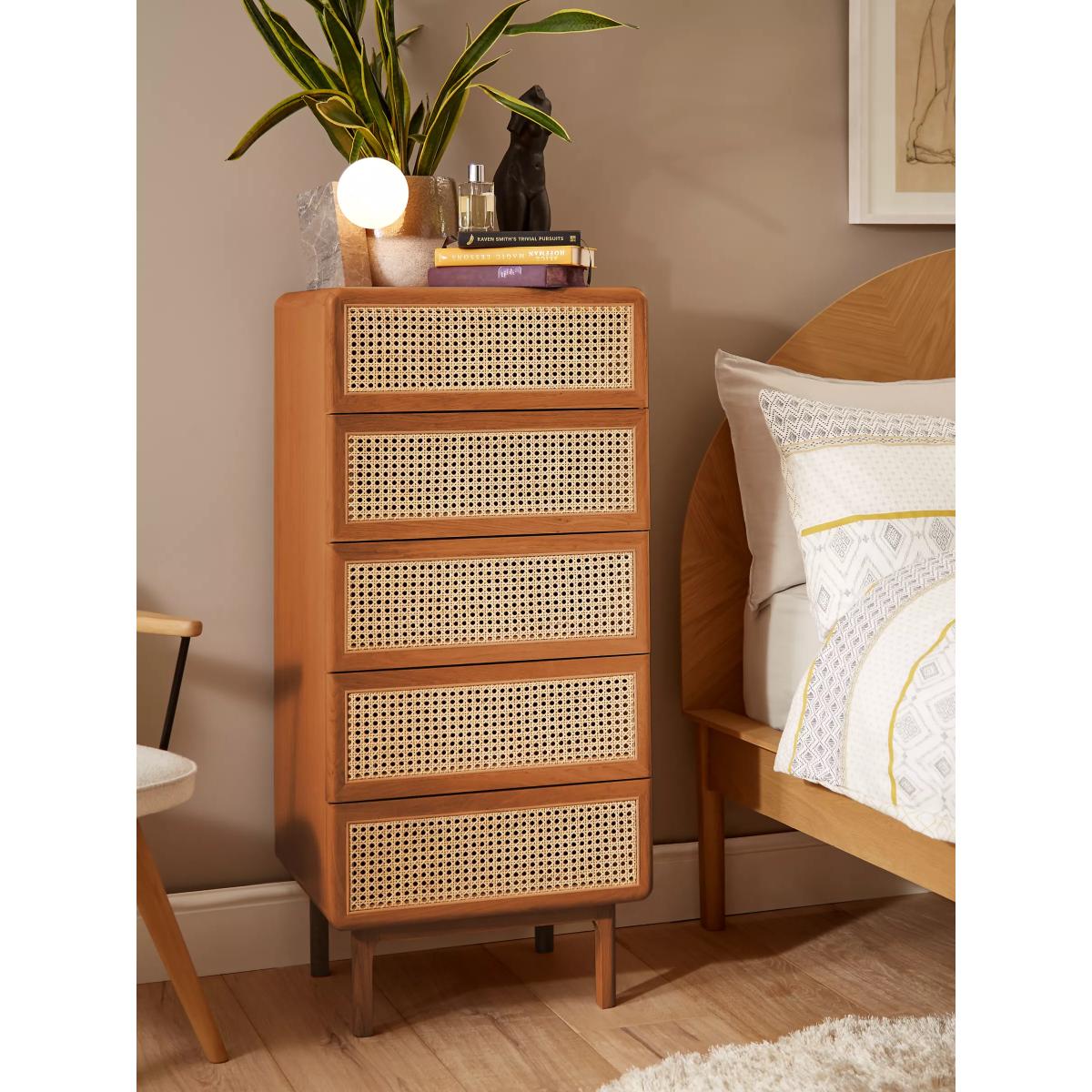 John Lewis Rattan Cherry 5 Drawer Tallboy Chest, Brown