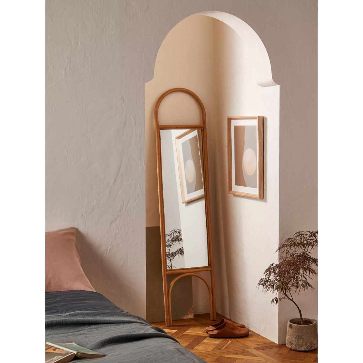 I love the John Lewis rattan cheval mirror for its natural finish, which adds warmth and texture to a variety of interiors. It's ideal for boho, Scandi, or coastal styles, where the rattan's organic feel complements soft, neutral palettes. Its slim, tall design makes it perfect for narrow spaces like hallways or dressing areas, while the leaning style allows for easy positioning and height adjustment. For styling, consider pairing it with woven baskets, textured throws, or botanical accents to enhance its relaxed vibe. It also works beautifully standing beside a dressing table or in a bedroom corner, providing both function and visual appeal.