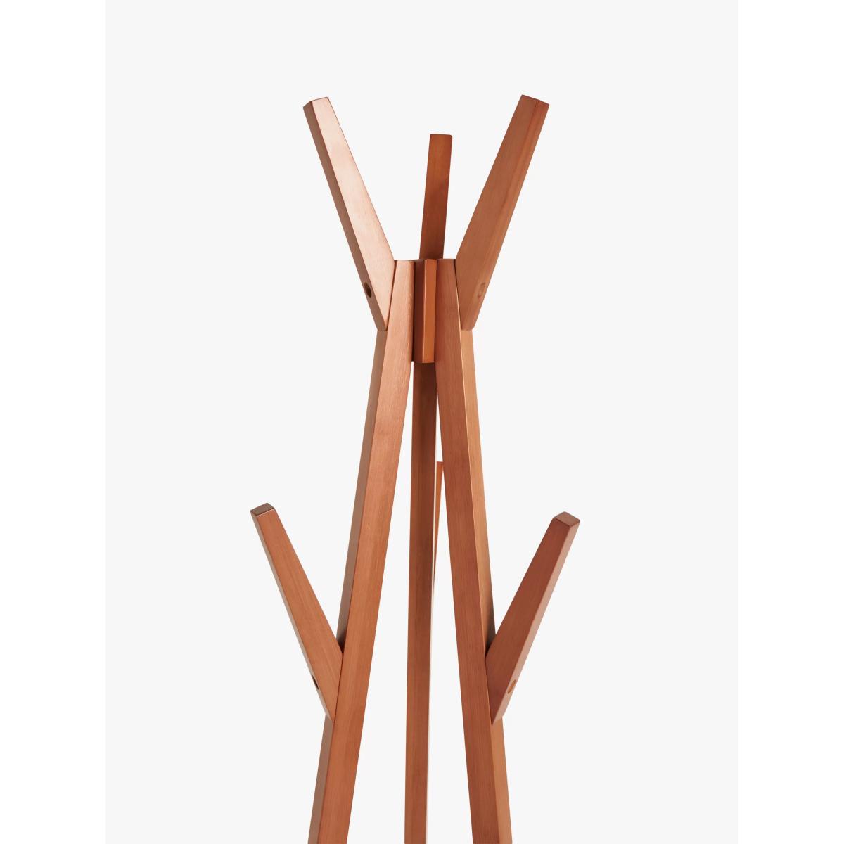 This light cherry wood coat stand has attractive rattan detailing on the base and 6 "wigwam" style slanted hanging pegs for all your hats, coats and other accessories.