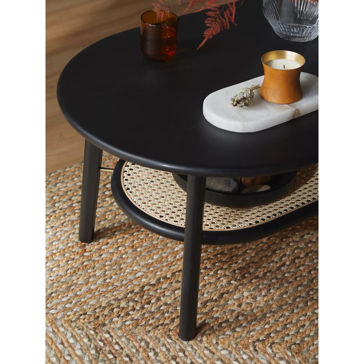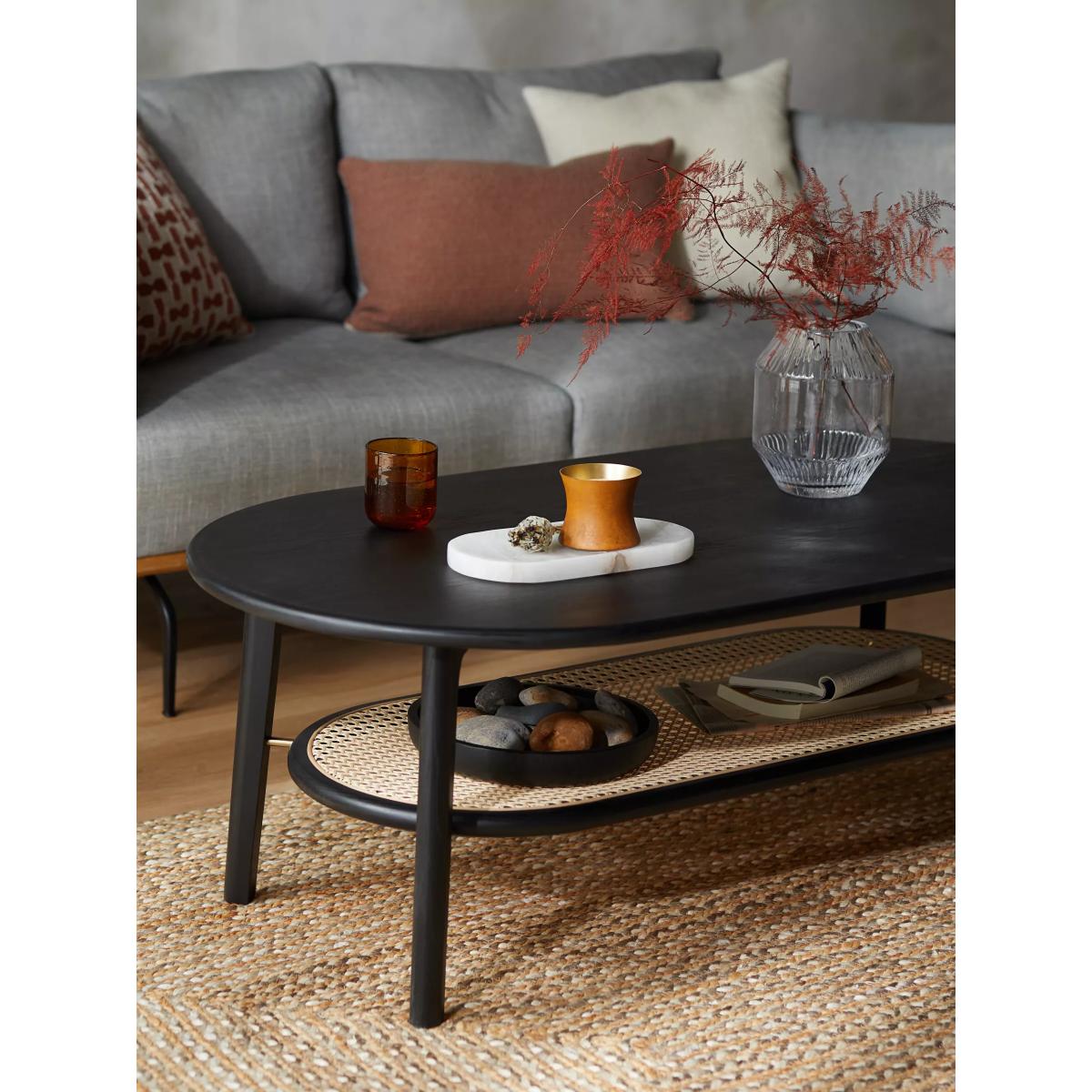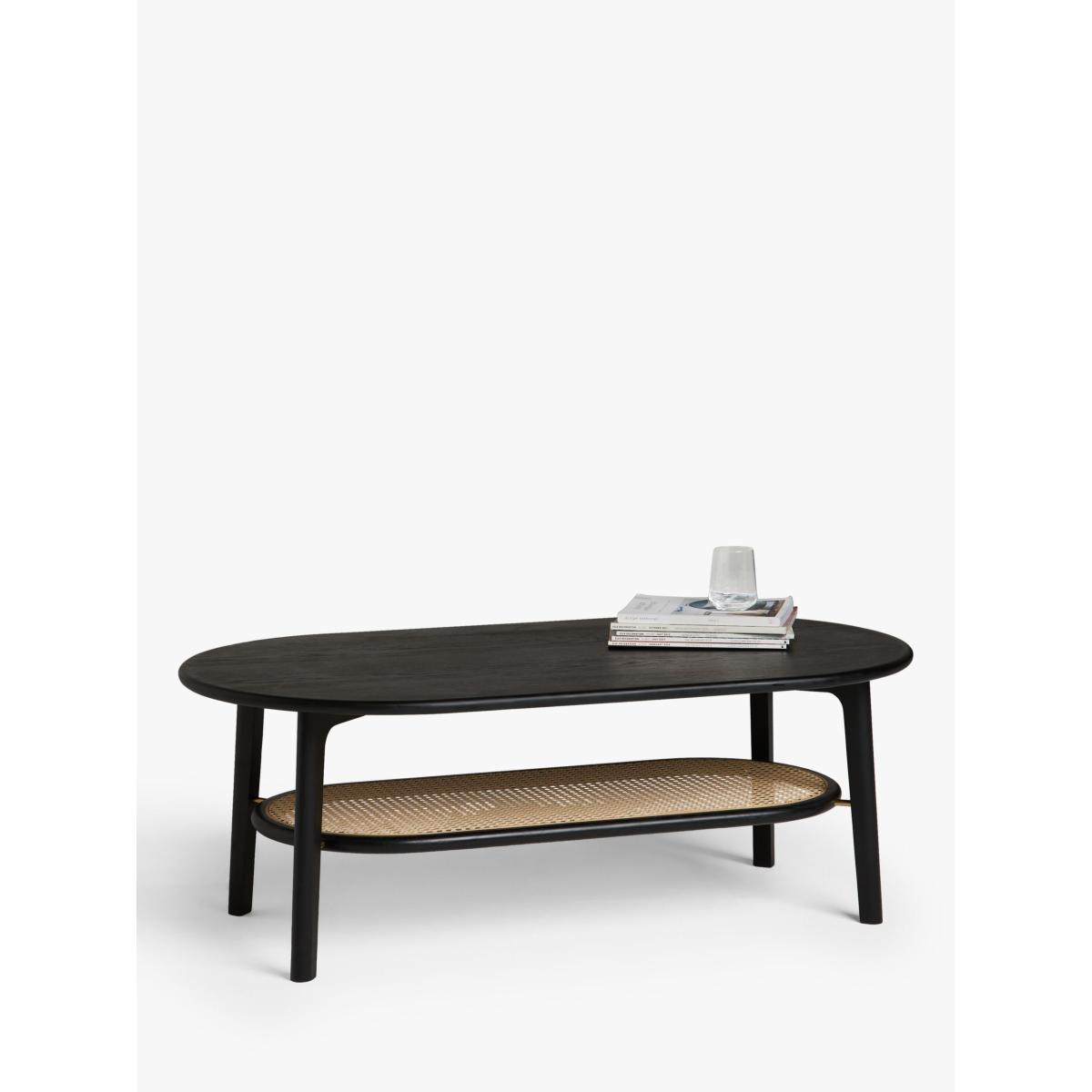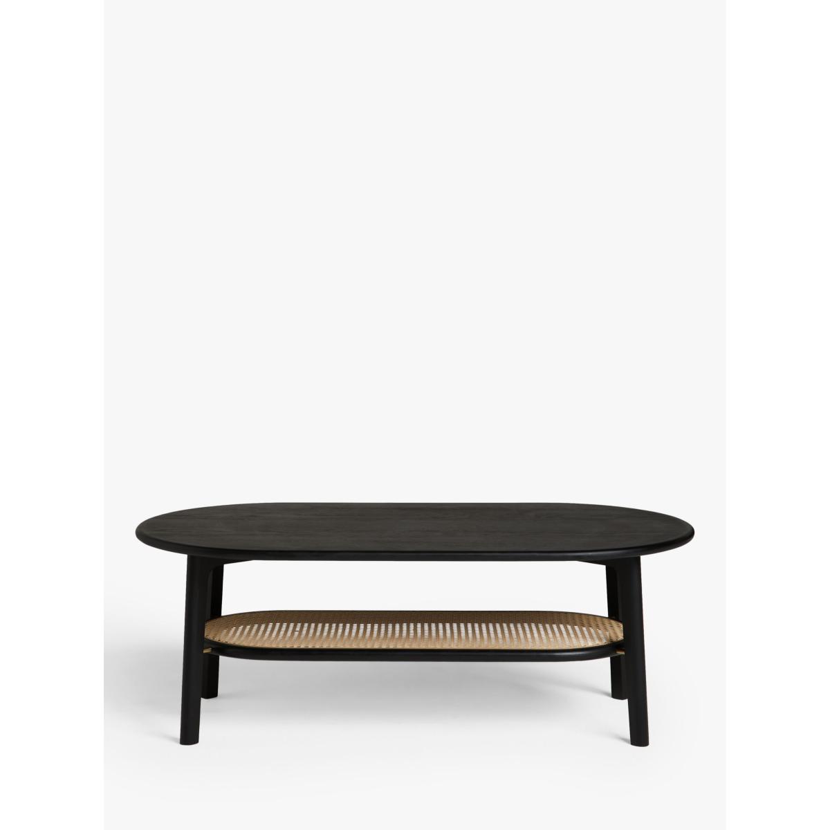 The soft, sculptural form of this oval coffee table will help to transform your living room into a space that feels contemporary, yet calm. It's made from solid oak with MDF for support, and the addition of a low shelf made from natural rattan gives the design a warm, tactile and airy finish. We love its curved shape and painted finish which will make it a statement in the centre of your space, and it's coated in a protective lacquer for durability. Perfect for achieving a Scandi-style aesthetic at home. Want to see it first? You may want to see and get a feel for the furniture in one of our shops before ordering. We'll be able to tell you where the range you'd like to view is on display.