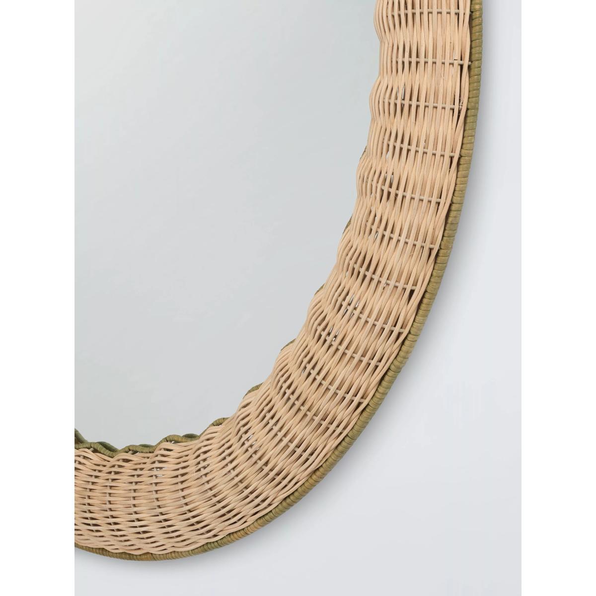 John Lewis Rattan Ripple Round Wall Mirror, 70cm, Natural/Green