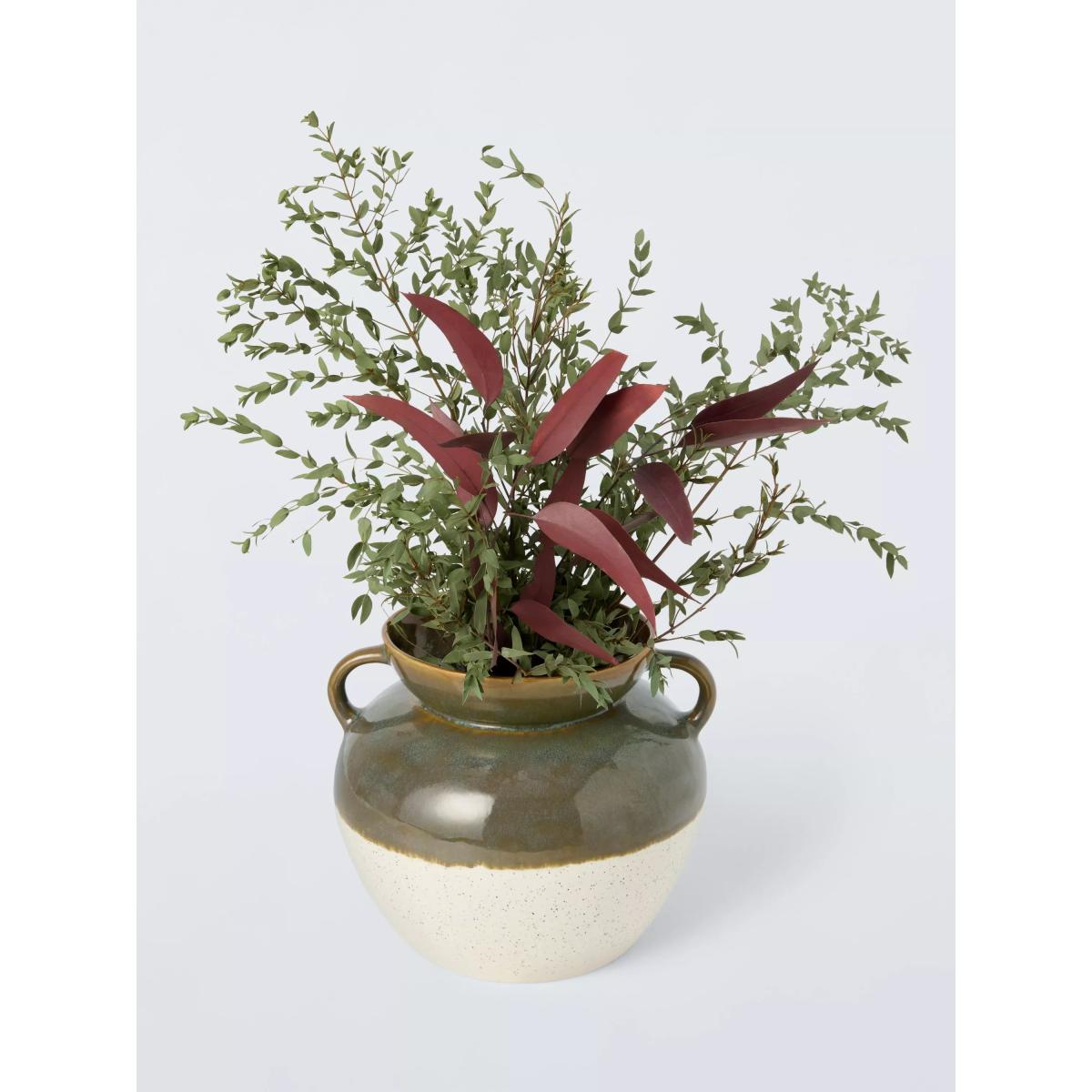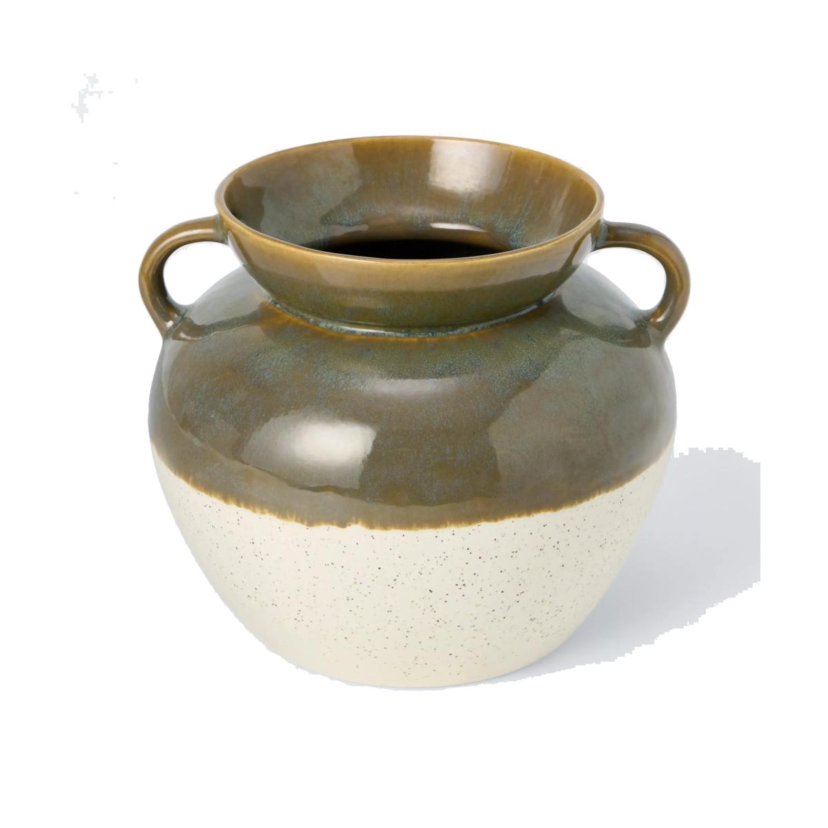 I love this vase for its versatile and earthy colour palette, which makes it a timeless piece that works well in both contemporary and rustic interiors. The green and white glaze adds depth and interest without overpowering a space, making it suitable for shelves, sideboards or as a centrepiece on a dining table. For styling, consider adding fresh or dried flowers for a seasonal touch, or leaving it empty as a sculptural accent. Its practical handles also make it easy to move and position, making it a handy option for bringing some natural texture into a variety of rooms.