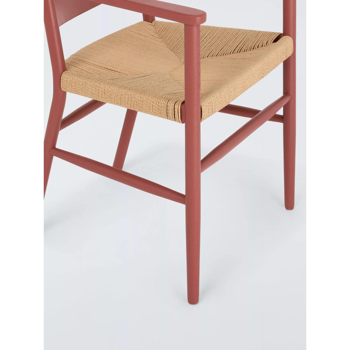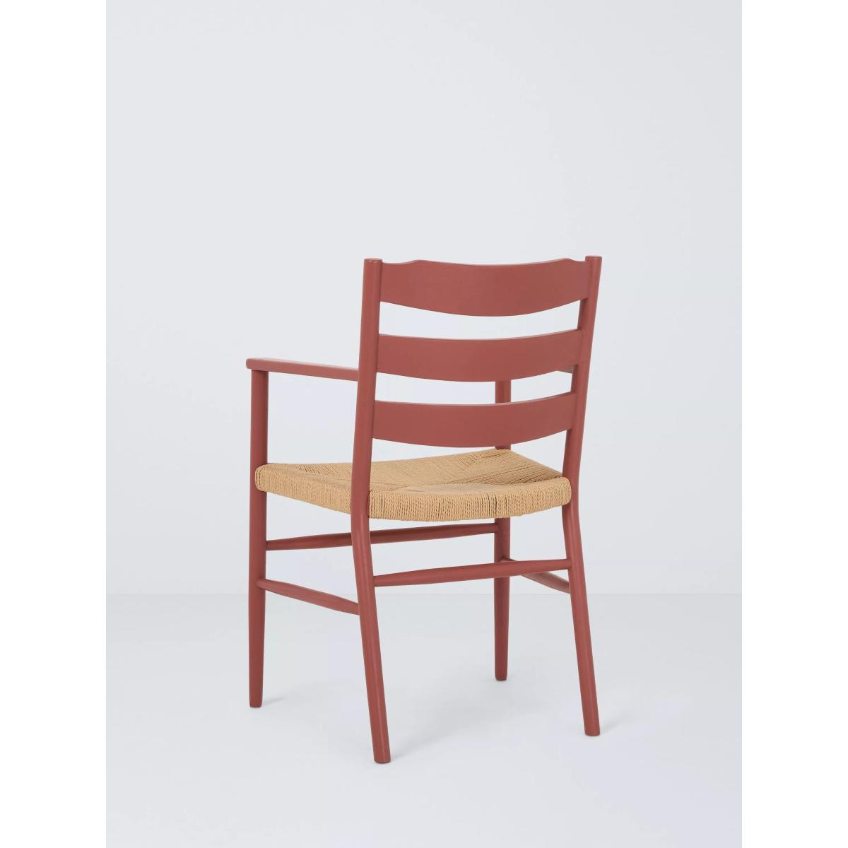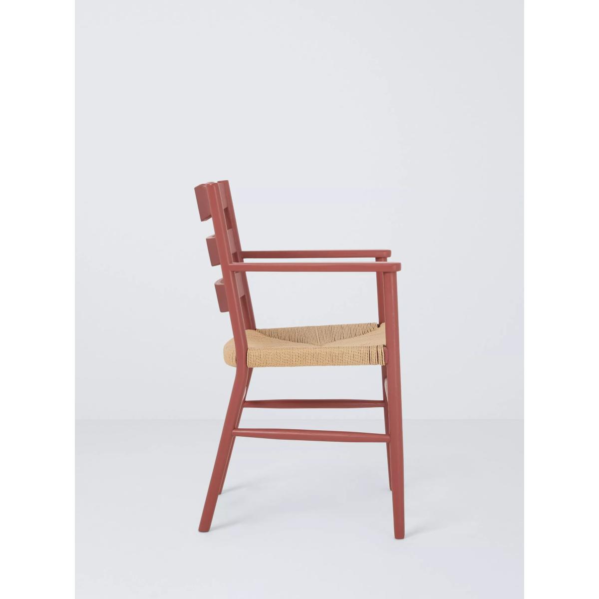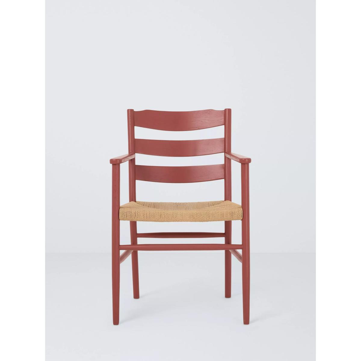 I love this dining armchair for its slim frame and woven seat - it brings texture and warmth without overwhelming the space. The muted terracotta finish works beautifully in Scandi-inspired, modern farmhouse or Mediterranean-style interiors, adding a subtle pop of colour to a neutral palette. Styling tip: pair it with a light oak or whitewashed table and layer on a natural-fibre cushion or small linen throw for extra comfort. Accent with woven placemats and terracotta or earthenware vases to echo the chair’s tone, or use one at each end of the table for a considered, balanced look.