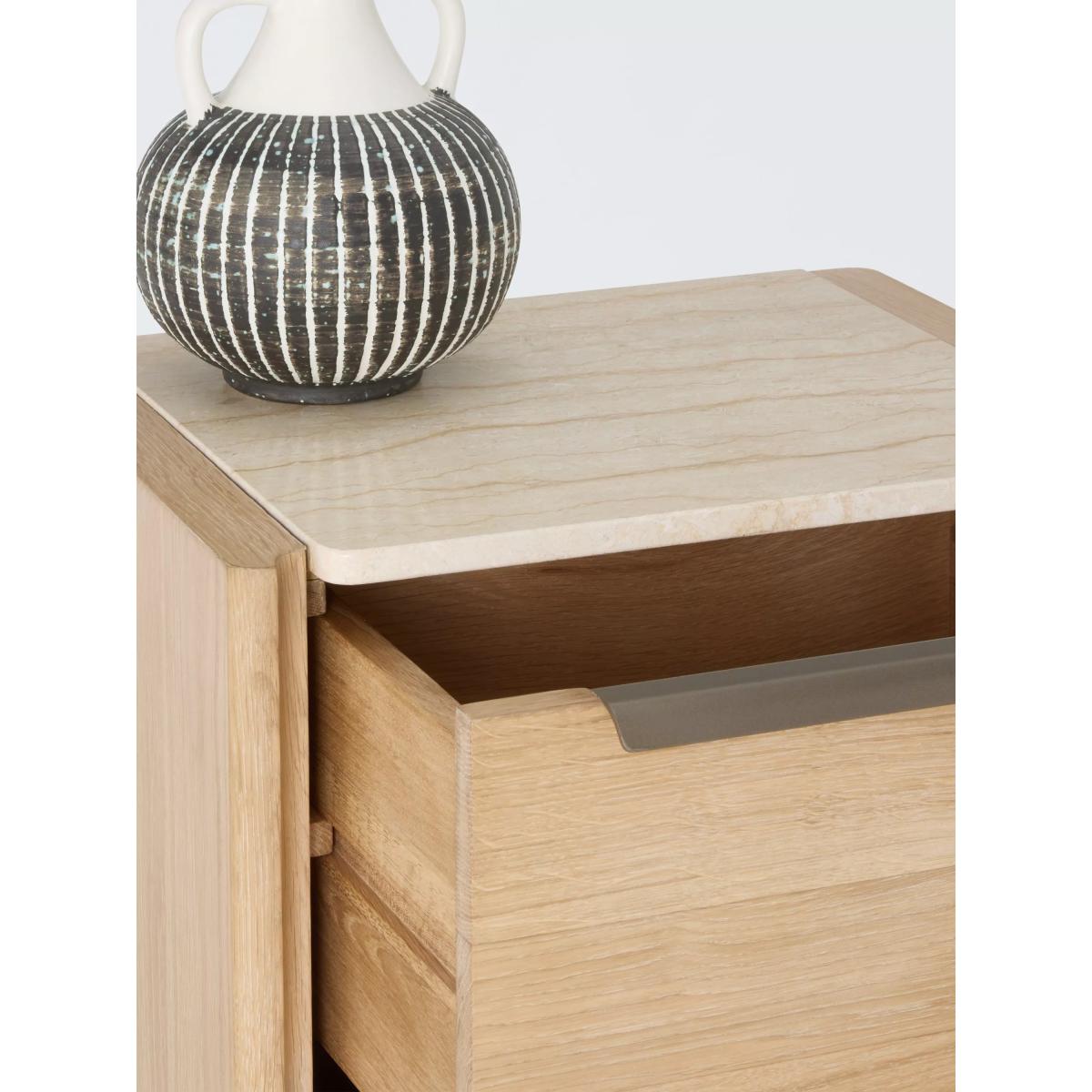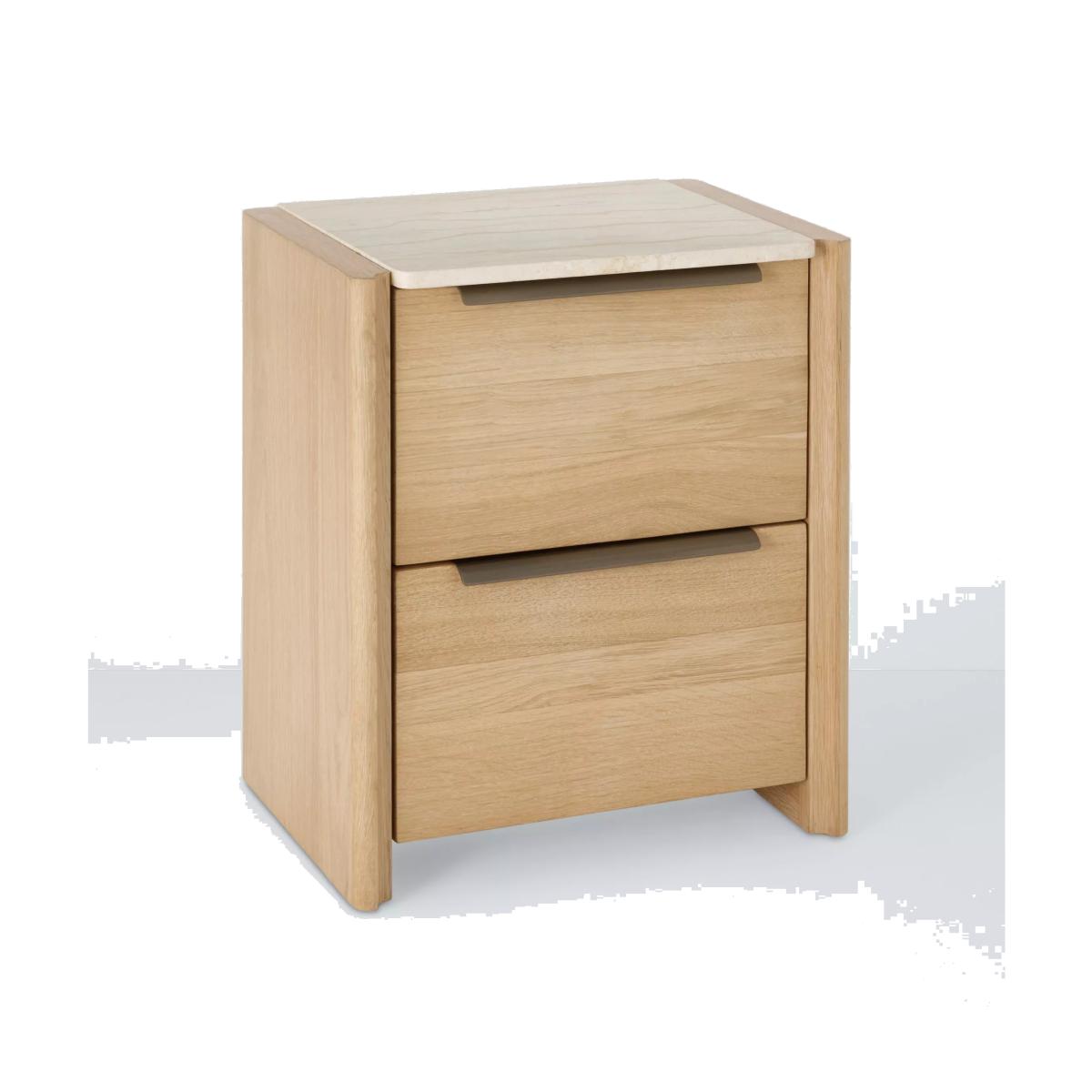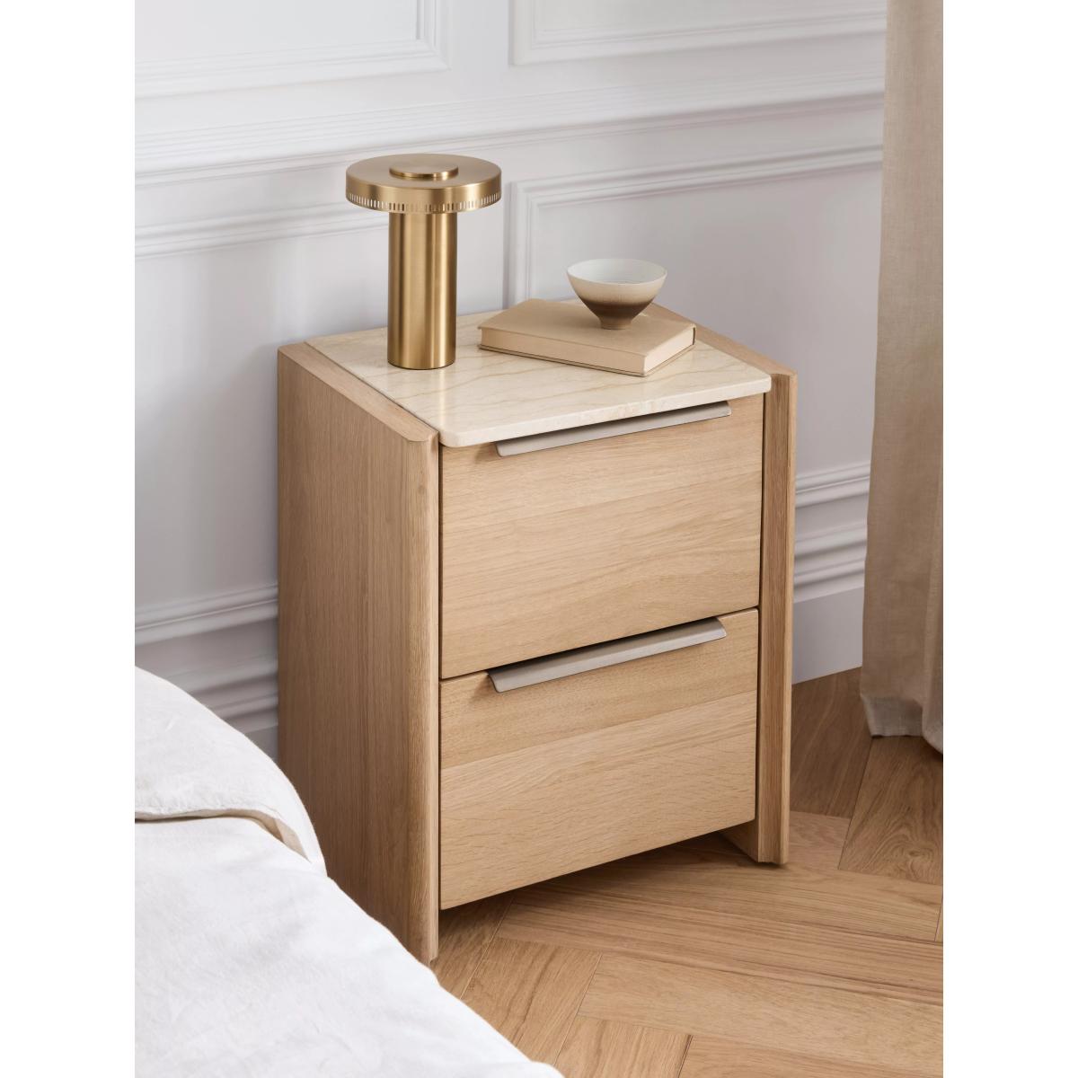We've built this bedside table with solid oak drawers and a luxe, natural marble top. Part of our Rest range, it has two deep drawers and a sculpted frame that maximises storage space, all while showcasing refined craftsmanship. See me in-store It's a good idea to get a feel for new furniture before you make a purchase.