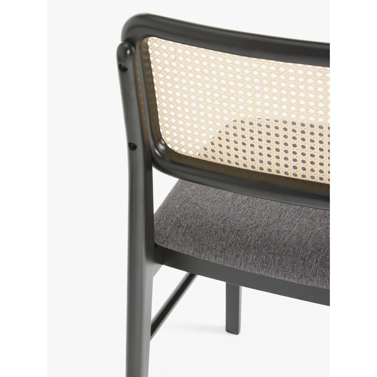 Bring the rattan resurgence to your dining table with our Rhys chair. The grid-like natural rattan cane backrest of this chair creates an airy feel and an attractive seating solution. The chair is made in Italy by a family-run manufacturer that specialises in quality woodwork. The natural beech wood frame is lightweight and impressively sturdy, with a lacquered finish to protect the wood. The foam-filled fabric seat provides comfortable support so you can happily sit at the table for three courses and beyond. Want to see it first? You may want to see and get a feel for the furniture in one of our shops before ordering. We'll be able to tell you where the range you'd like to view is on display.