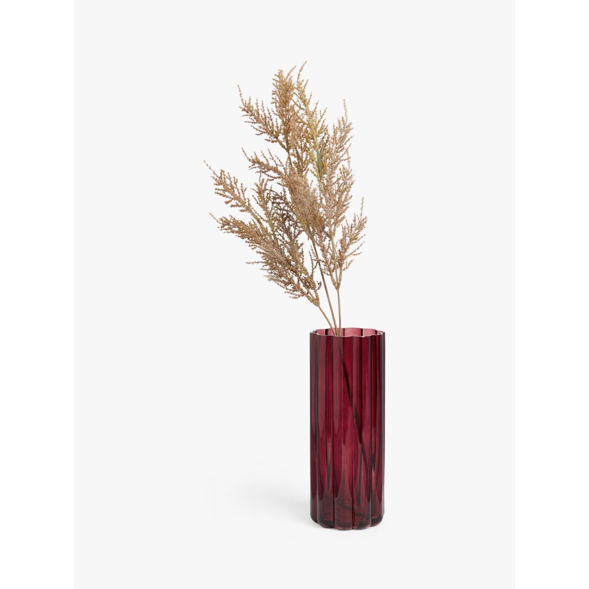 John Lewis Ripple Glass Vase, H26cm, Damson