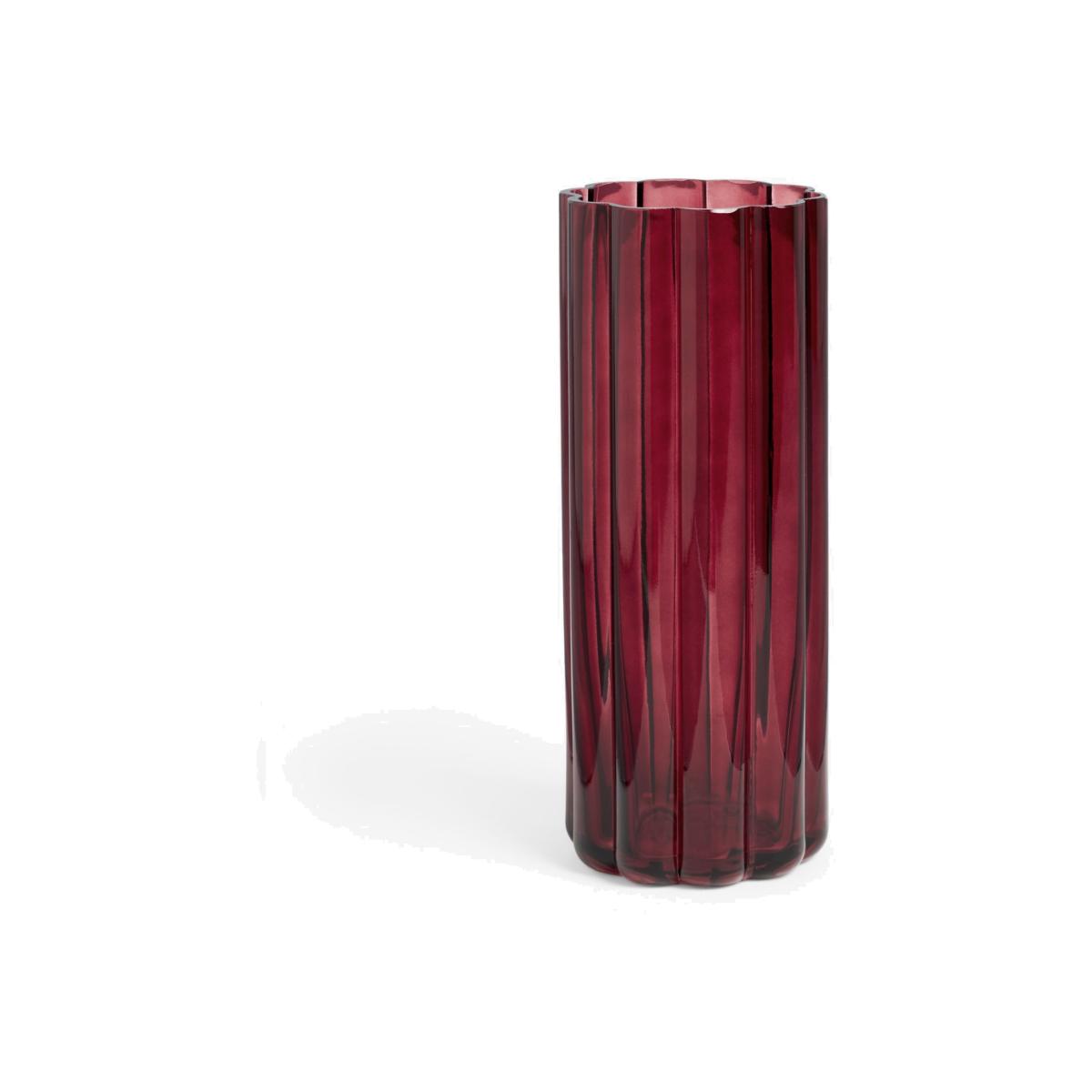 Elegantly cut vase with rippled sides. Column-shaped with a rich colour tint to the glass.