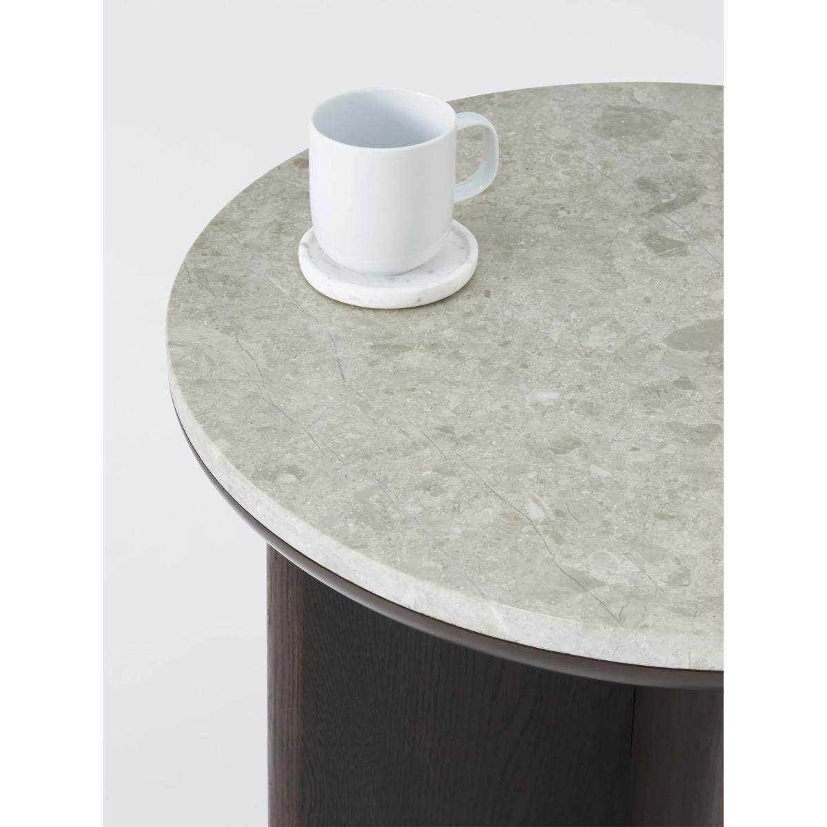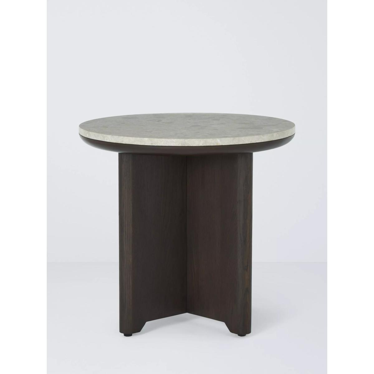 I really like the John Lewis Ritz Side Table for its versatile design and neutral colour palette. Its combination of a light stone top and dark legs makes it an adaptable piece that can work well in both contemporary and more traditional interiors. It's perfect for adding a touch of sophistication next to a sofa or bed, providing a practical surface without overwhelming a space. When styling, consider layering with a small lamp, a book, or a decorative object to keep the look curated yet functional. Its compact size makes it ideal for smaller rooms or corner spaces, and it can be effortlessly incorporated into schemes that feature natural textures or industrial accents.