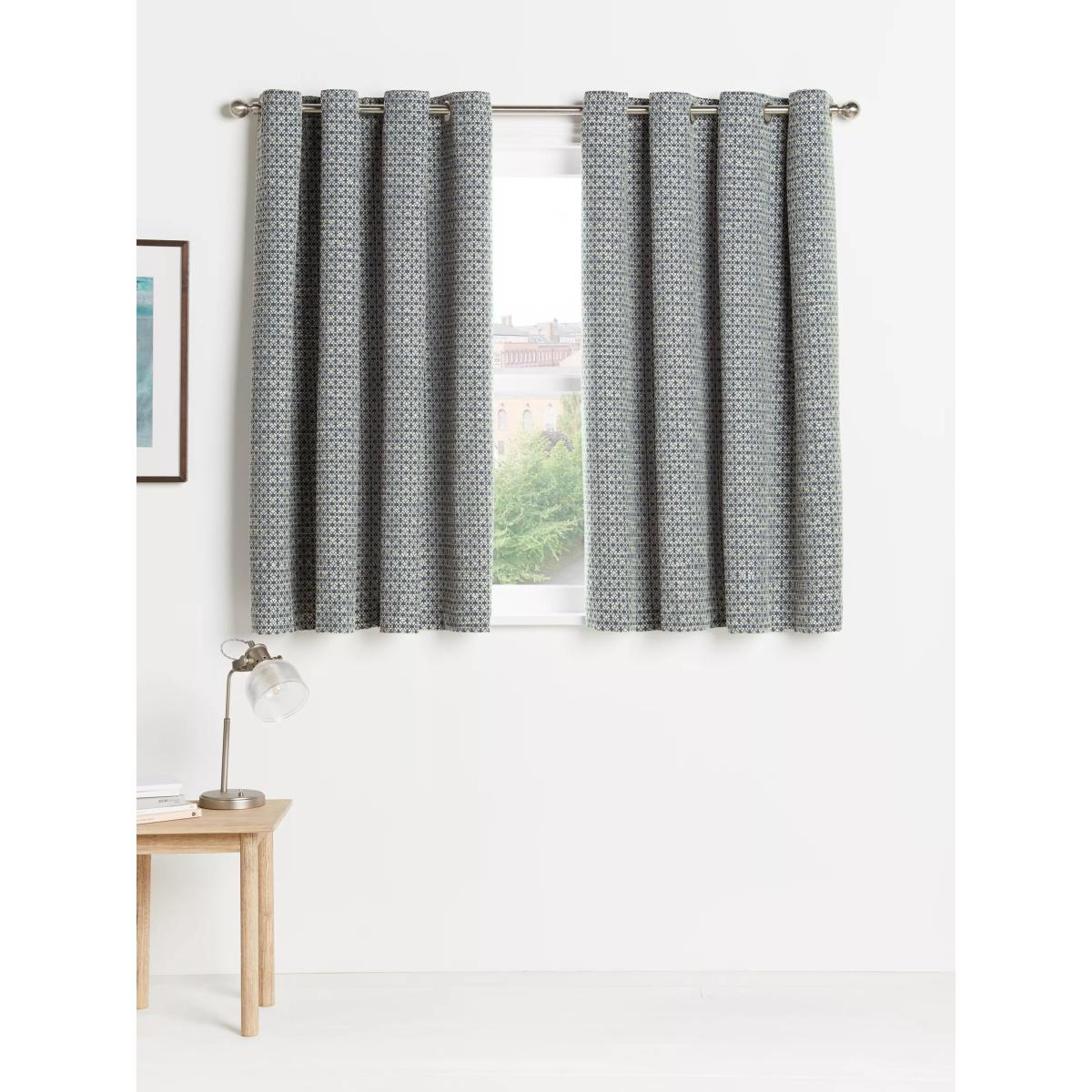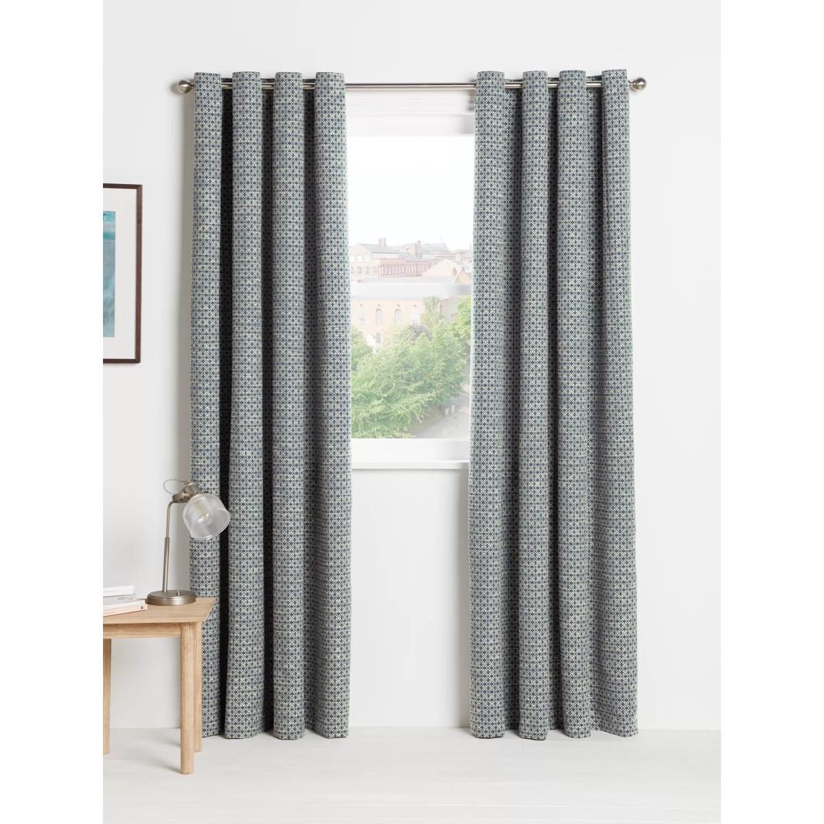 With a subtle textured geometric pattern and eyelet heading our Rona curtains have a contemporary look. The lining adds the perfect finish, improving the drape and enhancing the vibrancy of the pattern. The width stated indicates the size of one curtain panel when laid completely flat. This pack contains two panels, and the track/pole length we've recommended allows for the two panels to be gathered when the curtains are drawn. For a fuller look, increase the curtain width. One pair of 167cm width curtains will fit a curtain track/pole size of 167-223cm One pair of 228cm width curtains will fit a curtain track/pole size 228-304cm Worth knowing... We package our curtains in recycled materials to keep them protected whilst they make their way to you. This means that when they arrive there could be some creases in them. We recommend you hang them for a few days to allow them to flatten and for the creases to fall out. If after this period your curtains still show signs of being folded then follow the ironing instructions on the back of the packaging. Be aware that each style of curtain has different ironing instructions, including heat limitations according to the fabric, so do make sure you follow the guidance provided to get the best results. Do you need a curtain pole/track and accessories? Shop them here.