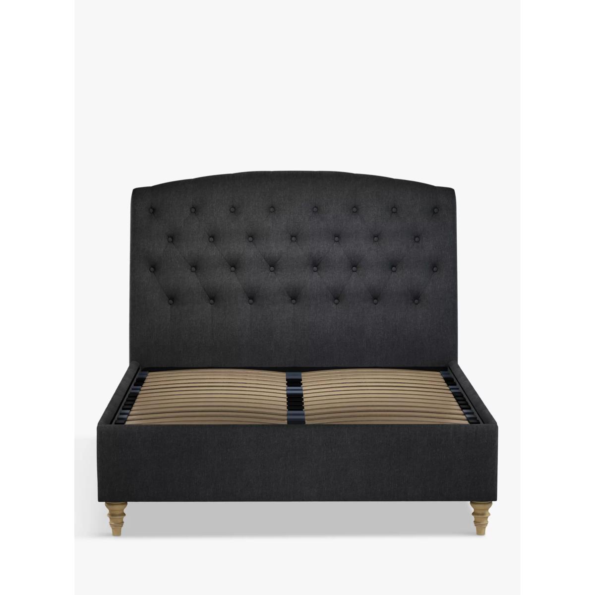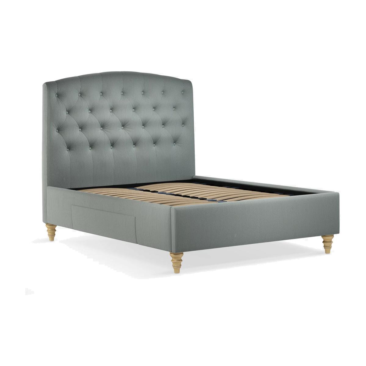 Our Rouen storage bed frame has a classic design that's enhanced with button detailing across the headboard. There's a soft-close drawer on either side of the frame that's brilliant for storing spare linens. Sprung slats provide additional support for you and your mattress. Built with Smart Slats This bed frame is designed with wider slats at the shoulders, lumbar and feet. They provide maximum support for you and your mattress so that you experience perfect spinal alignment while you sleep. The standard slat caps are black so we have added grey slat caps to ensure that you know where to place the wider slats. Choose from one of our fabrics: Our Band A fabric, Cotton Effect has a laid-back and fine-textured look that looks like cotton, but it's made from durable polyester fibres Our Band A fabric, Brushed Tweed is made with a brushed herringbone weave that has a cosy wool look and soft 'peach skin' feel. It's really hard-wearing and a brilliant all-rounder Our Band B fabric, Soft Touch Chenille is made from a blend of fibres that give it a super-soft feel and added durability Our Band B fabric, Deep Velvet will bring warmth and luxury to your bedroom. It's a short pile velvet with a soft, plush feel Our Band B fabric, Mole is a soft and cosy woven wool-blend. Piling and bobbling may occur naturally over time Our Band B fabric, Relaxed Linen gives you the fine texture of cotton, the durability of synthetic fibres and the laid-back look of linen Our Band C fabric, Aquaclean Velvet will liven up your bedroom. It's plush, available in a range of bold colours and treated with Aquaclean so that it can be wiped clean with just water. A smart choice for families and those with pets Want to see it first? You may want to see and get a feel for the furniture before ordering. Pop into one of our shops to see the full range of colours and fabrics on offer. We'll be able to tell you where the range you'd like to view is on display.