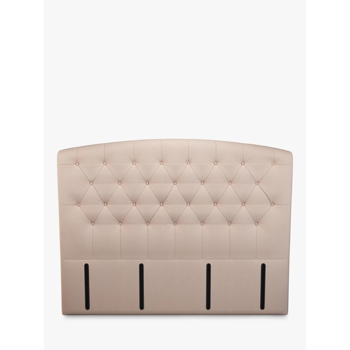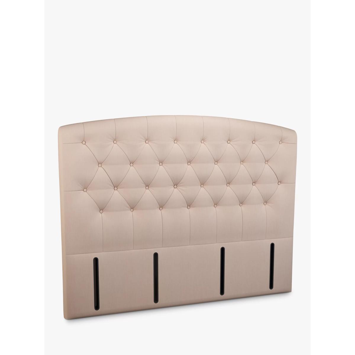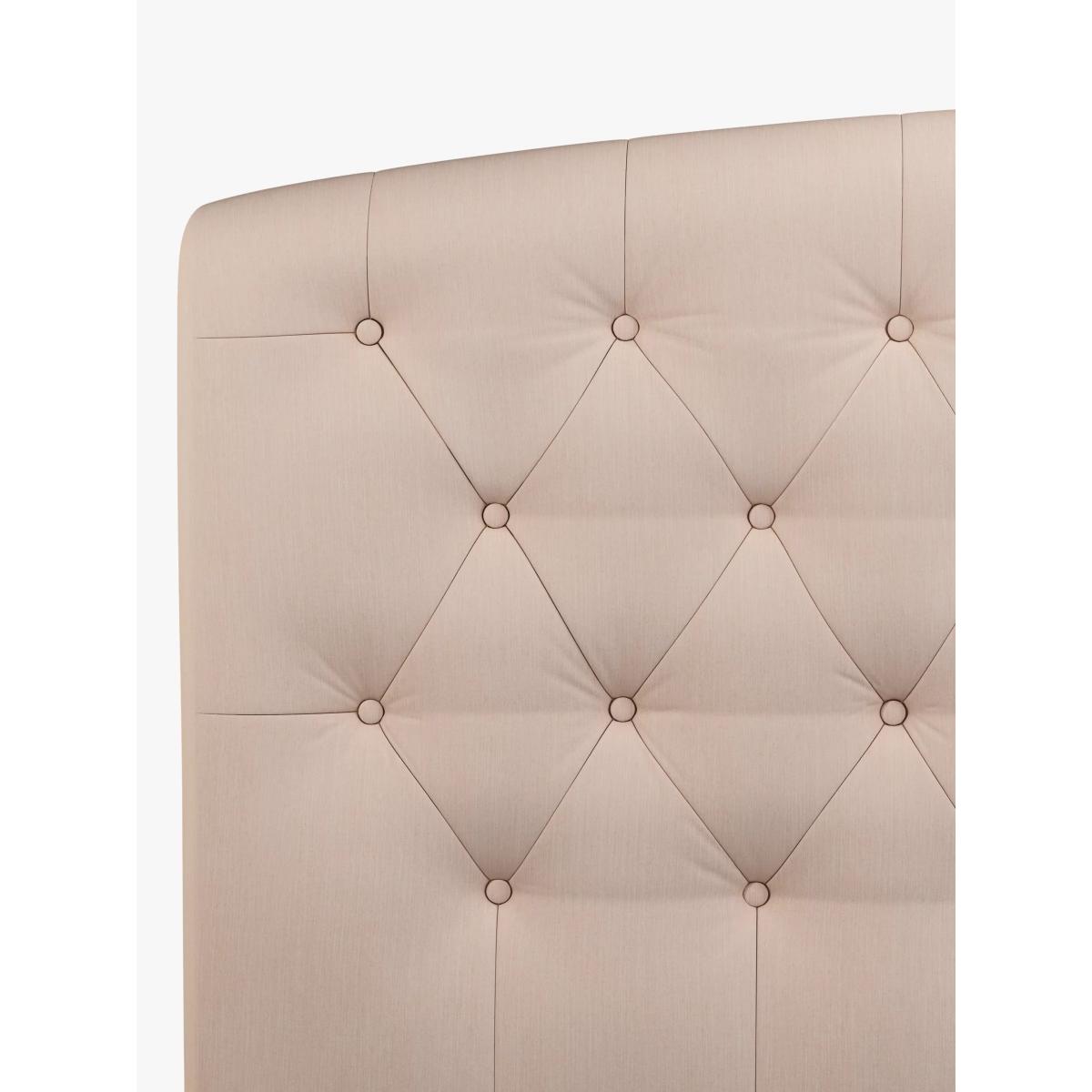 Made in the UK, our Rouen headboard is a stylish and well-padded addition to your upholstered divan base. Button detailing gives it a timeless look and two openings at either side ensure easy attachment. Choose from one of our fabrics: Our Band A fabric, Cotton Effect is woven to create a linen-effect feel Our Band A fabric, Brushed Tweed is woven with man-made fibres, making it exceptionally durable and versatile Our Band B fabric, Soft Touch Chenille has a velvet-style, chenille feel. It's woven with man-made fibres to create a beautifully soft yarn and can appear two-tone in different lights Our Band B fabric, Deep Velvet is soft and luxurious like velvet Our Band B fabric, Mole is a soft and cosy woven wool-blend. Piling and bobbling may occur naturally over time Our Band C fabric, Aquaclean Harriet is made from a short, dense pile of velvet that has a soft, brushed finish. An Aquaclean treatment has been applied to this resilient fabric which means you can banish the majority of household stains with water. The treatment covers every fibre with an invisible coating so it doesn't need to be retreated or re-coated. It will naturally develop lines, scuffs and shading over time. Want to see it first? You may want to see and get a feel for the furniture before ordering. Pop into one of our shops to see the full range of colours and fabrics on offer. We'll be able to tell you where the range you'd like to view is on display.