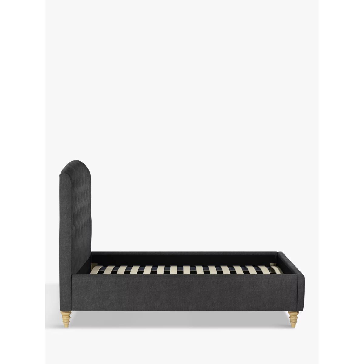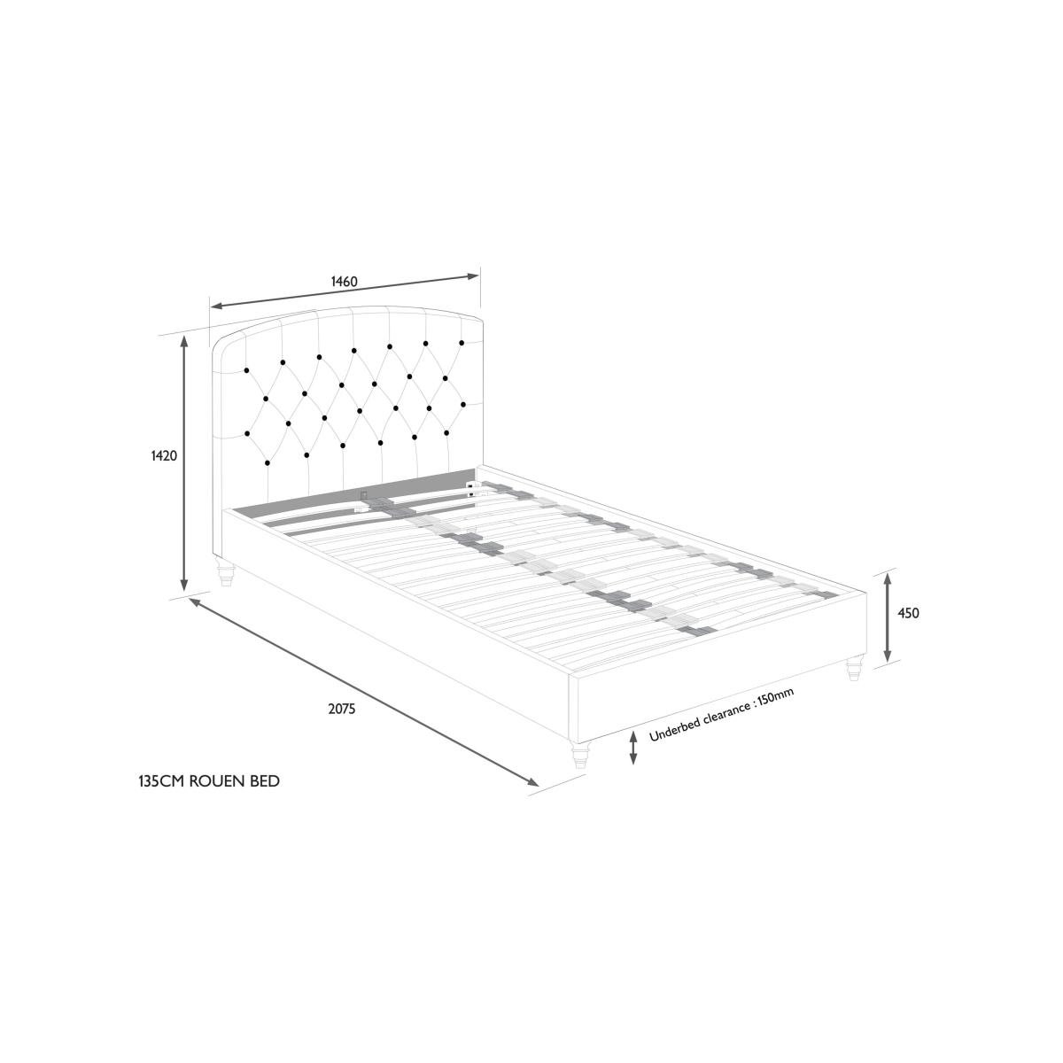 The design of our Rouen bed frame is timeless and sophisticated. We've added button detailing to the headboard and supported the frame with low, twisted legs made from high quality wood. There are also supportive sprung slats in the base. Built with Smart Slats This bed frame is designed with wider slats at the shoulders, lumbar and feet. They provide maximum support for you and your mattress so that you experience perfect spinal alignment while you sleep. The standard slat caps are black so we have added grey slat caps to ensure that you know where to place the wider slats. Choose from one of our fabrics: Our Band A fabric, Cotton Effect has a laid-back and fine-textured look that looks like cotton, but it's made from durable polyester fibres Our Band A fabric, Brushed Tweed is made with a brushed herringbone weave that has a cosy wool look and soft 'peach skin' feel. It's really hard-wearing and a brilliant all-rounder Our Band A fabric, Soft Weave has a casual cotton look with a brushed finish that's soft-to-touch and a suble texture that's created by slight variations in the tones of the woven fibres Our Band B fabric, Deep Velvet will bring warmth and luxury to your bedroom. It's a short pile velvet with a soft, plush feel Our Band B fabric, Soft Touch Chenille is made from a blend of fibres that give it a super-soft feel and added durability Our Band B fabric, Boucle is luxe and oh-so cosy. This plush knitted fabric is super-soft and durable with a thick texture that calls for comfort Our Band B fabric, Deep Velvet will bring warmth and luxury to your bedroom. It's a short pile velvet with a soft, plush feel Our Band B fabric, Mole is a soft and cosy woven wool-blend. Piling and bobbling may occur naturally over time Our Band B fabric, Cord is rich in texture and available in neutral shades that will suit every space. Our Band B fabric, Relaxed Linen gives you the fine texture of cotton, the durability of synthetic fibres and the laid-back look of linen Our Band C fabric, Marylamb is woven from both man-made and natural fibres, creating a tactile and soft-touch feel. Our Band C fabric, Aquaclean Velvet will liven up your bedroom. It's plush, available in a range of bold colours and treated with Aquaclean so that it can be wiped clean with just water. A smart choice for families and those with pets Want to see it first? You may want to see and get a feel for the furniture before ordering. Pop into one of our shops to see the full range of colours and fabrics on offer. We'll be able to tell you where the range you'd like to view is on display.