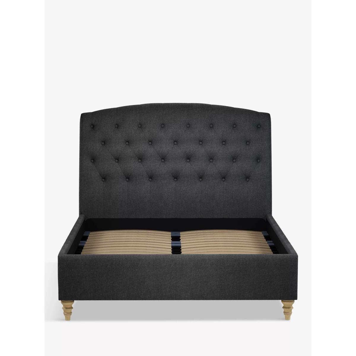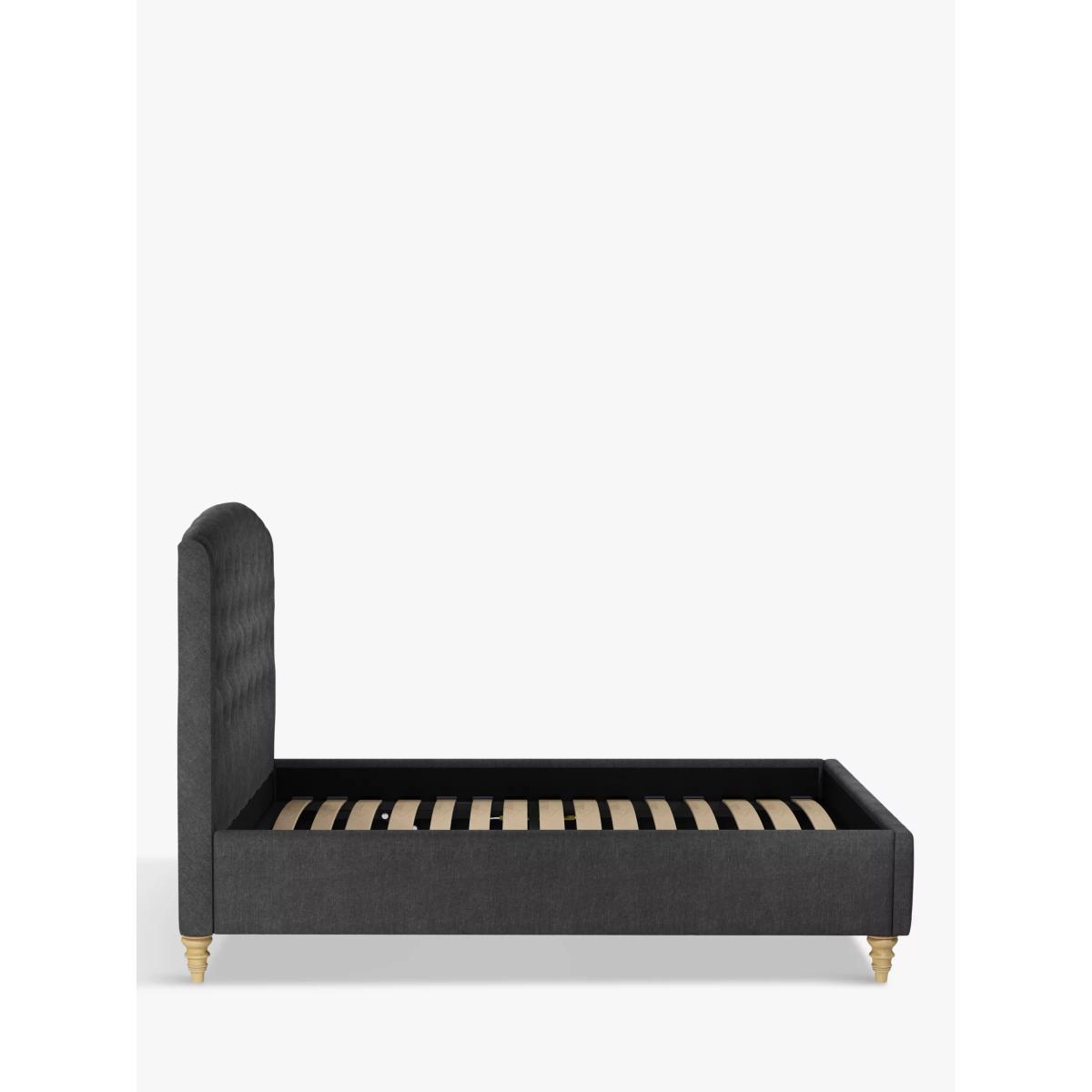 The design of our Rouen bed frame is timeless and sophisticated. We've added button detailing to the headboard and supported the frame with low, twisted legs made from high quality wood. There are also supportive sprung slats in the base. Built with Smart Slats This bed frame is designed with wider slats at the shoulders, lumbar and feet. They provide maximum support for you and your mattress so that you experience perfect spinal alignment while you sleep. The standard slat caps are black so we have added grey slat caps to ensure that you know where to place the wider slats. Choose from one of our fabrics: Our Band A fabric, Cotton Effect has a laid-back and fine-textured look that looks like cotton, but it's made from durable polyester fibres Our Band A fabric, Brushed Tweed is made with a brushed herringbone weave that has a cosy wool look and soft 'peach skin' feel. It's really hard-wearing and a brilliant all-rounder Our Band A fabric, Soft Weave has a casual cotton look with a brushed finish that's soft-to-touch and a suble texture that's created by slight variations in the tones of the woven fibres Our Band B fabric, Deep Velvet will bring warmth and luxury to your bedroom. It's a short pile velvet with a soft, plush feel Our Band B fabric, Soft Touch Chenille is made from a blend of fibres that give it a super-soft feel and added durability Our Band B fabric, Boucle is luxe and oh-so cosy. This plush knitted fabric is super-soft and durable with a thick texture that calls for comfort Our Band B fabric, Deep Velvet will bring warmth and luxury to your bedroom. It's a short pile velvet with a soft, plush feel Our Band B fabric, Mole is a soft and cosy woven wool-blend. Piling and bobbling may occur naturally over time Our Band B fabric, Cord is rich in texture and available in neutral shades that will suit every space. Our Band B fabric, Relaxed Linen gives you the fine texture of cotton, the durability of synthetic fibres and the laid-back look of linen Our Band C fabric, Marylamb is woven from both man-made and natural fibres, creating a tactile and soft-touch feel. Our Band C fabric, Aquaclean Velvet will liven up your bedroom. It's plush, available in a range of bold colours and treated with Aquaclean so that it can be wiped clean with just water. A smart choice for families and those with pets Our Band C fabric, Aquaclean Velvet will liven up your bedroom. It's plush, available in a range of bold colours and treated with Aquaclean so that it can be wiped clean with just water. A smart choice for families and those with pets Want to see it first? You may want to see and get a feel for the furniture before ordering. Pop into one of our shops to see the full range of colours and fabrics on offer. We'll be able to tell you where the range you'd like to view is on display.