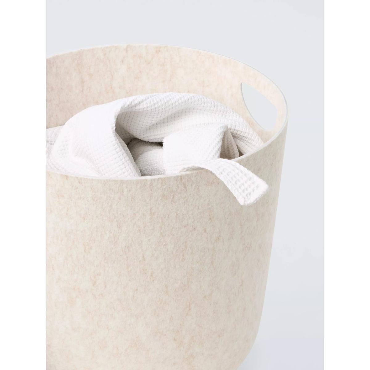 I love this round felt basket for its soft, neutral tone, which makes it incredibly versatile across different interiors. It works particularly well in Scandi, minimalist, or contemporary schemes, adding a cosy touch without overpowering the space. Practical styling tips include using it for storing textiles like throws or cushions in the living room, or as a tidy solution for bathroom essentials. Its understated aesthetic makes it a functional yet decorative piece; I also recommend pairing it with other natural materials or woven elements to create a cohesive, relaxed atmosphere.