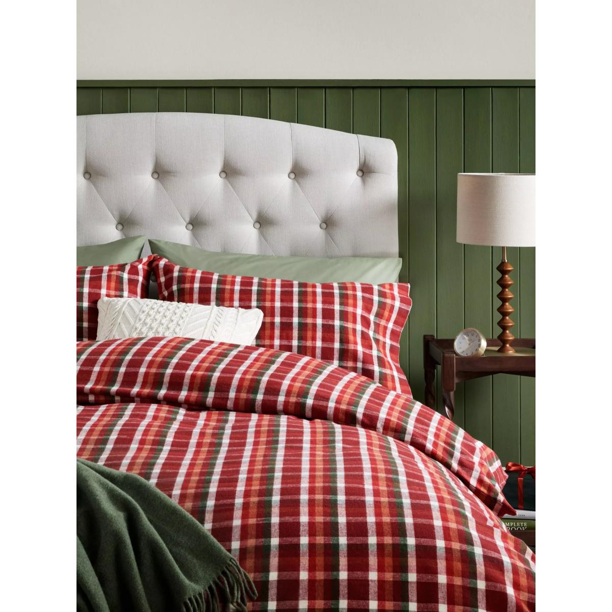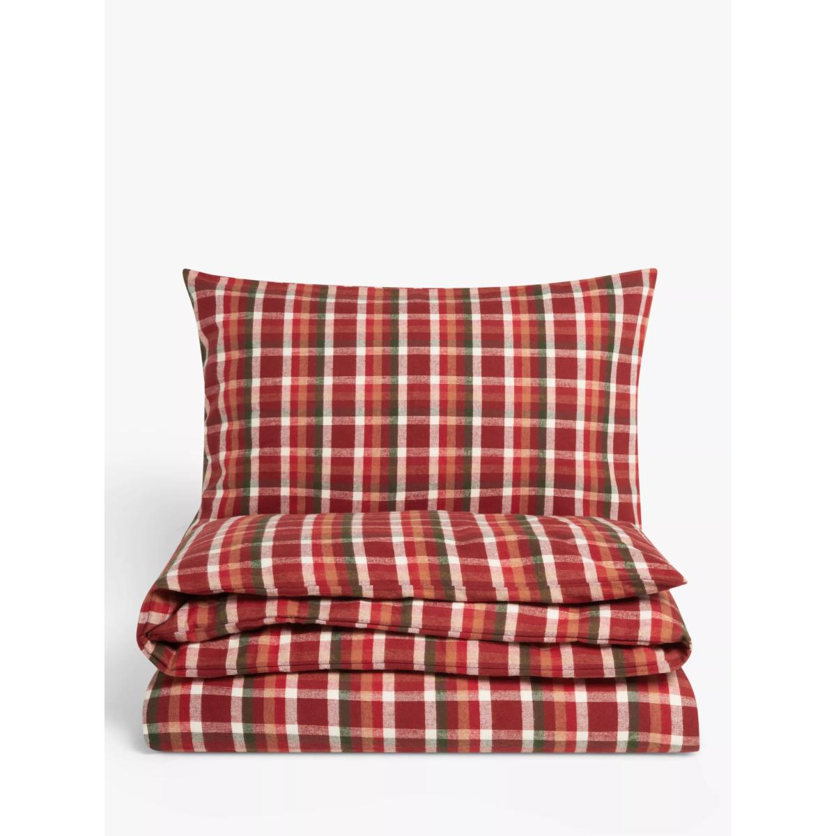 Made from soft, 100% brushed cotton, this bedding features a multi-tonal check design that's perfect for creating a cosy winter bedroom. The single set comes with one standard pillowcase, while the double, king and super king sets come with two standard pillowcases. Bedding sizes To fit duvet/pillow size (cm) Standard pillowcase, L75 x W50cm Single duvet cover, L200 x W135cm Double duvet cover, L200 x W200cm King duvet cover, L220 x W225cm Super king duvet cover, L220 x W260cm Please note: owing to the nature of brushed cotton, some fibre pilling could occur. Normal washing and tumble drying should help to remove these loose fibre pills. Better Cotton By choosing our cotton products, you’re supporting our investment in Better Cotton’s mission to help cotton communities survive and thrive while protecting and restoring the environment. Better Cotton Farmers are farmers who care for the environment and respect workers’ rights and wellbeing. This product is sourced via a system of mass balance and therefore may not contain Better Cotton. bettercotton.org/massbalance