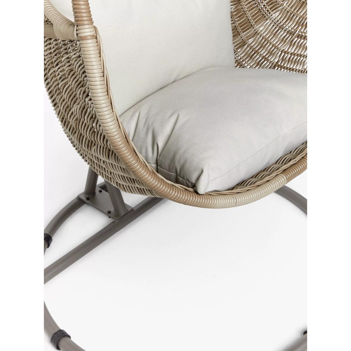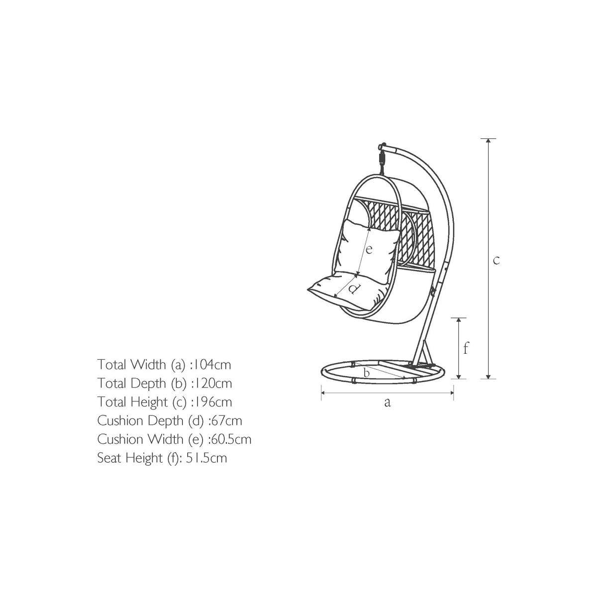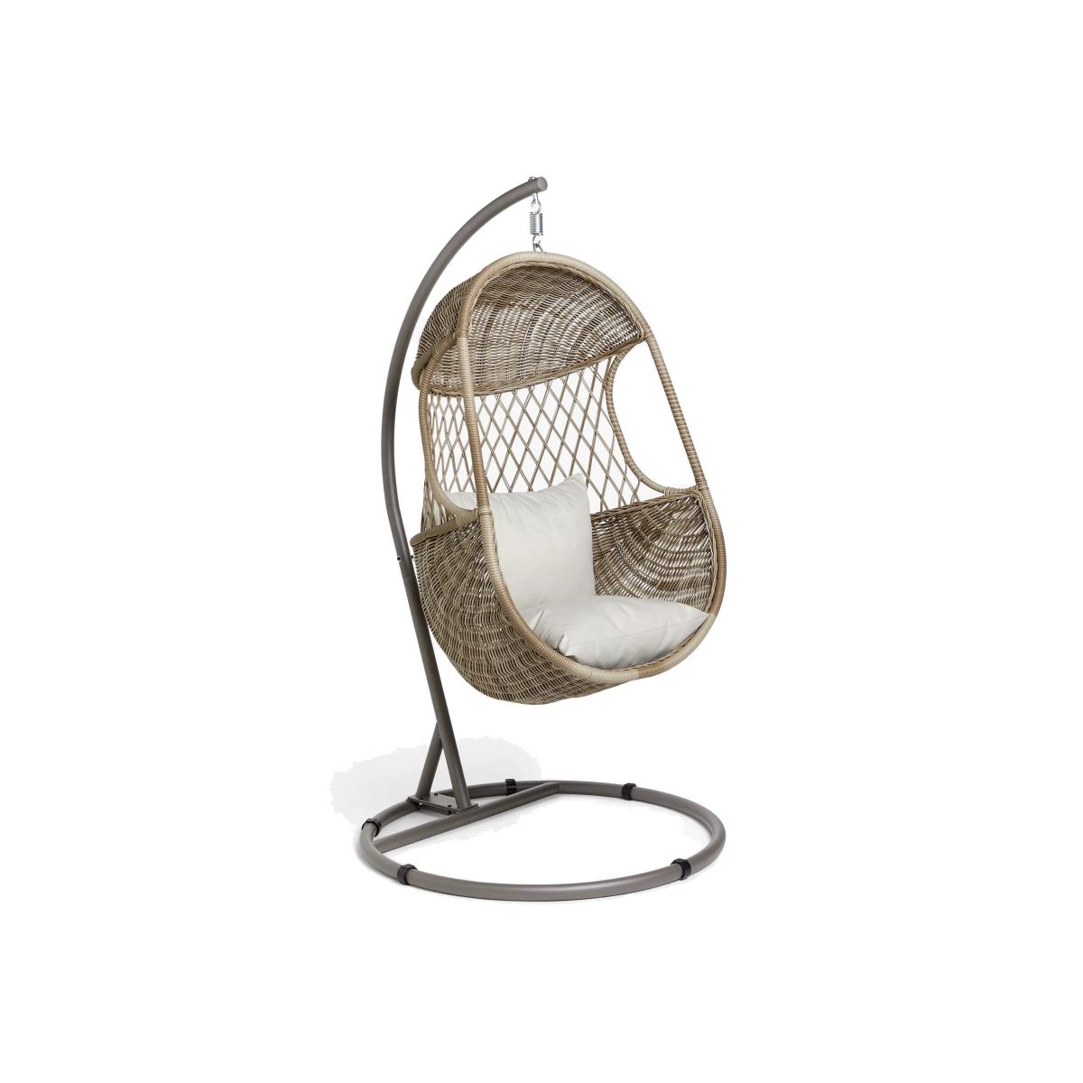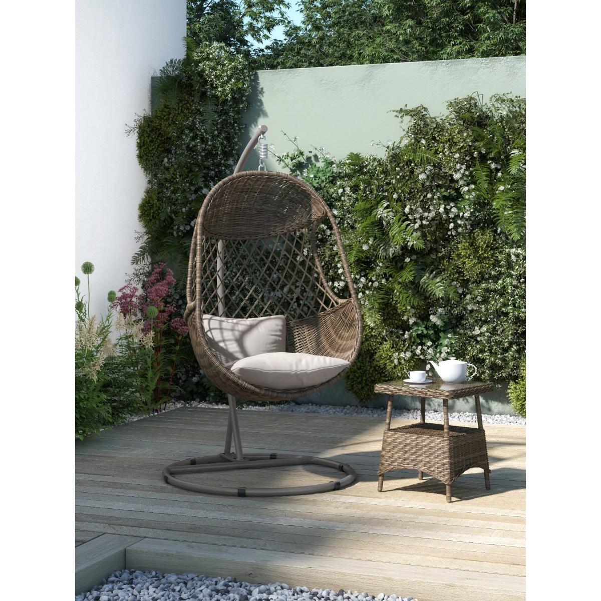 An attractive curved design, our Rye garden furniture has the look and feel of traditional woven garden furniture but with long-lasting quality. The intricate handwoven design takes several days to produce and looks at home in conservatories and outdoor spaces. The 5mm round weave has a natural willow effect. Designed for comfort, Rye seating comes with shower-resistant cushioning. All our handwoven furniture ranges are made from synthetic wicker. This looks like natural wicker but has the advantage of being weatherproof, low maintenance, and resistant to both UV light and tearing. Key features: Garden hanging seat Handwoven, 5mm round synthetic wicker Robust aluminium frame withstands 20 stone, exceeding the industry standard Shower-resistant seat and backrest cushions included Matches garden furniture in our Rye range Rye cushions: We've updated the cushion colour on our Rye range. If you have bought this range previously, the cushion colour was Grey but since January 2024 it's Beige. Garden furniture care: To keep your outdoor furniture in the best condition, store it in a cool, dry, well-ventilated spot indoors over the winter. If it’s staying outside, use an outdoor furniture cover whenever the weather is wet or unseasonal. Make sure furniture is clean and dry before storing it away, and keep cushions in a clean and dry place when not in use. Choose the perfect outdoor furniture We have a vast selection of furniture for you to choose from which will suit the home or garden. The majority of our furniture ranges have been hand woven using a synthetic wicker. The thinner the weave, the longer it takes for the skilled workers to complete. All weave types are durable so they’ll last throughout the seasons All woven outdoor furniture is UV protected so it will not fade in direct sunlight All woven outdoor furniture is easy to maintain, simply wipe clean using warm water FlatA weave of various widths which offers incredible value for money Half roundMore detailed with a 3D effect, the half round is a round weave in half which displays a wicker appearance on the top and hollowed underside Double half roundA double strand of half round, this is a wider width of weave which achieves an expensive appearanceRound weaveA very tight weave which is available in various widths, from 2mm to 5mm RopeA selection of our ranges have been made using rope. The yarn is made up of 10,000 (approx) woven strands with a double core for extreme strength, does not attract mould even if wet for a long time and is UV resistant.