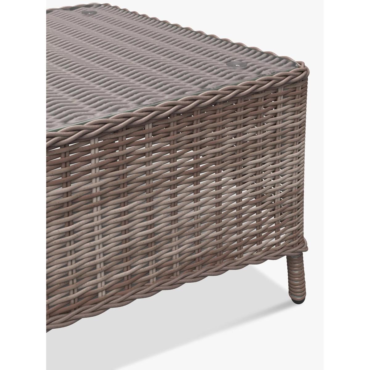 An attractive curved design, our Rye garden furniture has the look and feel of traditional woven garden furniture but with long-lasting quality. The intricate handwoven design takes several days to produce and looks at home in conservatories and outdoor spaces. The 5mm round weave has a natural willow effect. All our handwoven furniture ranges are made from synthetic wicker. This looks like natural wicker but has the advantage of being weatherproof, low maintenance, and resistant to both UV light and tearing. Key features: Rectangular garden coffee table Handwoven, 5mm round synthetic wicker Robust aluminium frame Glass top tempered for strength Matches garden furniture in our Rye range Garden furniture care: To keep your outdoor furniture in the best condition, store it in a cool, dry, well-ventilated spot indoors over the winter. If it's staying outside, use an outdoor furniture cover whenever the weather is wet or unseasonal. Make sure furniture is clean and dry before storing it away. Choose the perfect outdoor furniture We have a vast selection of furniture for you to choose from which will suit the home or garden. The majority of our furniture ranges have been hand woven using a synthetic wicker. The thinner the weave, the longer it takes for the skilled workers to complete. All weave types are durable so they’ll last throughout the seasons All woven outdoor furniture is UV protected so it will not fade in direct sunlight All woven outdoor furniture is easy to maintain, simply wipe clean using warm water FlatA weave of various widths which offers incredible value for money Half roundMore detailed with a 3D effect, the half round is a round weave in half which displays a wicker appearance on the top and hollowed underside Double half roundA double strand of half round, this is a wider width of weave which achieves an expensive appearanceRound weaveA very tight weave which is available in various widths, from 2mm to 5mm RopeA selection of our ranges have been made using rope. The yarn is made up of 10,000 (approx) woven strands with a double core for extreme strength, does not attract mould even if wet for a long time and is UV resistant.