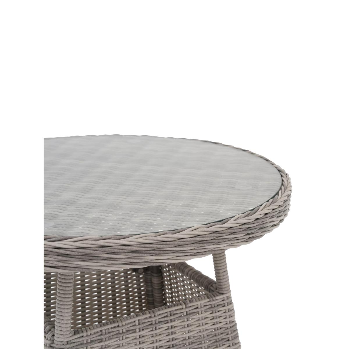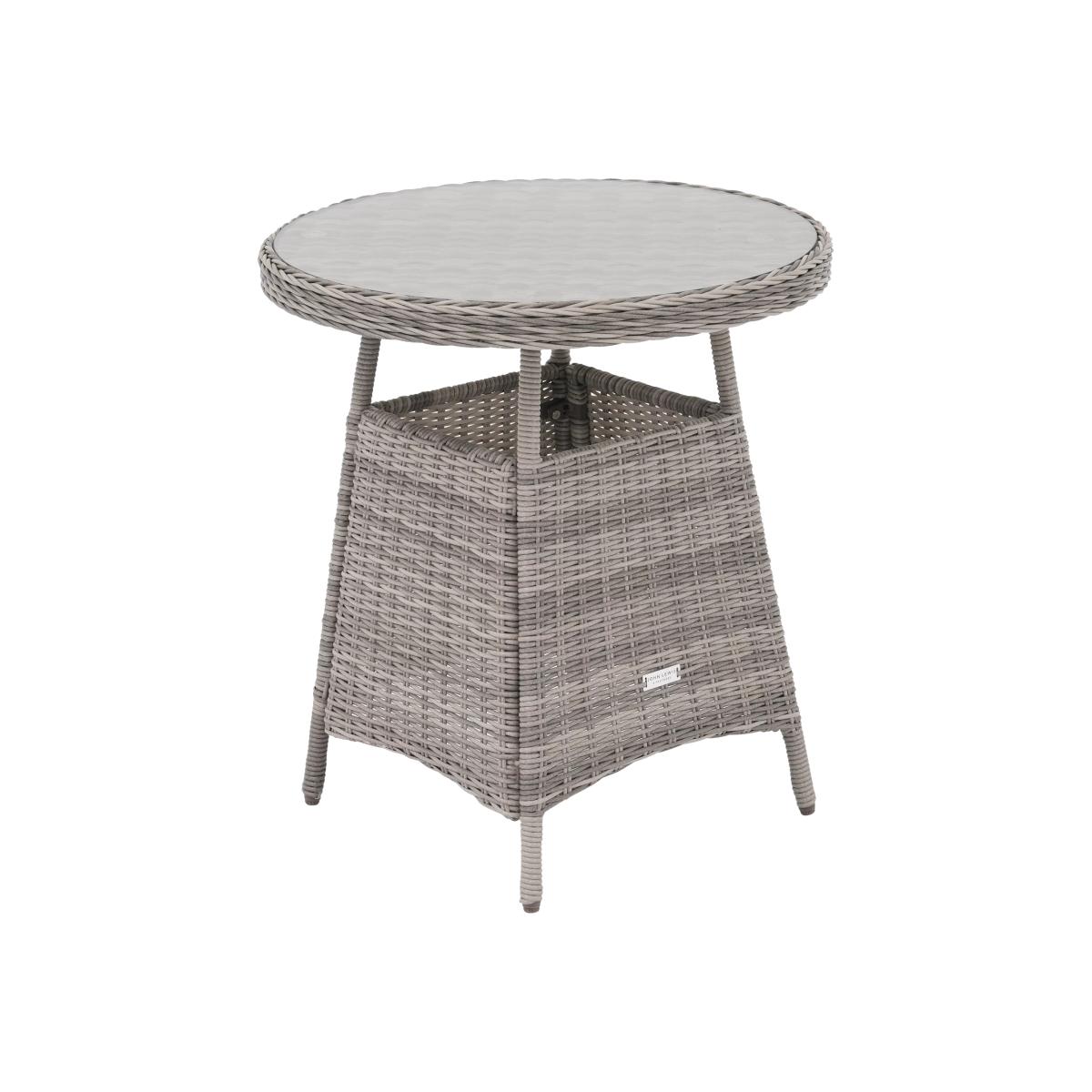 An attractive curved design, our Rye garden furniture has the look and feel of traditional woven garden furniture but with long-lasting quality. The intricate handwoven design takes several days to produce and looks at home in conservatories and outdoor spaces. The 5mm round weave has a natural willow effect. All our handwoven furniture ranges are made from synthetic wicker. This looks like natural wicker but has the advantage of being weatherproof, low maintenance, and resistant to both UV light and tearing. Key features: Round 70cm garden bistro table with room for two Handwoven, 5mm round synthetic wicker Robust aluminium frame Tinted glass top tempered for strength Matches garden furniture in our Rye range Garden furniture care: To keep your outdoor furniture in the best condition, store it in a cool, dry, well-ventilated spot indoors over the winter. If it's staying outside, use an outdoor furniture cover whenever the weather is wet or unseasonal. Make sure furniture is clean and dry before storing it away. Choose the perfect outdoor furniture We have a vast selection of furniture for you to choose from which will suit the home or garden. The majority of our furniture ranges have been hand woven using a synthetic wicker. The thinner the weave, the longer it takes for the skilled workers to complete. All weave types are durable so they’ll last throughout the seasons All woven outdoor furniture is UV protected so it will not fade in direct sunlight All woven outdoor furniture is easy to maintain, simply wipe clean using warm water FlatA weave of various widths which offers incredible value for money Half roundMore detailed with a 3D effect, the half round is a round weave in half which displays a wicker appearance on the top and hollowed underside Double half roundA double strand of half round, this is a wider width of weave which achieves an expensive appearanceRound weaveA very tight weave which is available in various widths, from 2mm to 5mm RopeA selection of our ranges have been made using rope. The yarn is made up of 10,000 (approx) woven strands with a double core for extreme strength, does not attract mould even if wet for a long time and is UV resistant.