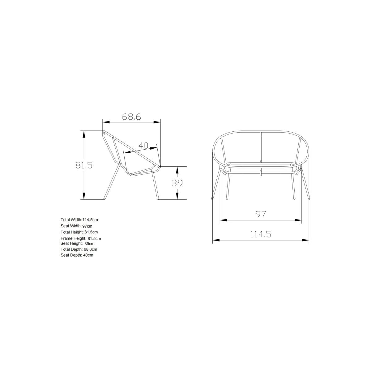 Bringing bold colours to outdoor spaces, our Salsa range of garden furniture features an updated rattan design. The two-seater Salsa sofa is made of powder-coated steel and a polyweave construction, making it both durable and weather-resistant. To extend the product's life and appearance, it's recommended to store the furniture in a cool dry, well-ventilated place such as a garage or shed over winter or during periods of unseasonal weather. Ensure that the furniture is clean and completely dry before storing. The steel legs and frame are sturdy and able to withstand a weight of up to 50 stone (320kg), exceeding the industry standard. The robust design allows the rattan to form its eye-catching shape, with a dense weave ensuring comfortable support. The sofa arrives fully assembled, ready for immediate use. The sleek, low-level height and use of lightweight materials make the sofa ideal for balconies and smaller spaces. Team with matching furniture in our Salsa range. Key features: Durable and weather-resistant Colourful, contemporary design Robust steel frames withstand 50 stone, exceeding the industry standard Dense weave for comfortable support Perfect for smaller spaces Fully assembled