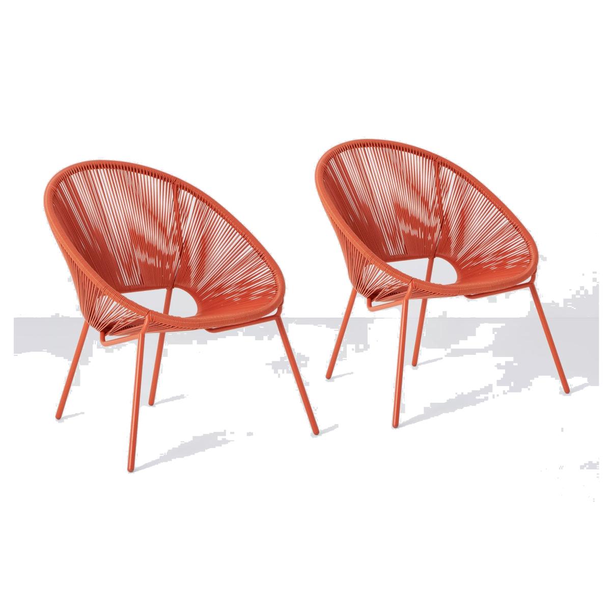 Bringing bold colours to outdoor spaces, our Salsa range of garden furniture features an updated rattan design. This pair of Salsa chairs are made of powder-coated steel and a polyweave construction, making them both durable and weather-resistant. To extend the product's life and appearance, it's recommended to store the furniture in a cool dry, well-ventilated place such as a garage or shed over winter or during periods of unseasonal weather. Ensure that the furniture is clean and completely dry before storing. The steel legs and frame are sturdy and able to withstand a weight of up to 25 stone (160kg) per chair, exceeding the industry standard. The robust design allows the rattan to form its eye-catching shape, with a dense weave ensuring comfortable support. The chairs arrive fully assembled, ready for immediate use. The sleek, low-level height and use of lightweight materials make them ideal for balconies and smaller spaces. Team with matching furniture in our Salsa range. Key features: Durable and weather-resistant Contemporary design Robust steel frames withstand 25 stone per chair, exceeding the industry standard Dense weave for comfortable support Perfect for smaller spaces Stackable to save space Fully assembled
